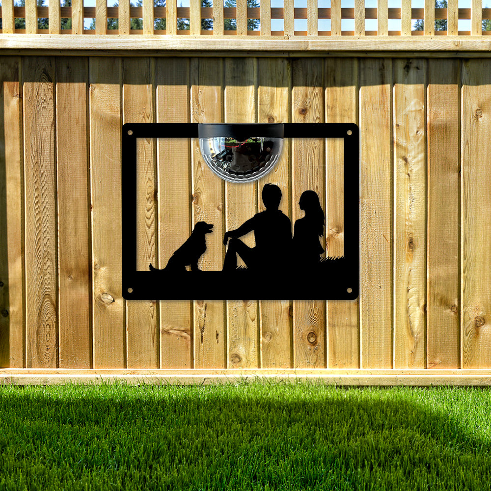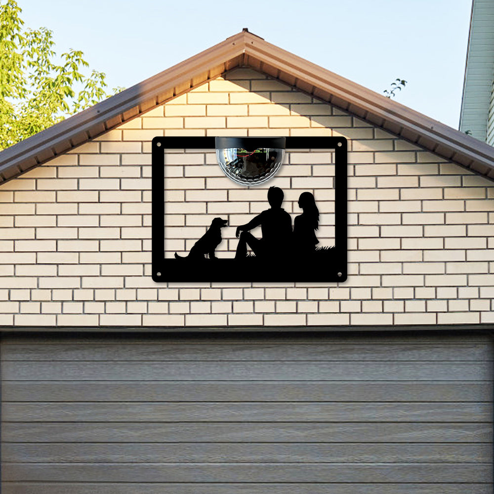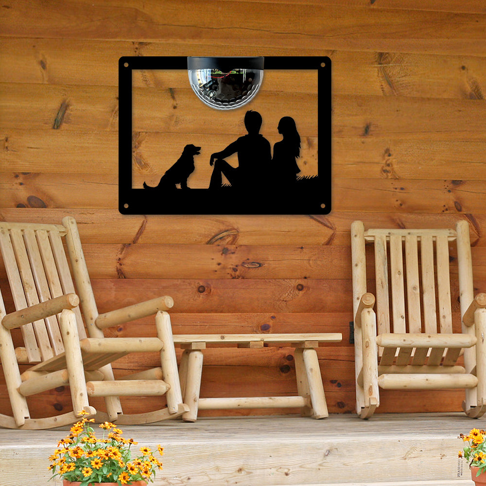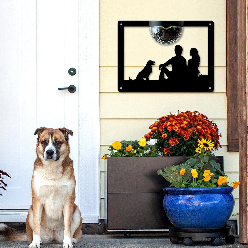 Couple and Dog Metal Wall Art With Solar Light Solar Wall Plaques