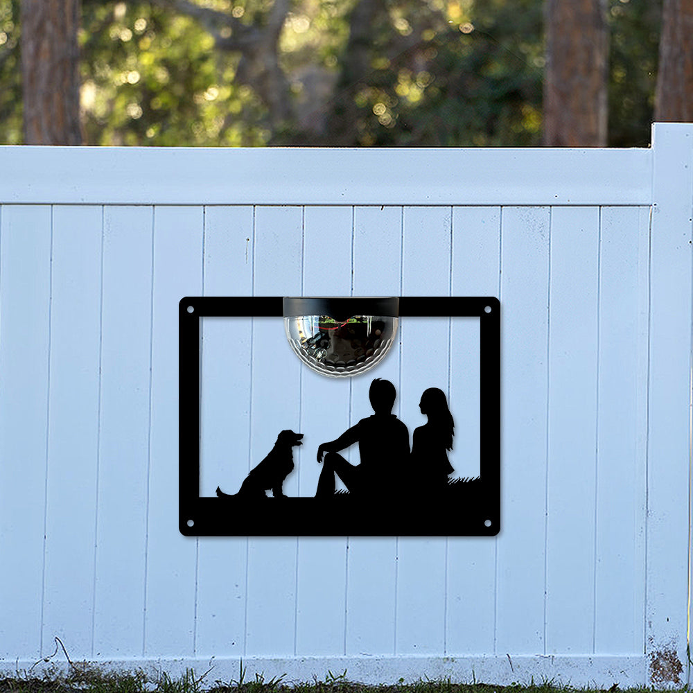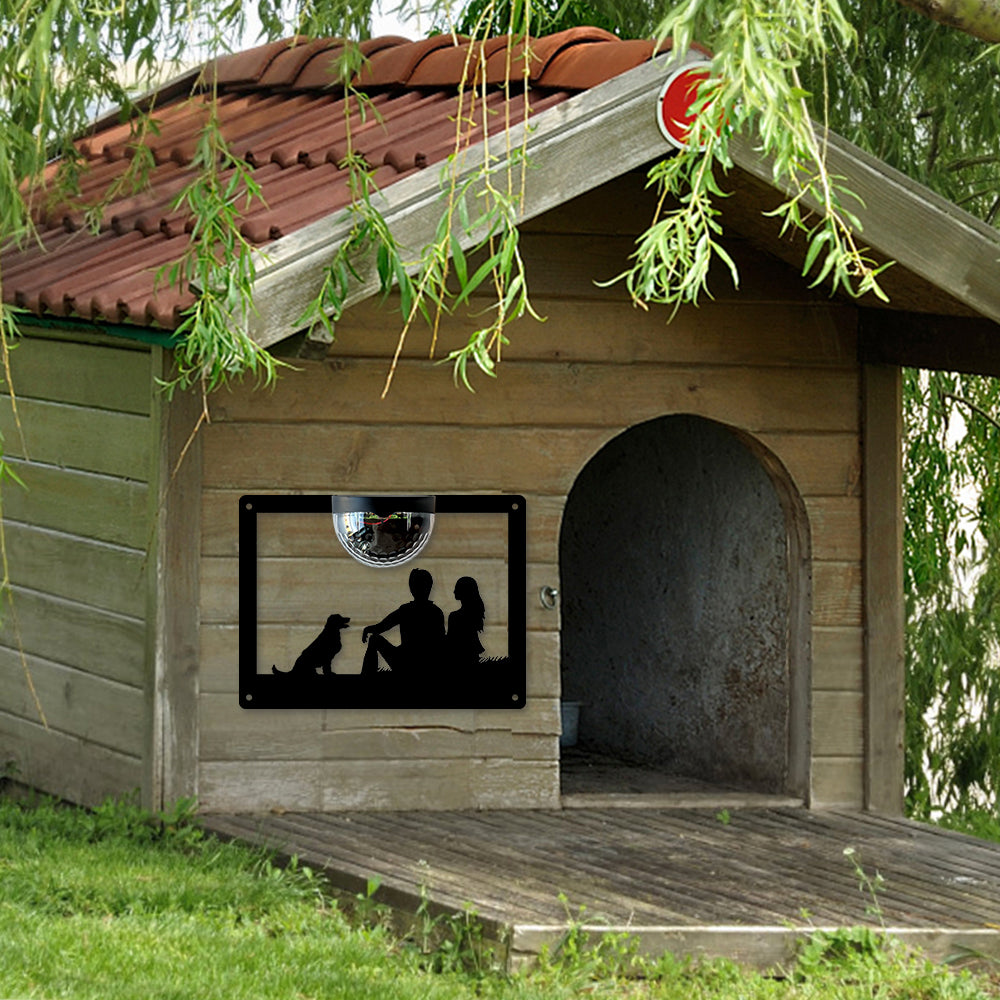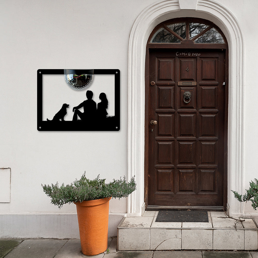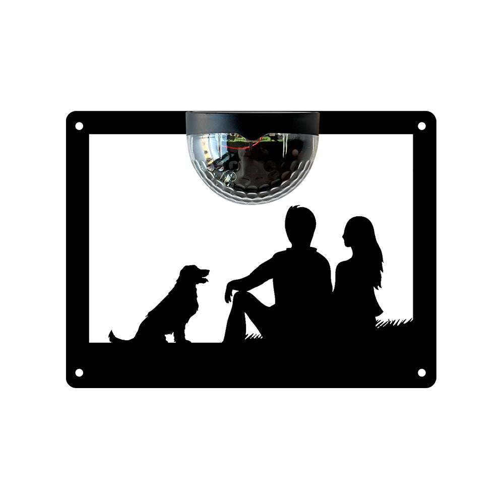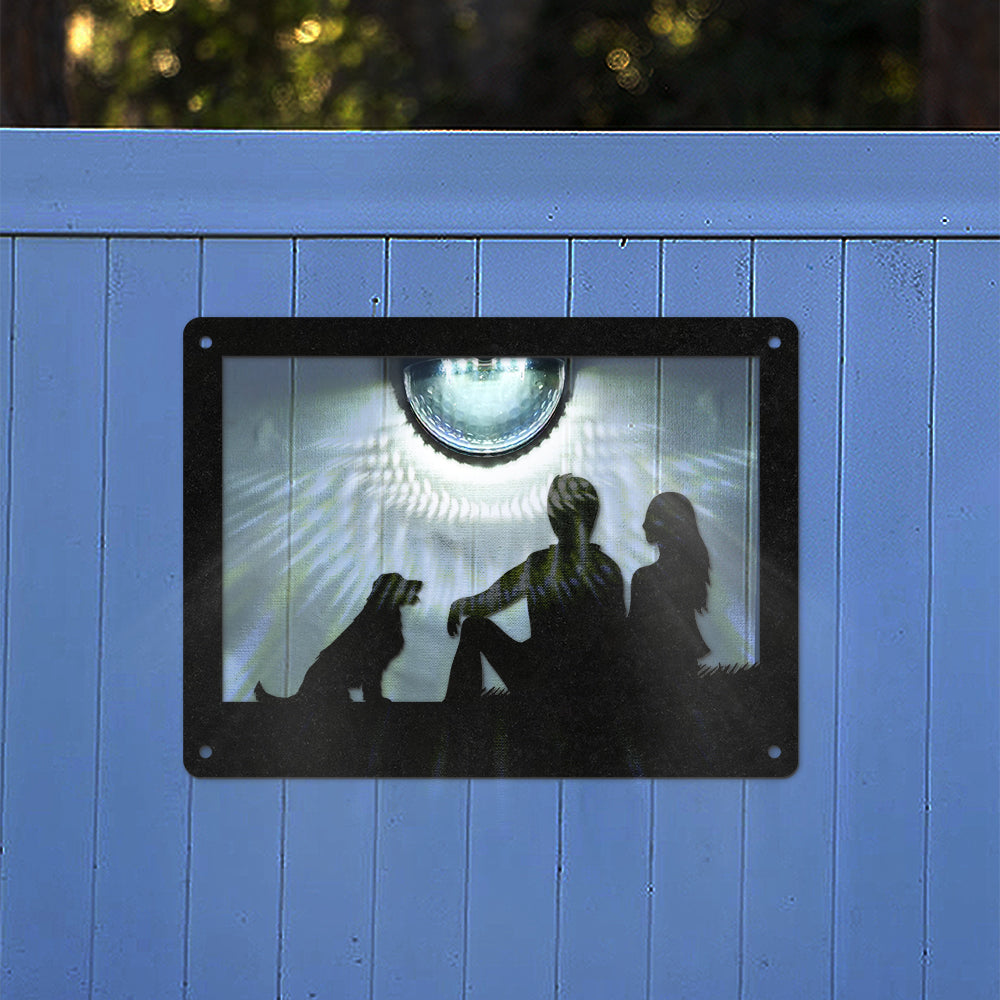 Couple and Dog Metal Wall Art With Solar Light Solar Wall Plaques