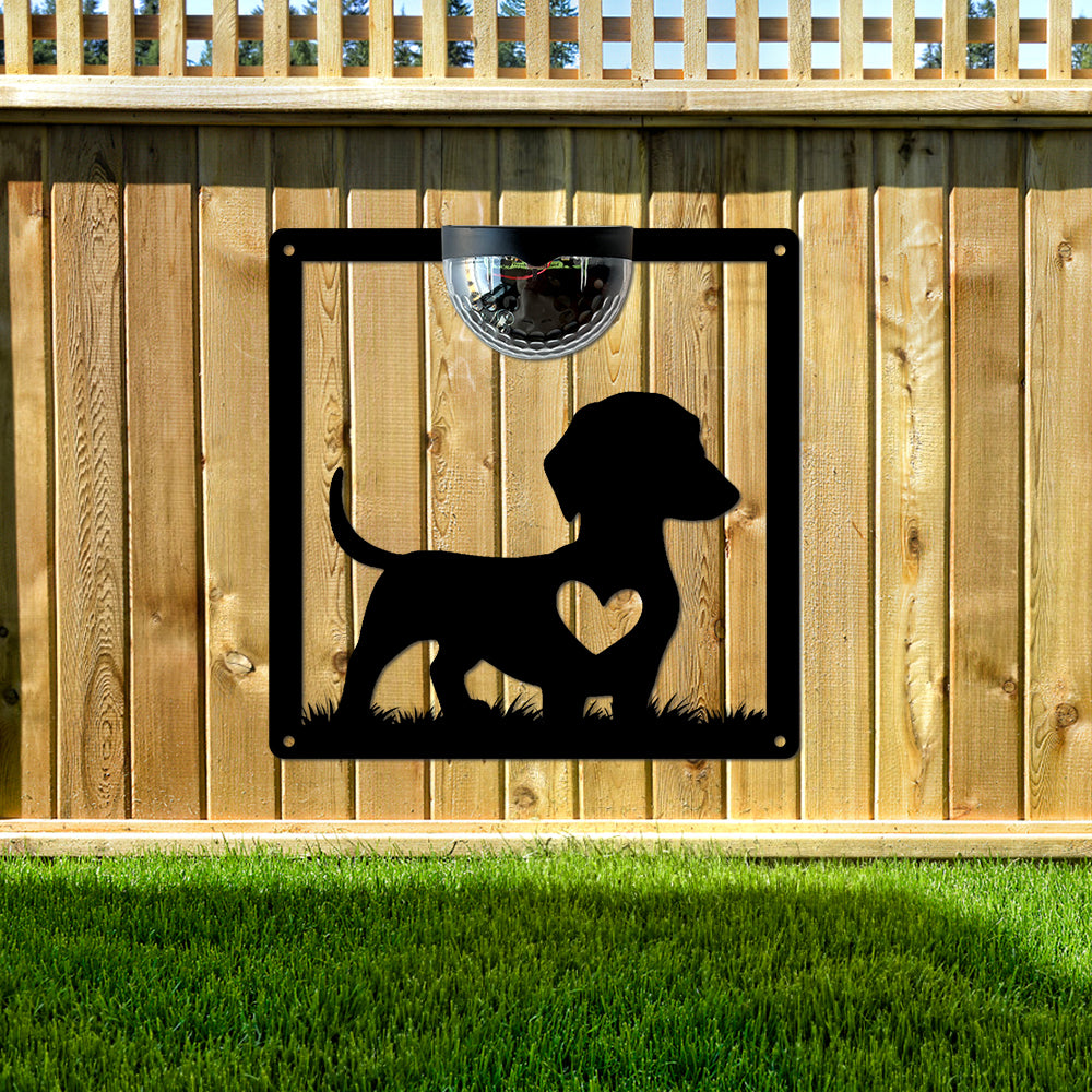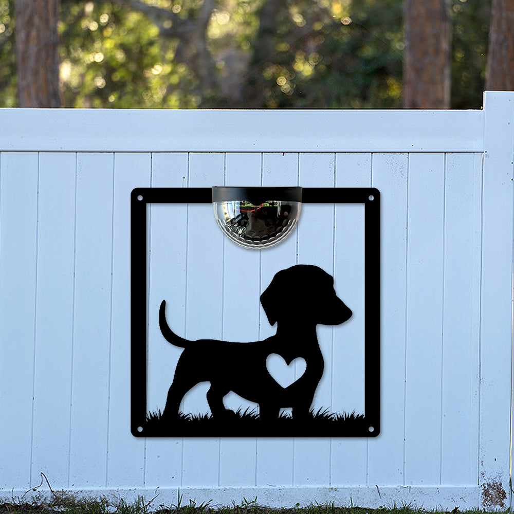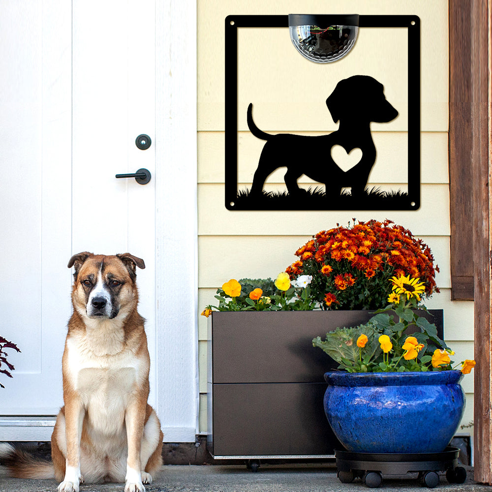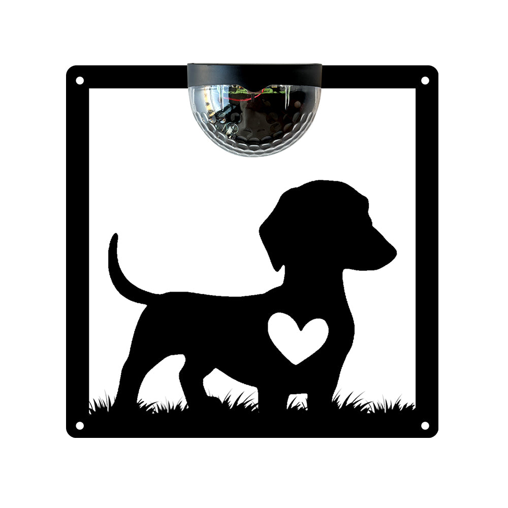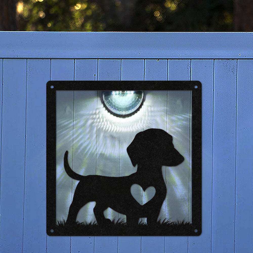 Cute Dog Metal Wall Art With Solar Light Solar Wall Plaques