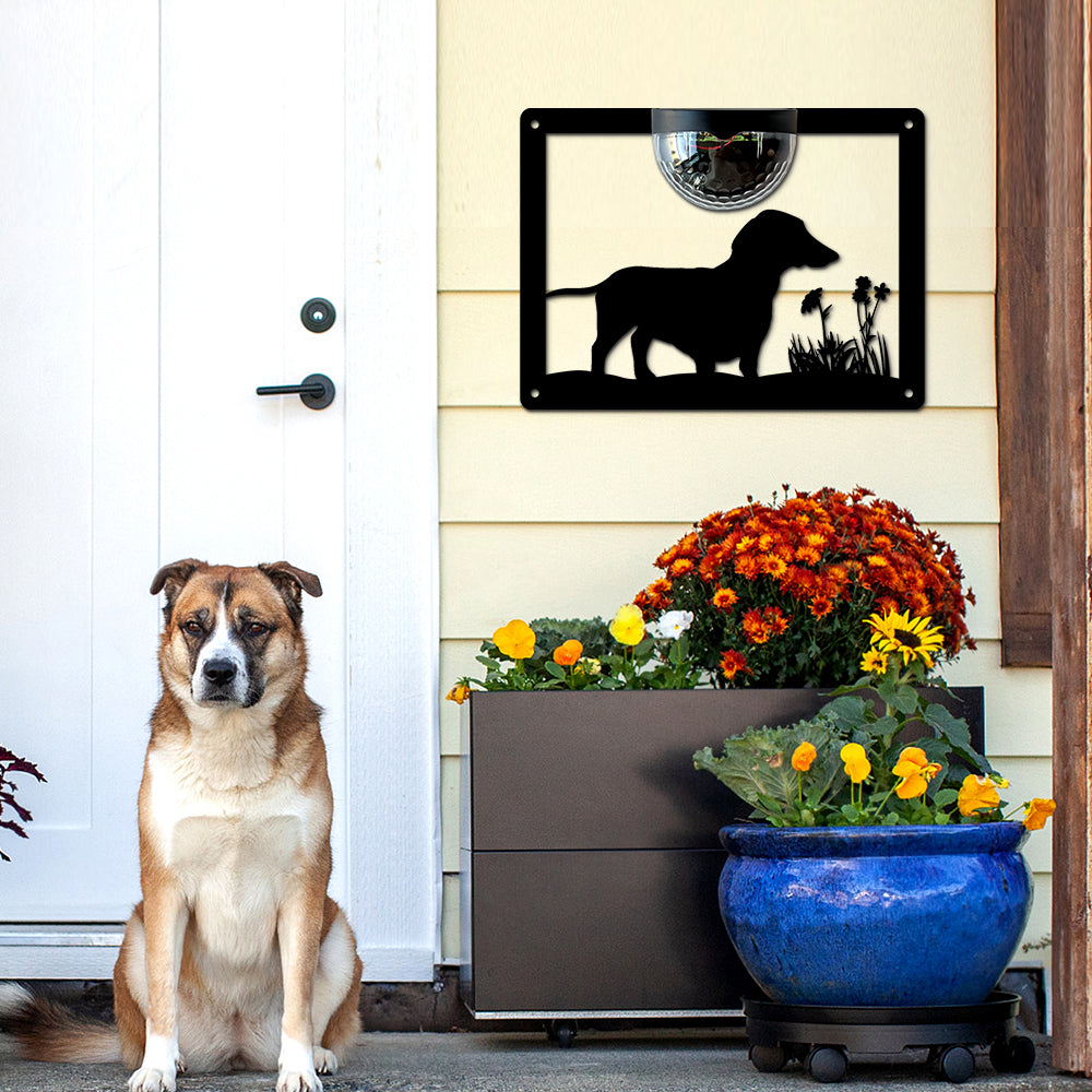 Dachshund Metal Wall Art With Solar Light Solar Wall Plaques