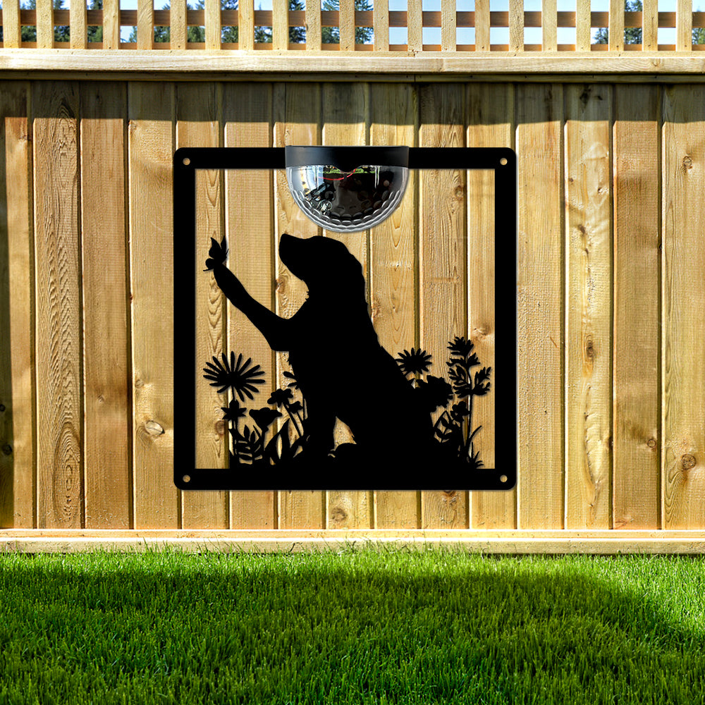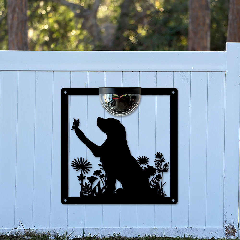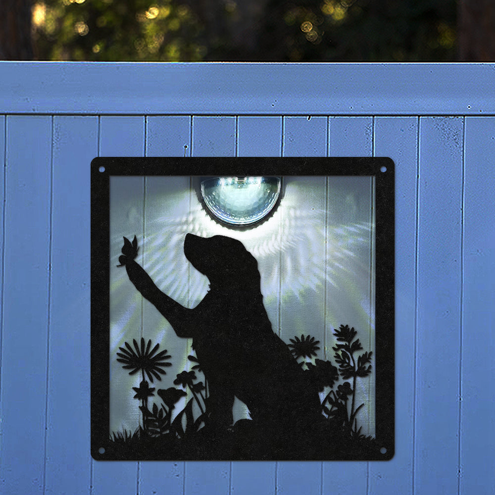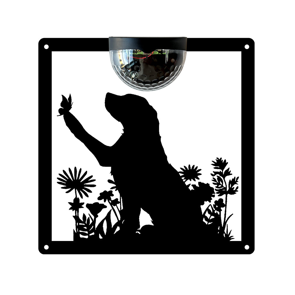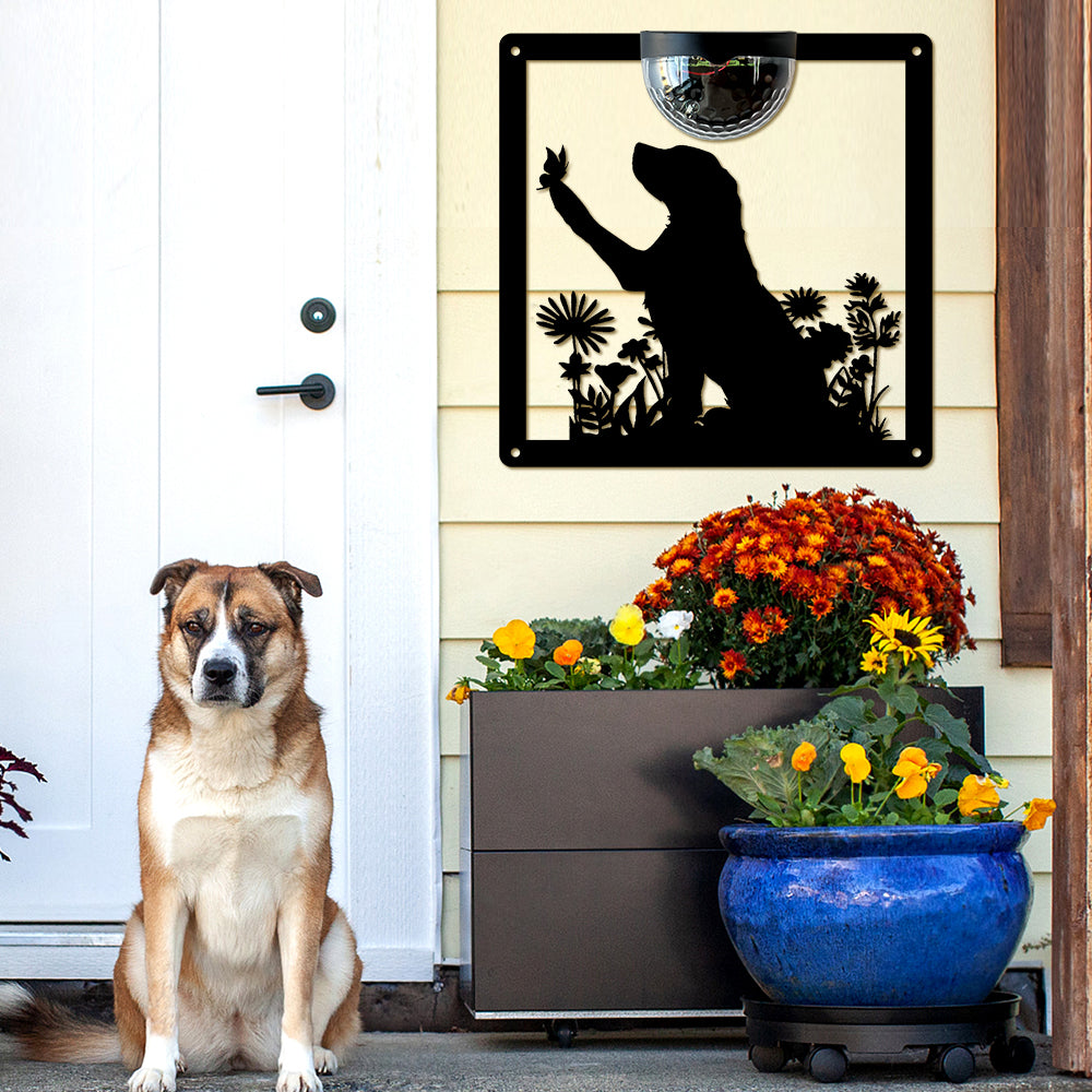 Dog and Flower Metal Wall Art With Solar Light Solar Wall Plaques