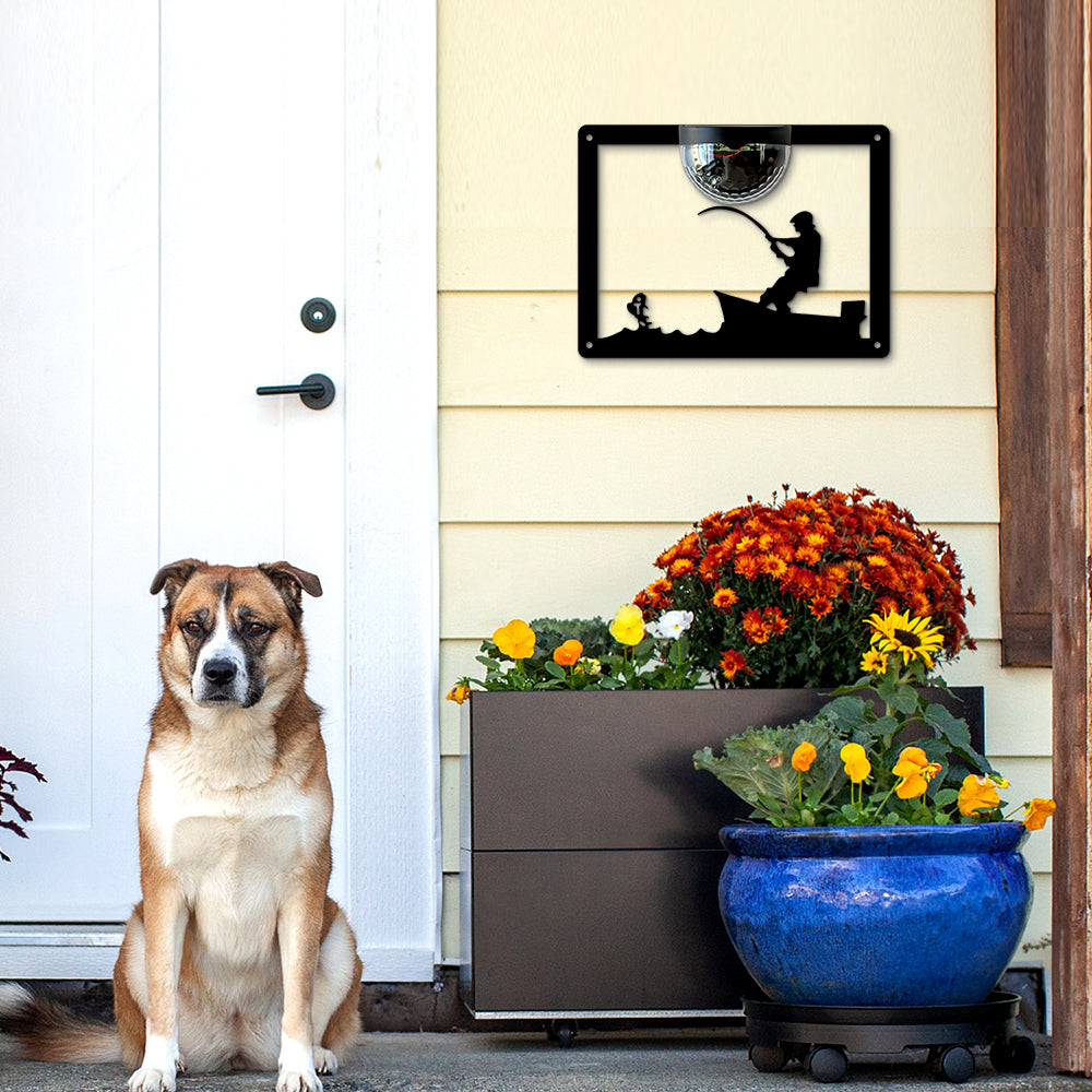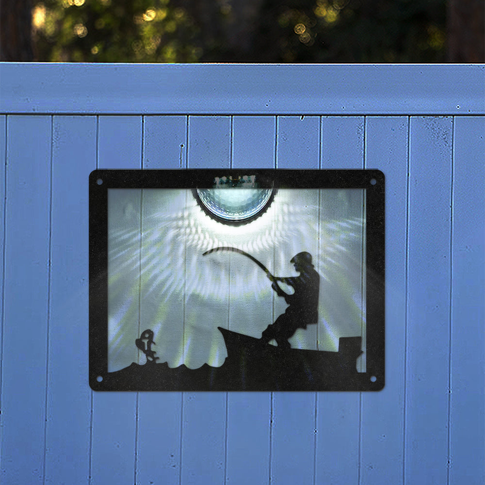 Fishing Metal Wall Art With Solar Light Solar Wall Plaques