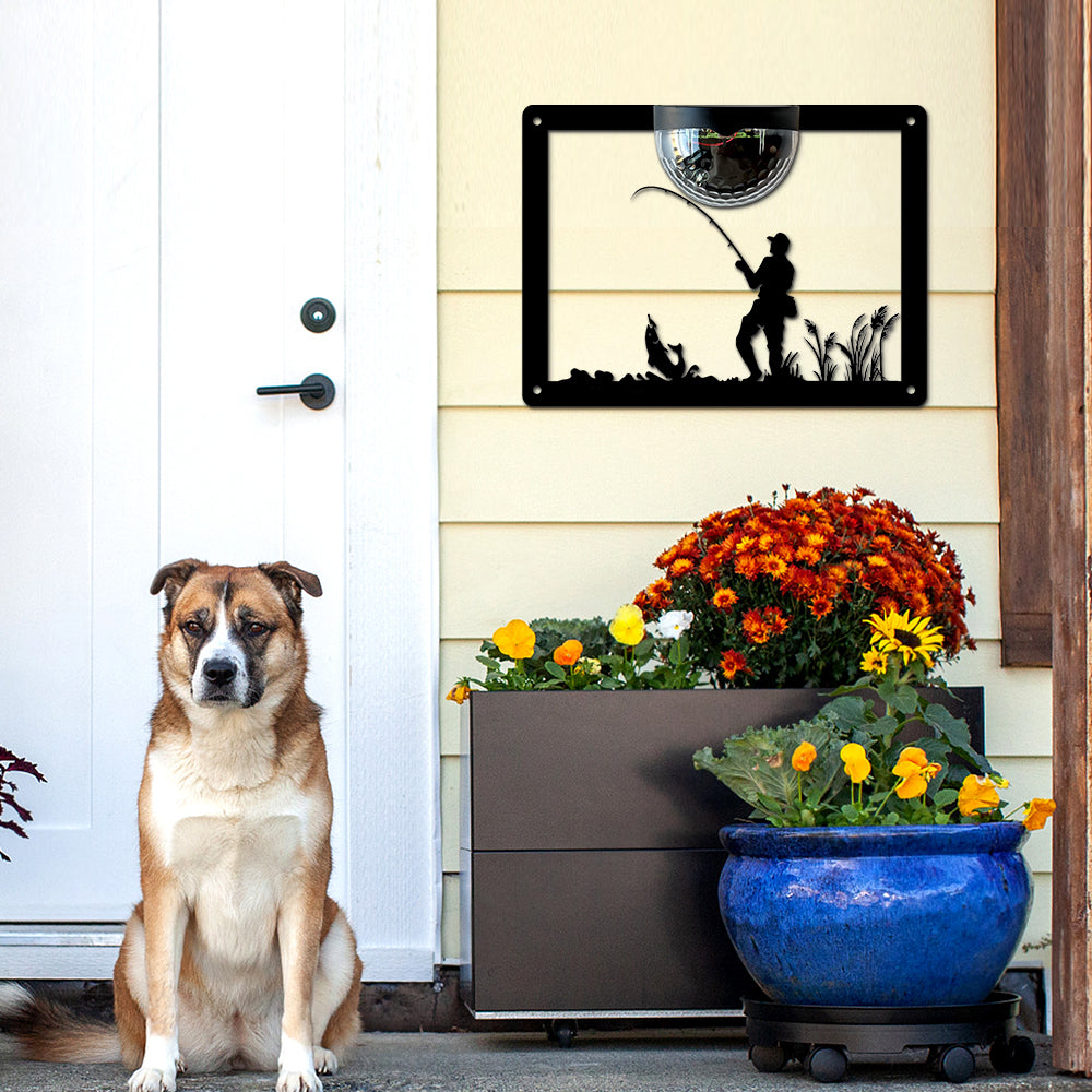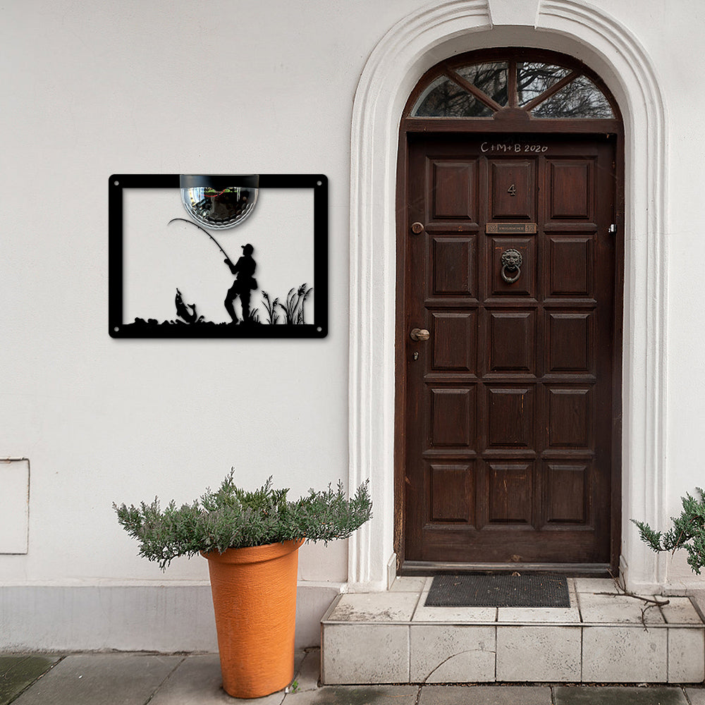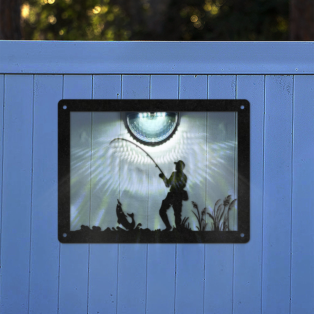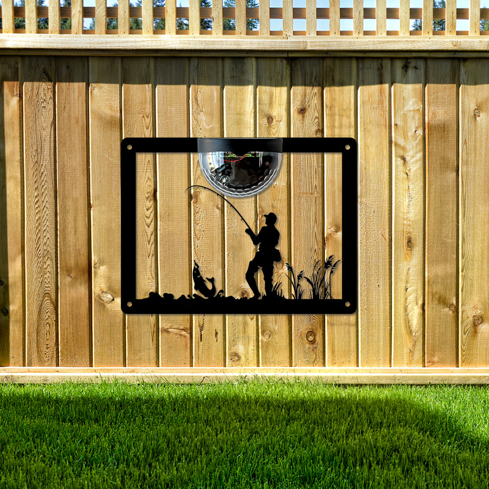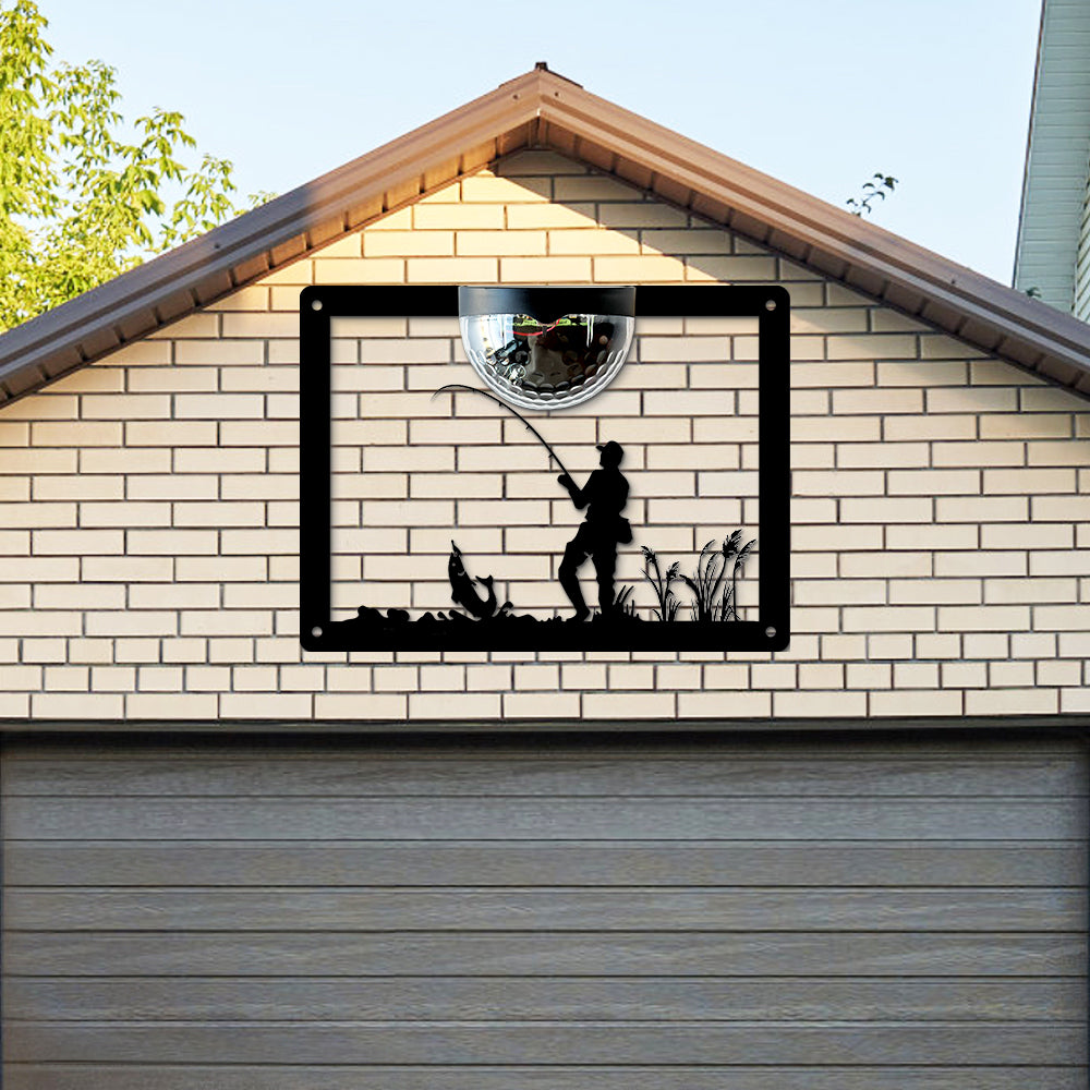 Fishing Metal Wall Art With Solar Light Solar Wall Plaques
