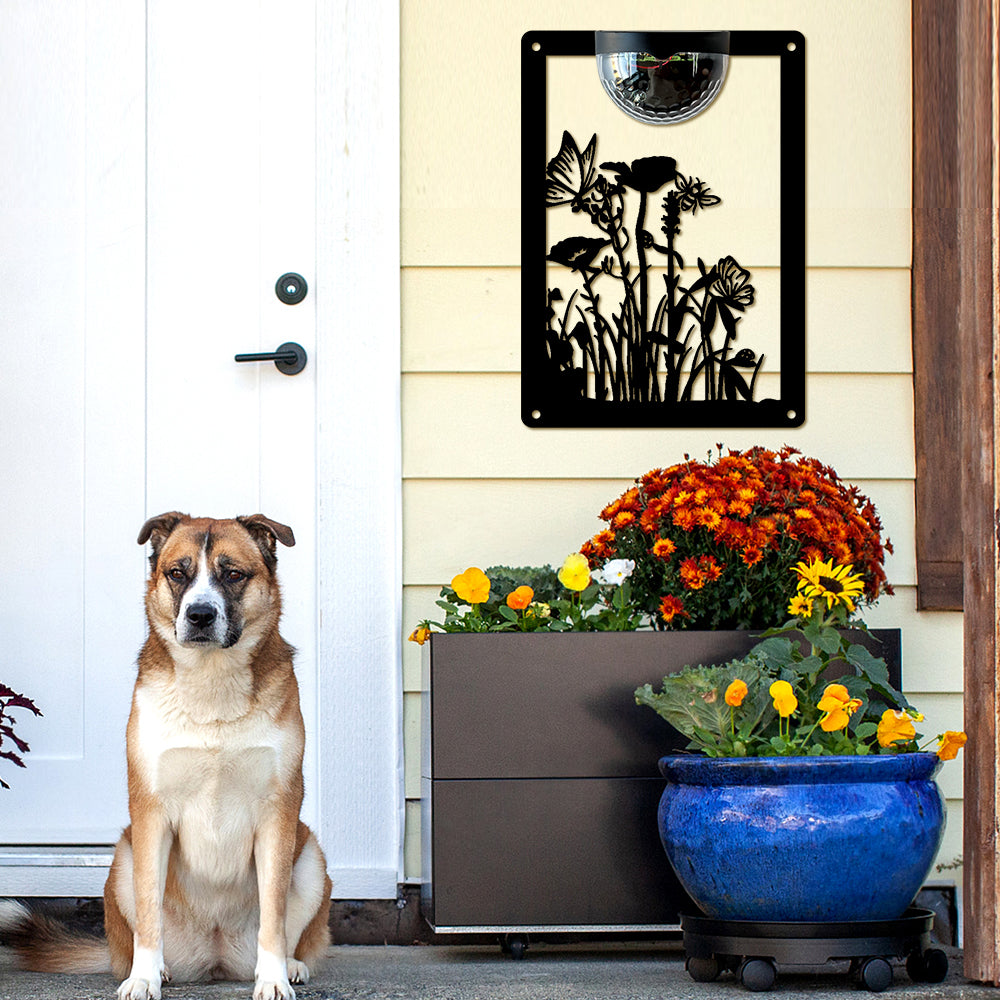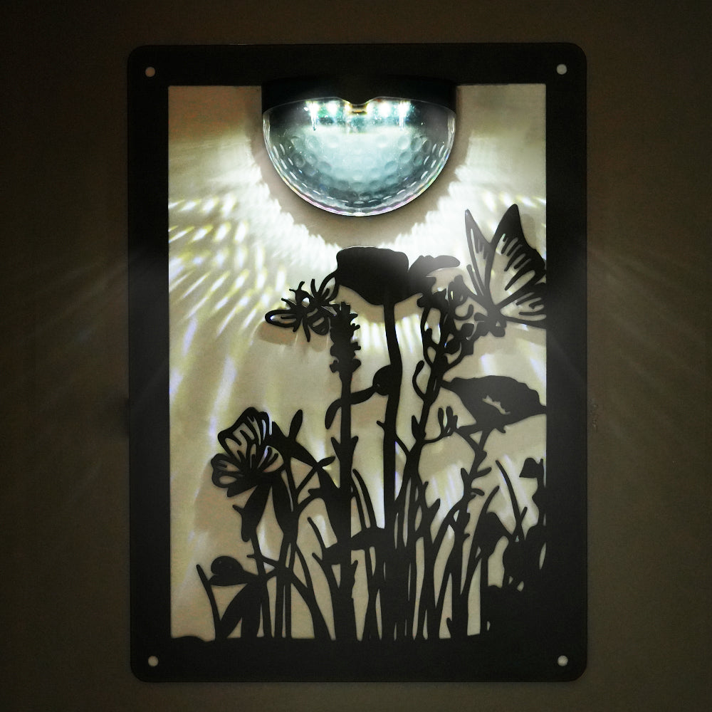Flower Cluster Metal Wall Art With Solar Light Solar Wall Plaques