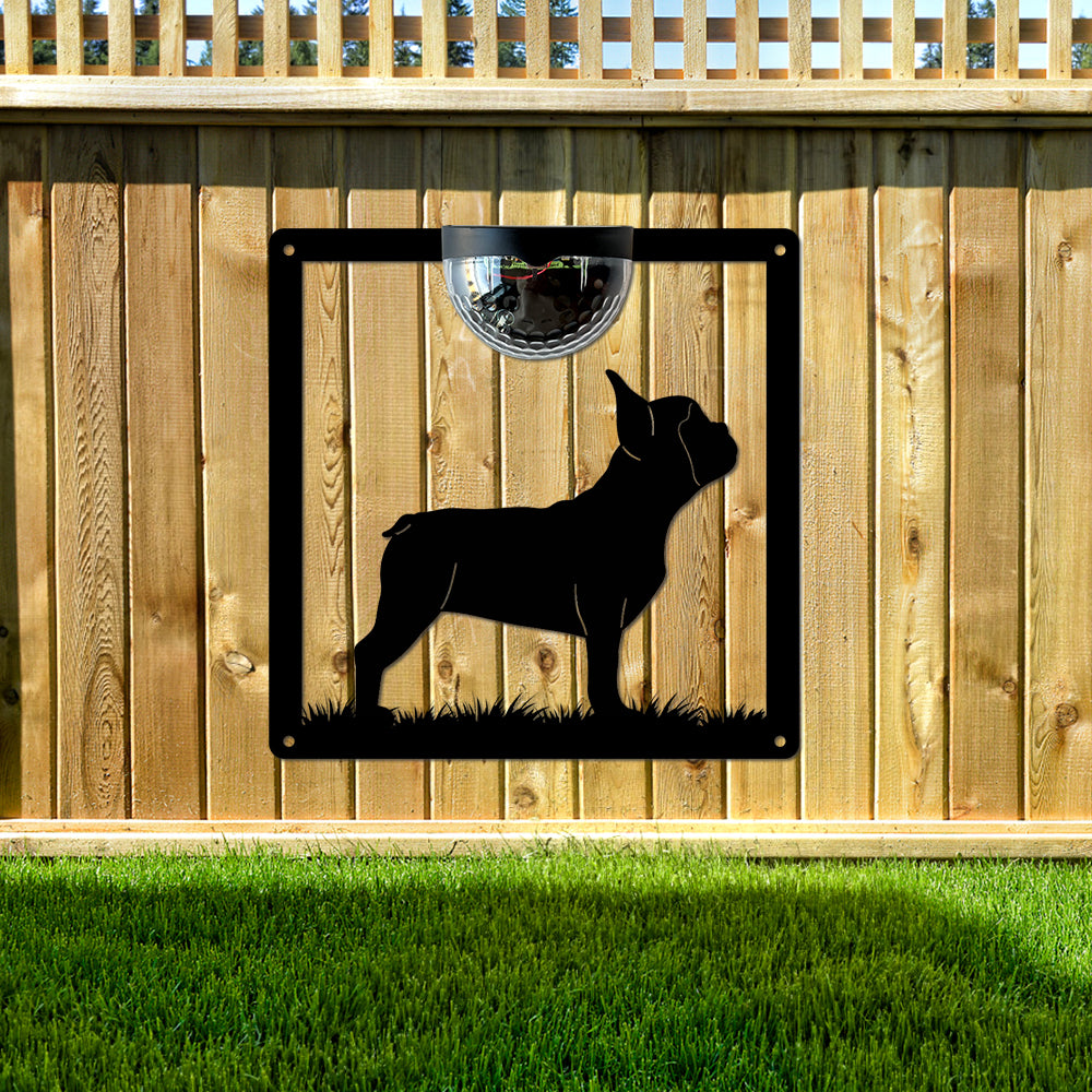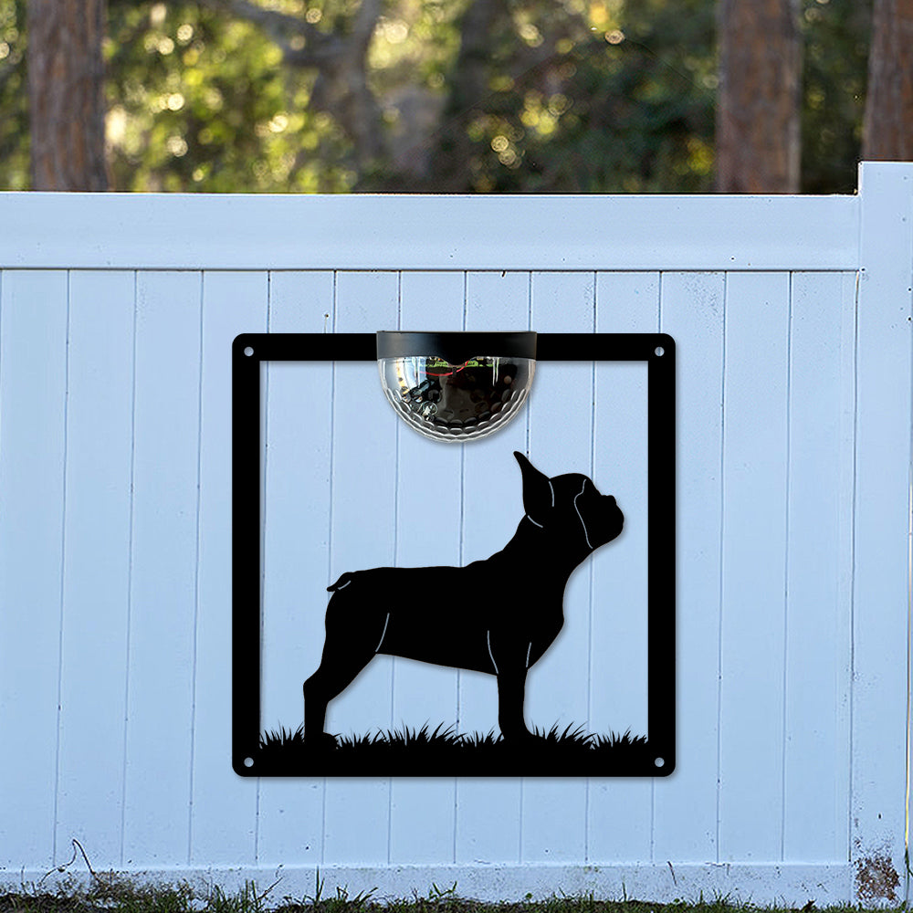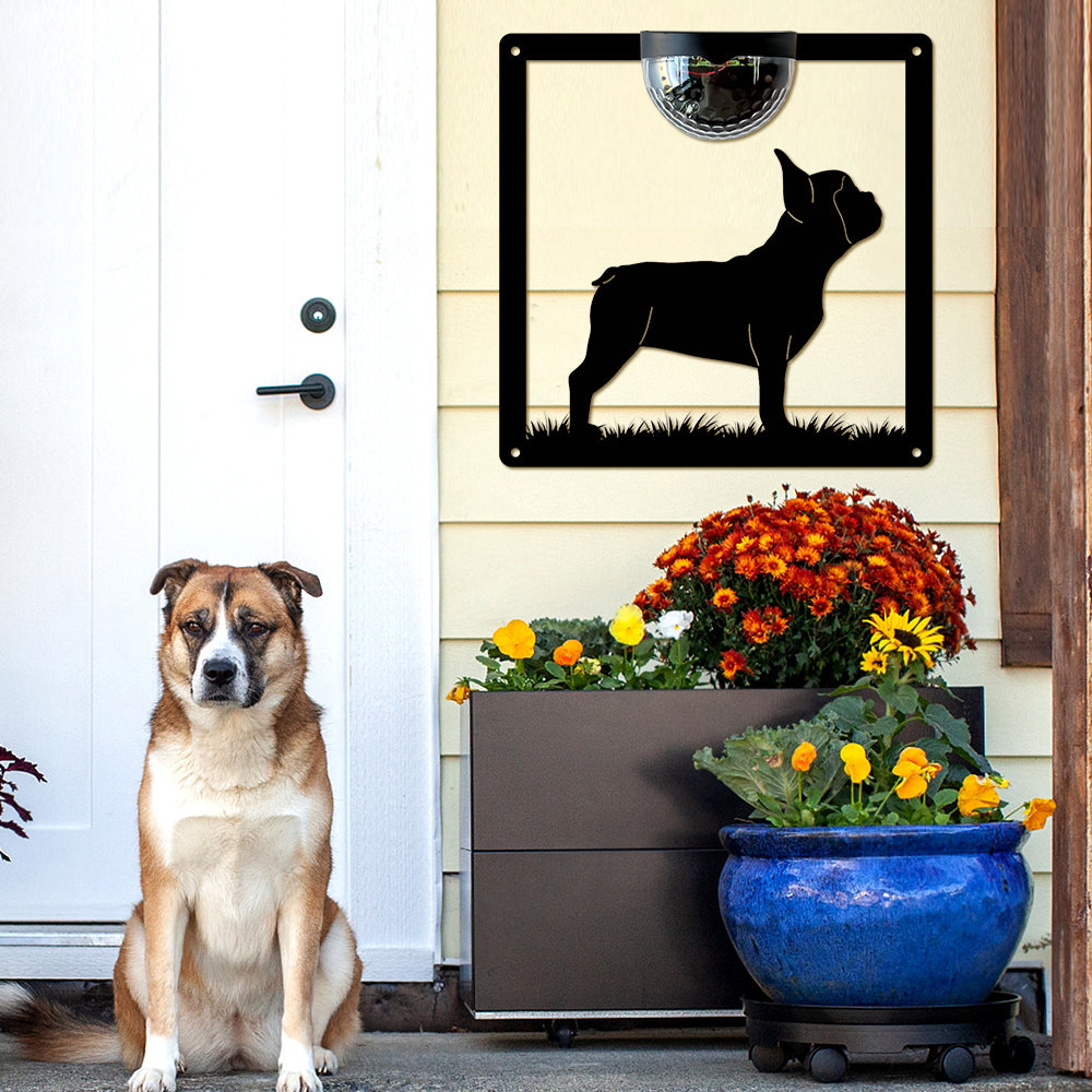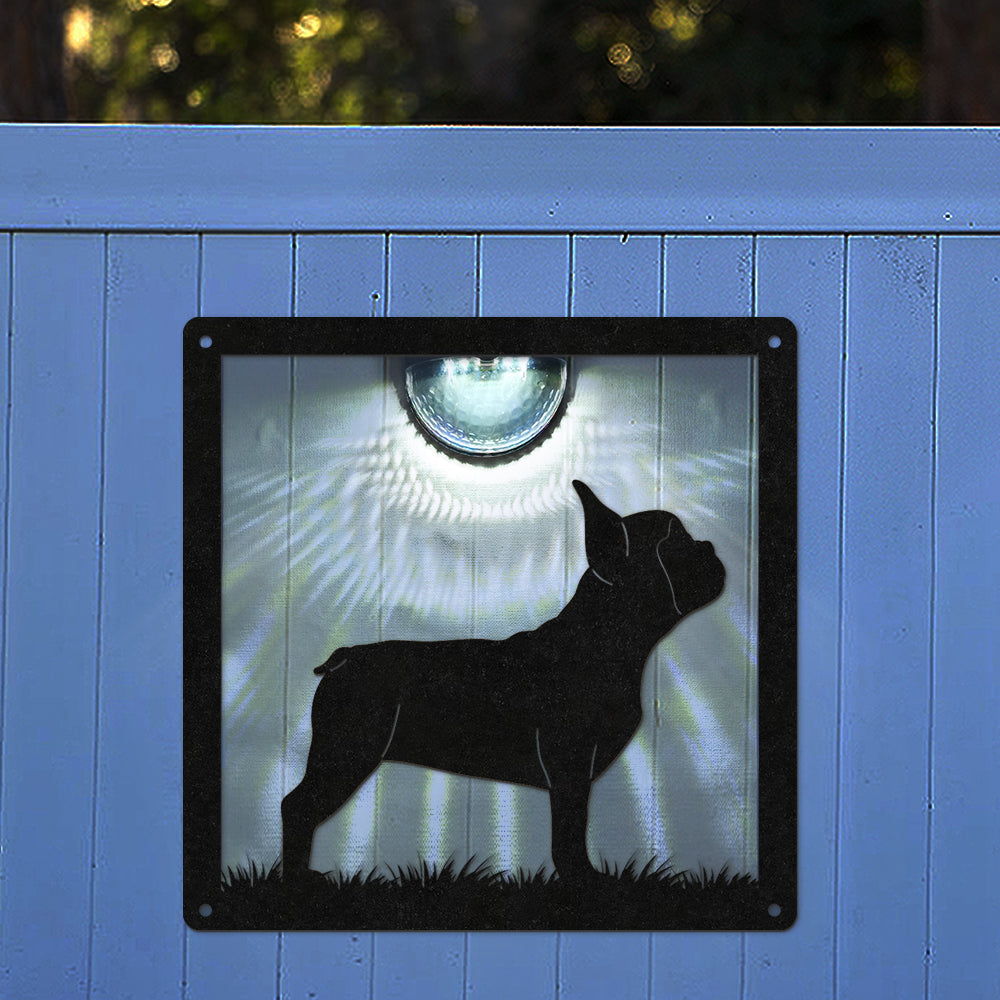French Bulldog Metal Wall Art With Solar Light Solar Wall Plaques