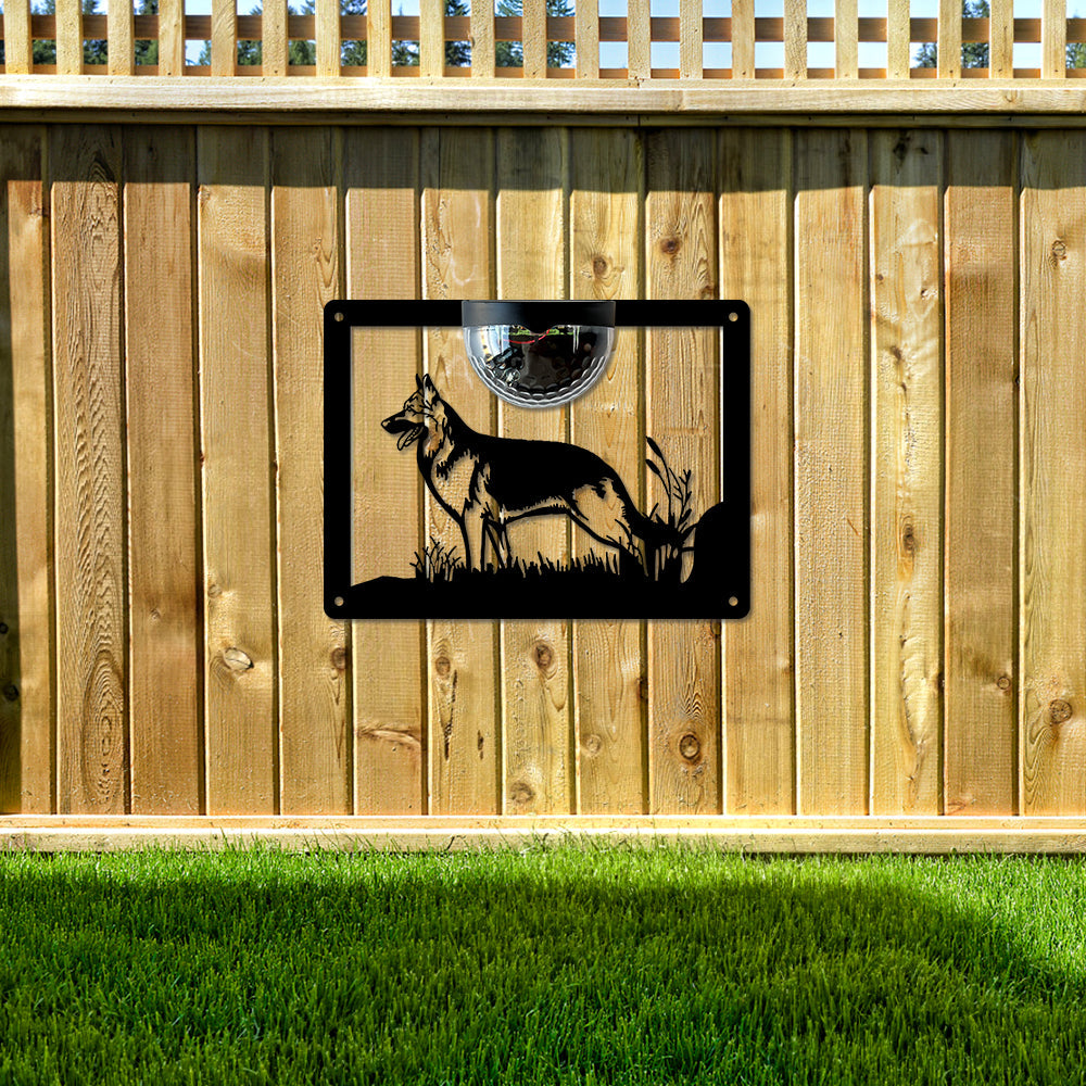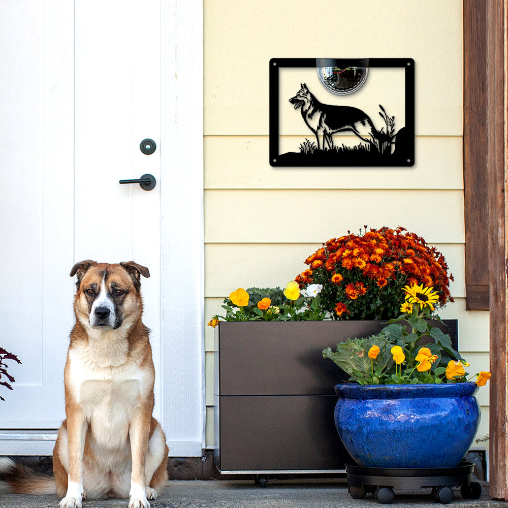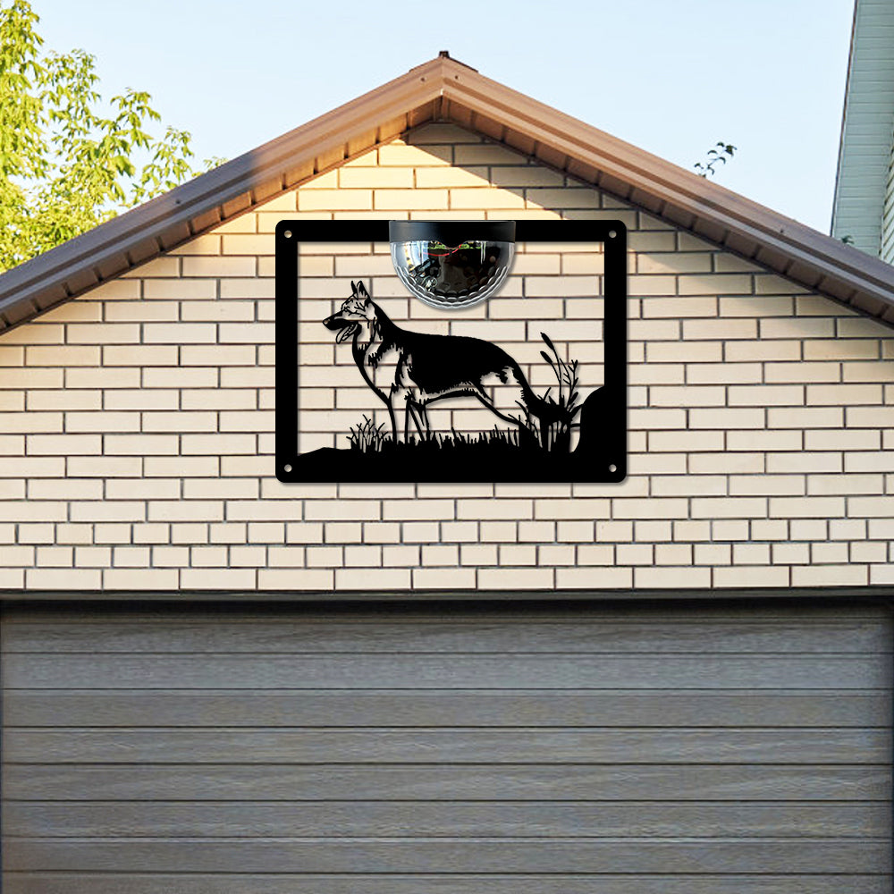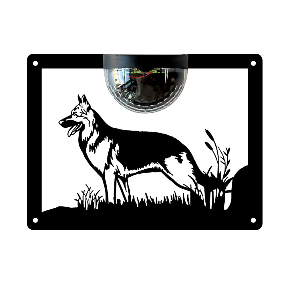 German Shepherd Metal Wall Art With Solar Light Solar Wall Plaques