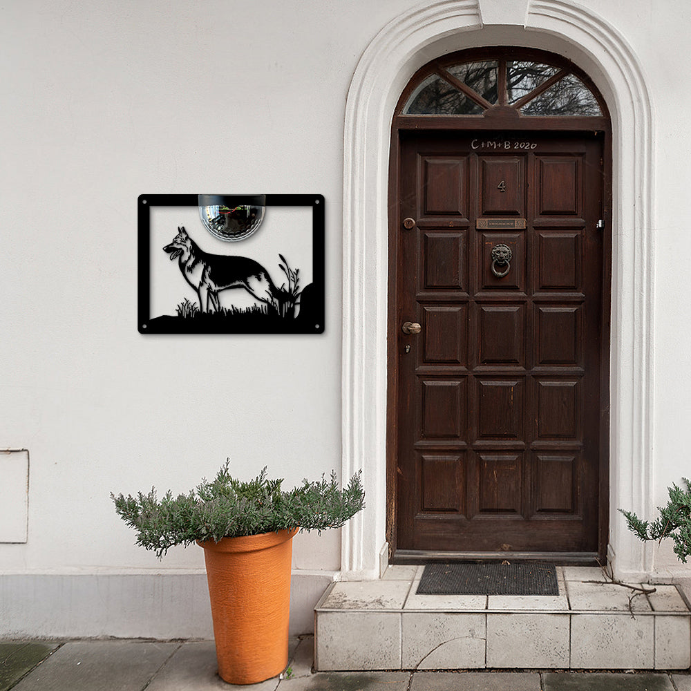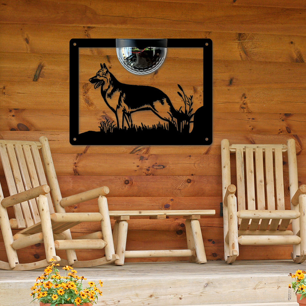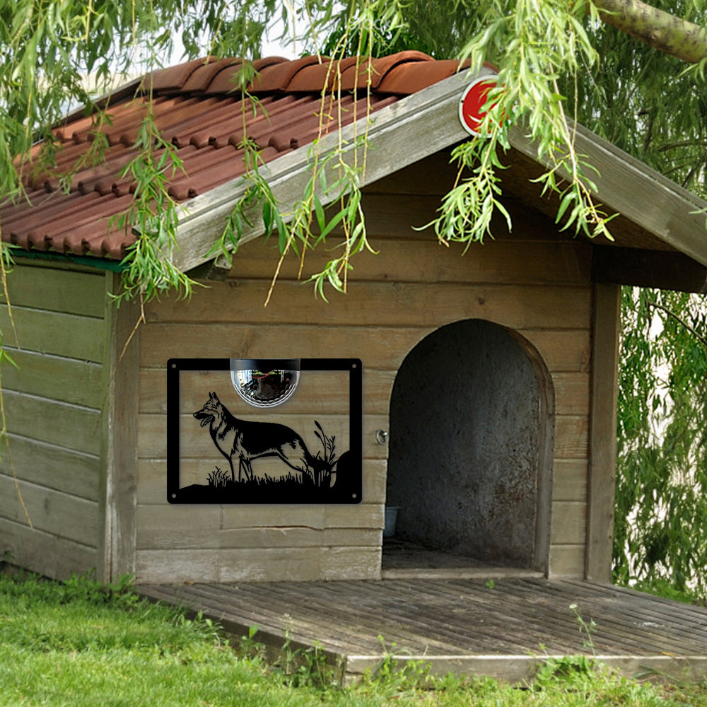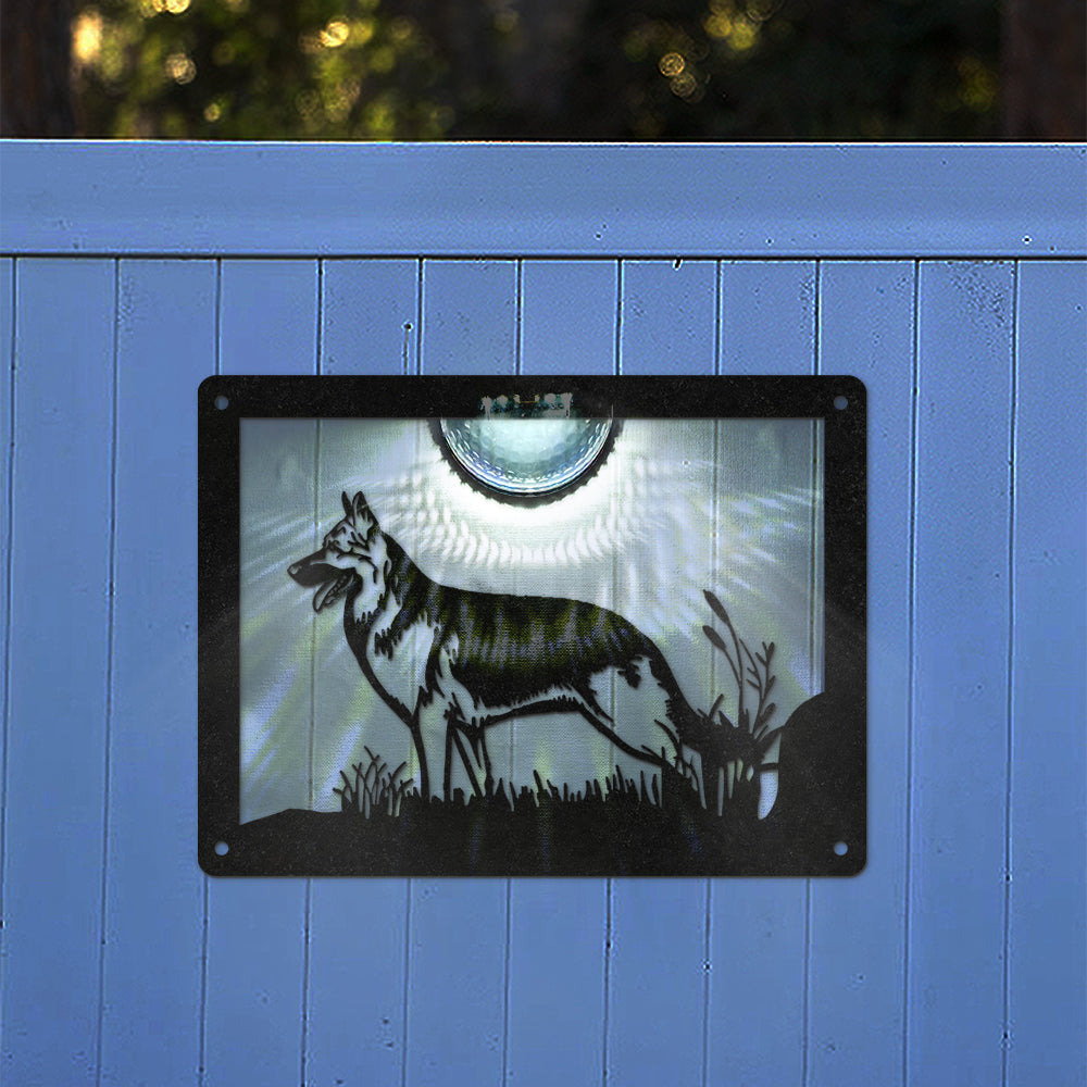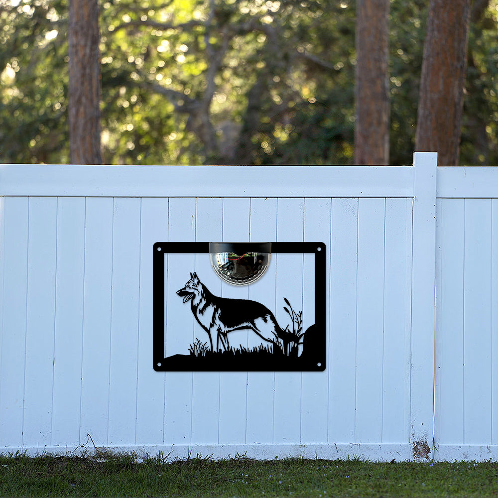 German Shepherd Metal Wall Art With Solar Light Solar Wall Plaques