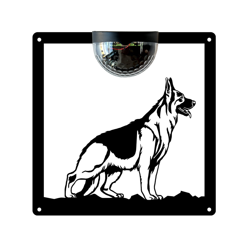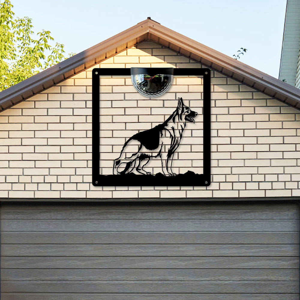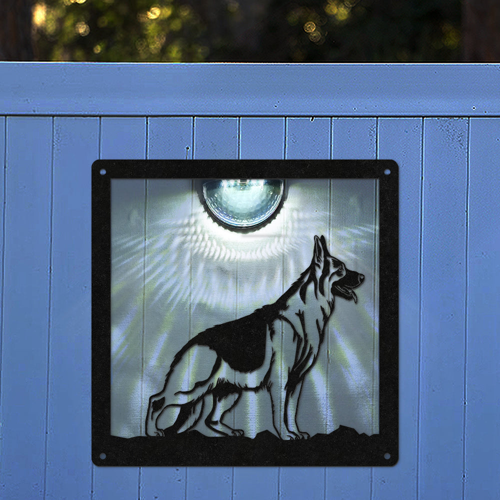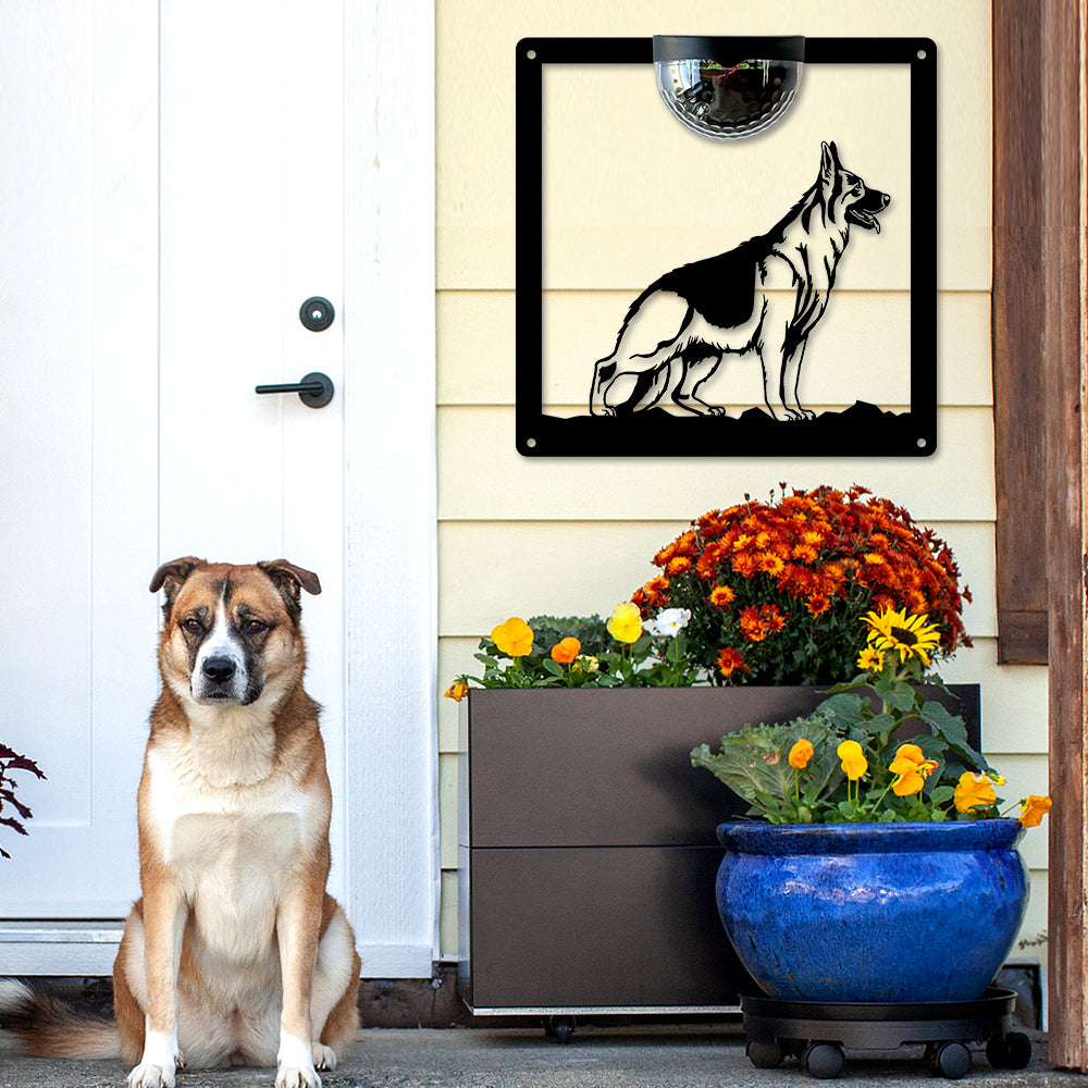 German Shepherd Metal Wall Art With Solar Light Solar Wall Plaques