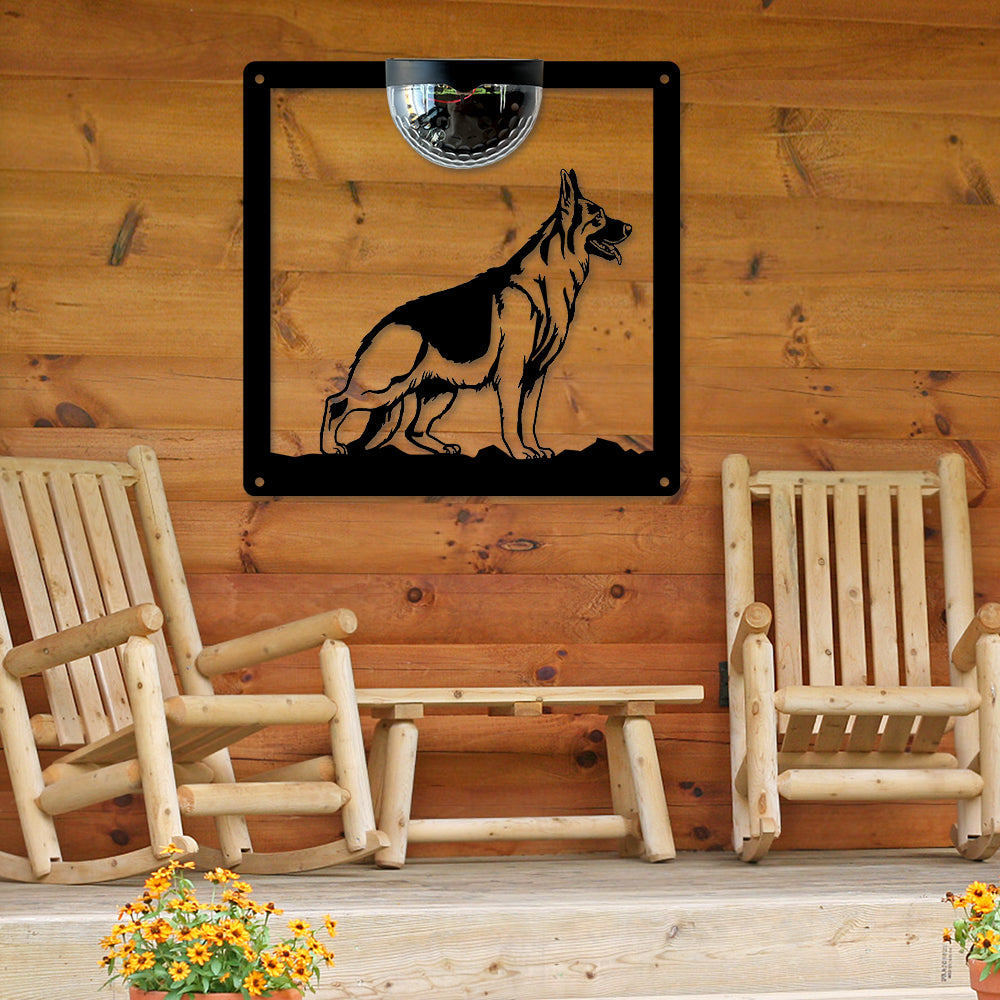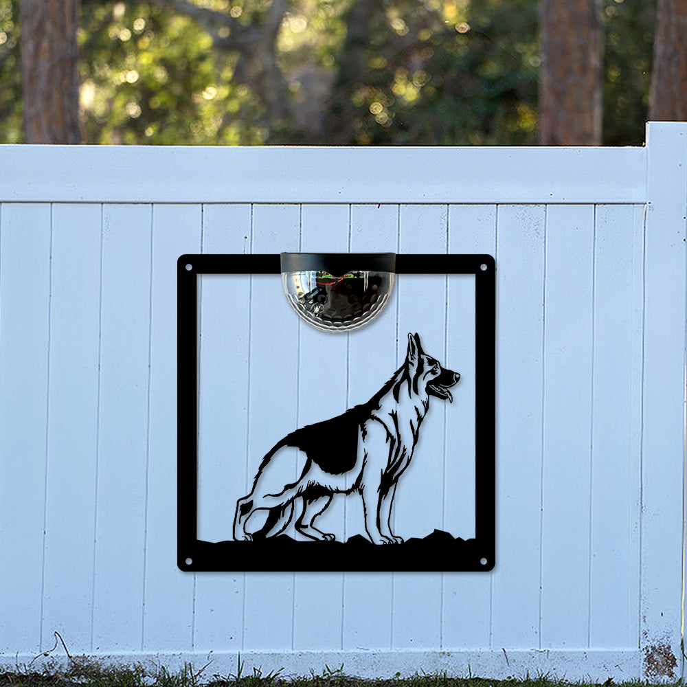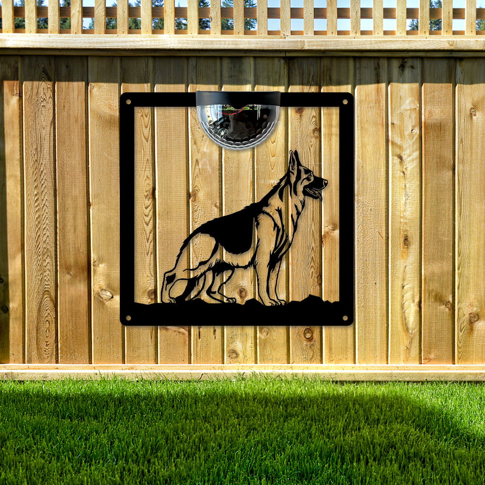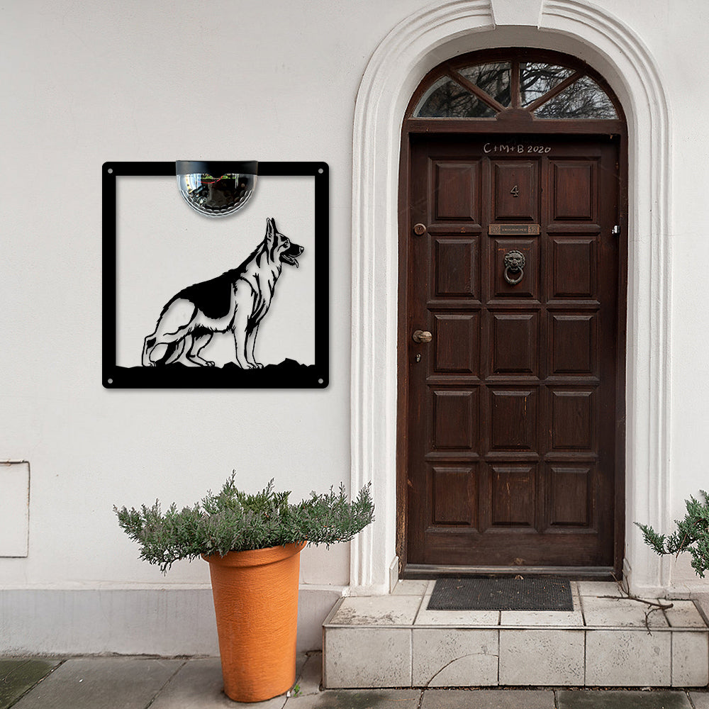 German Shepherd Metal Wall Art With Solar Light Solar Wall Plaques