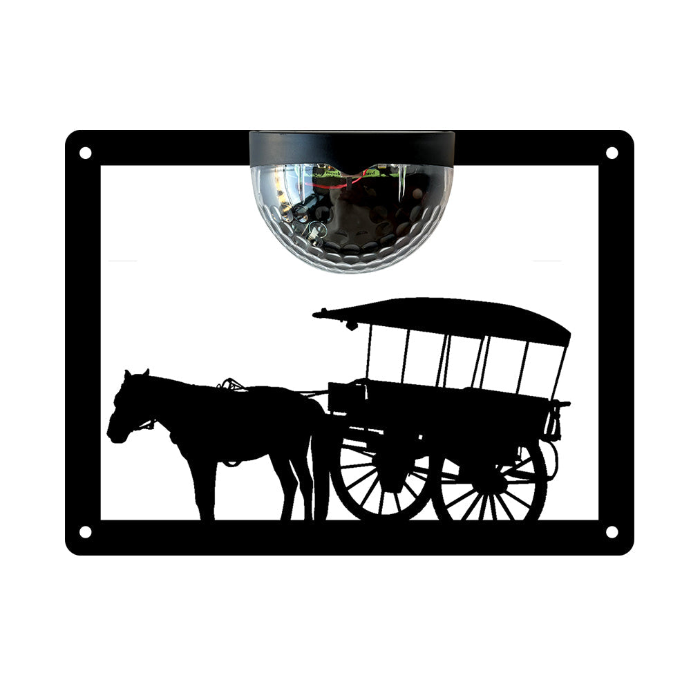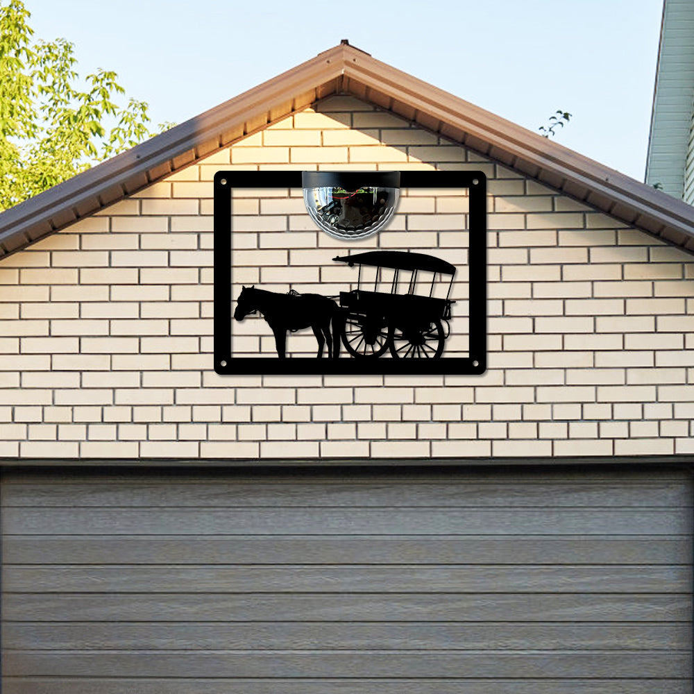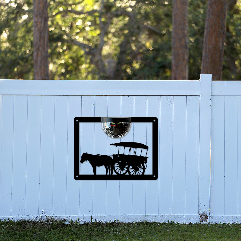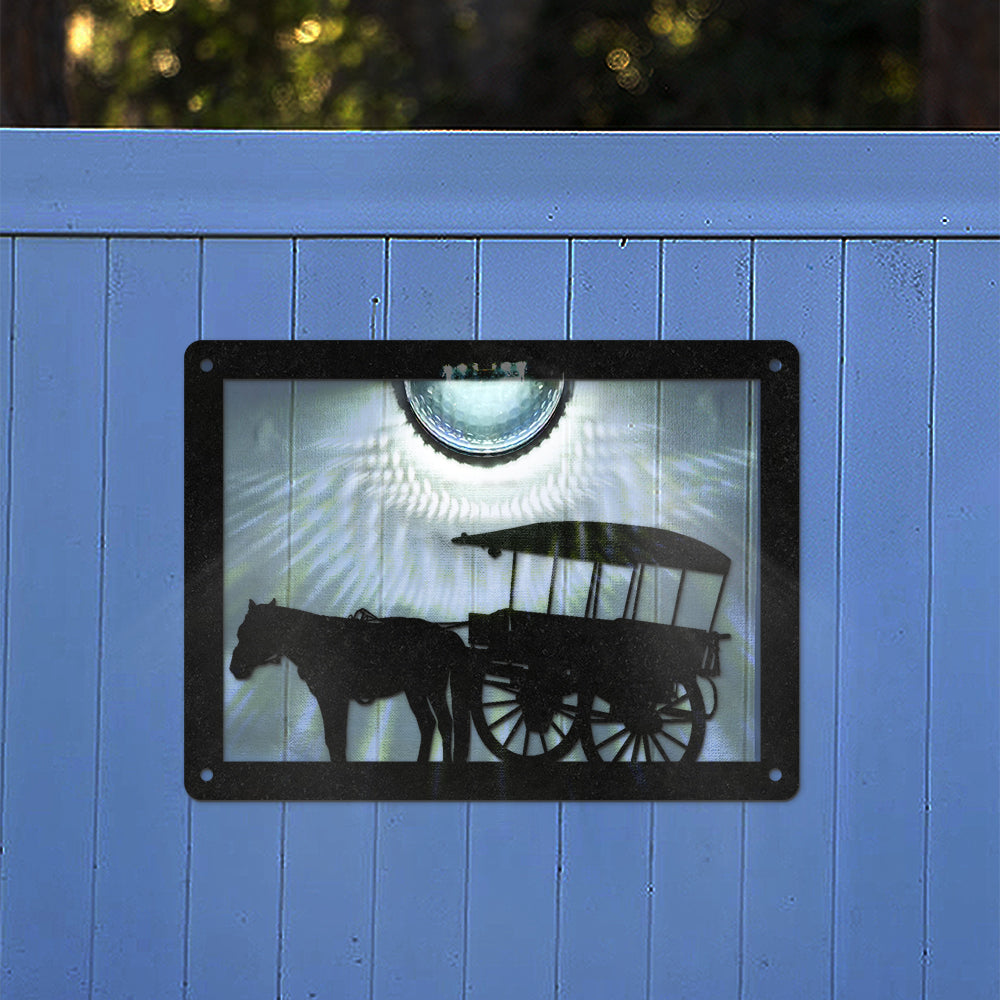 Horse Drawn Cart Metal Wall Art With Solar Light Solar Wall Plaques