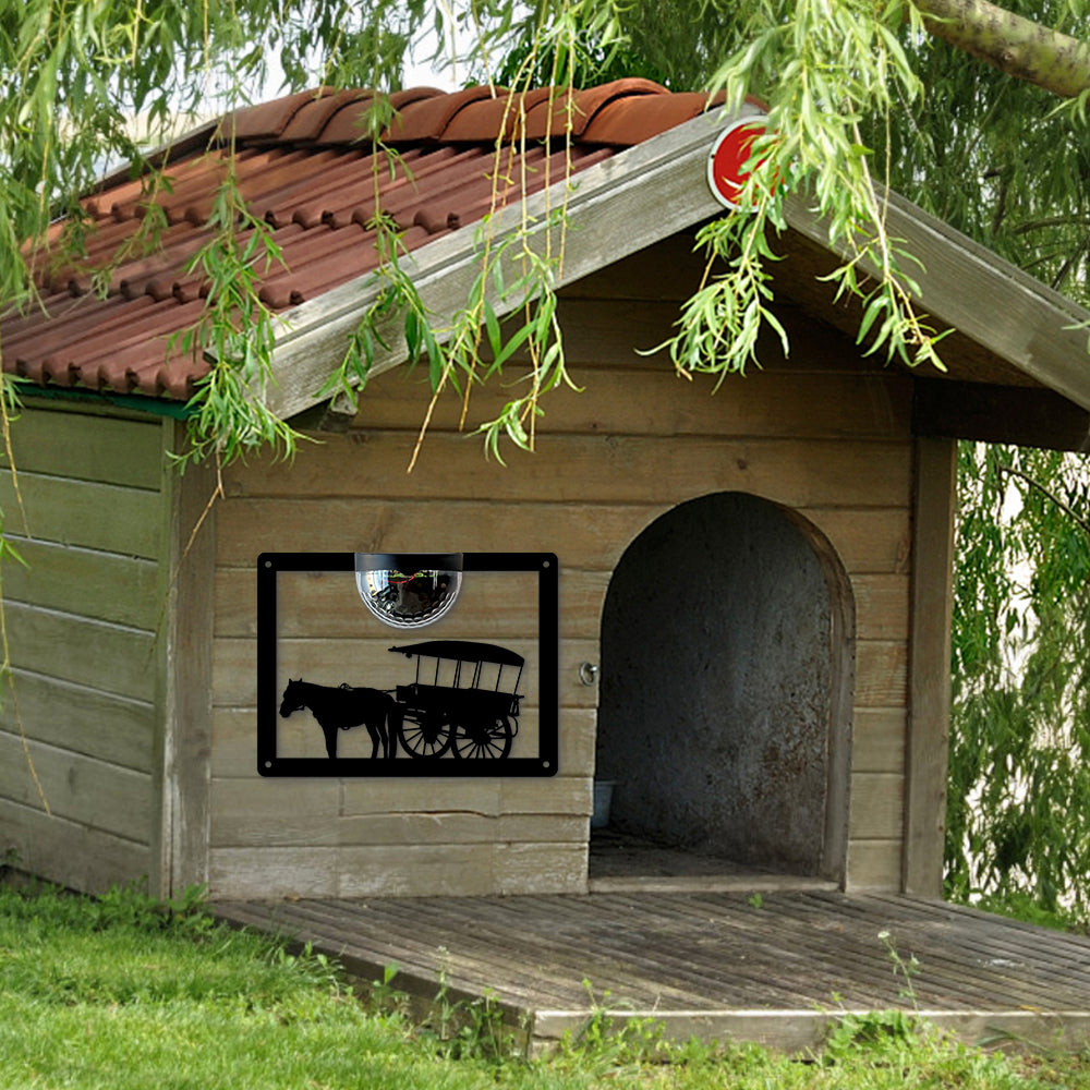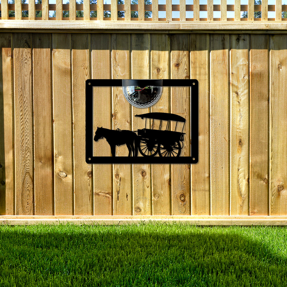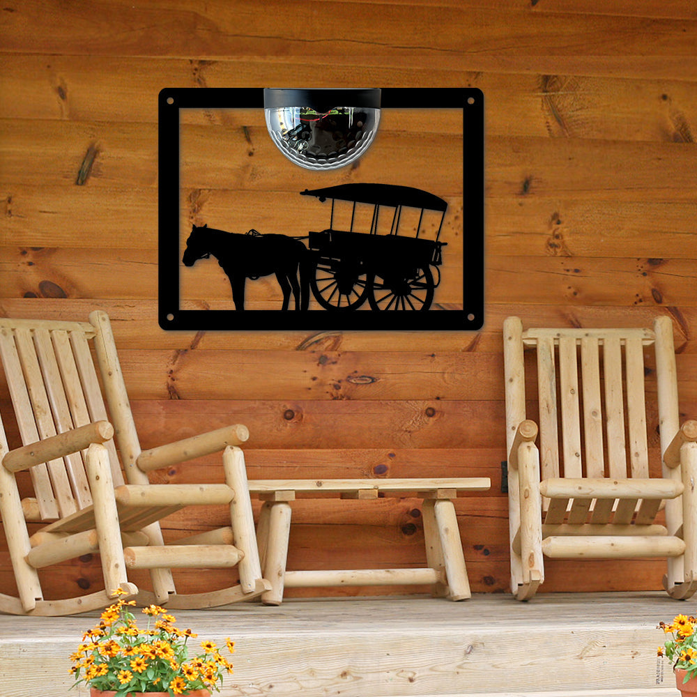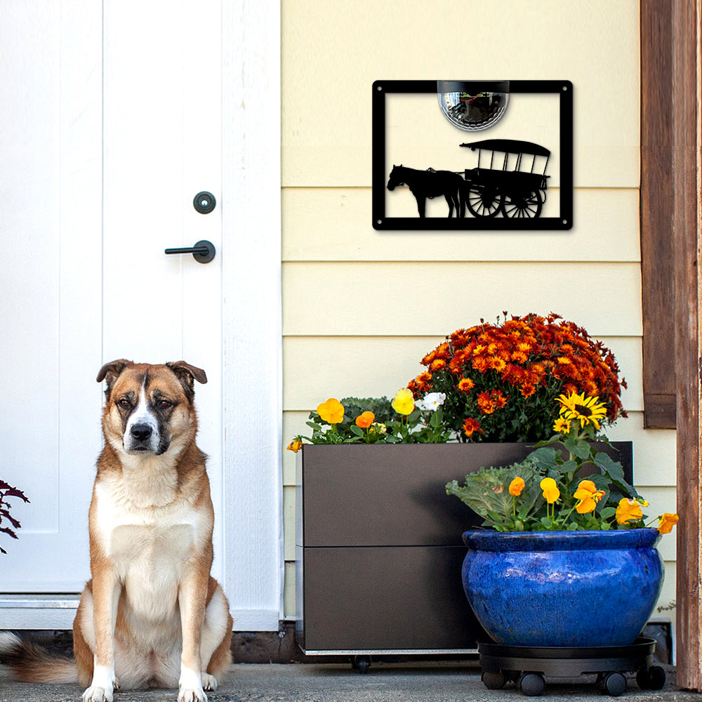 Horse Drawn Cart Metal Wall Art With Solar Light Solar Wall Plaques