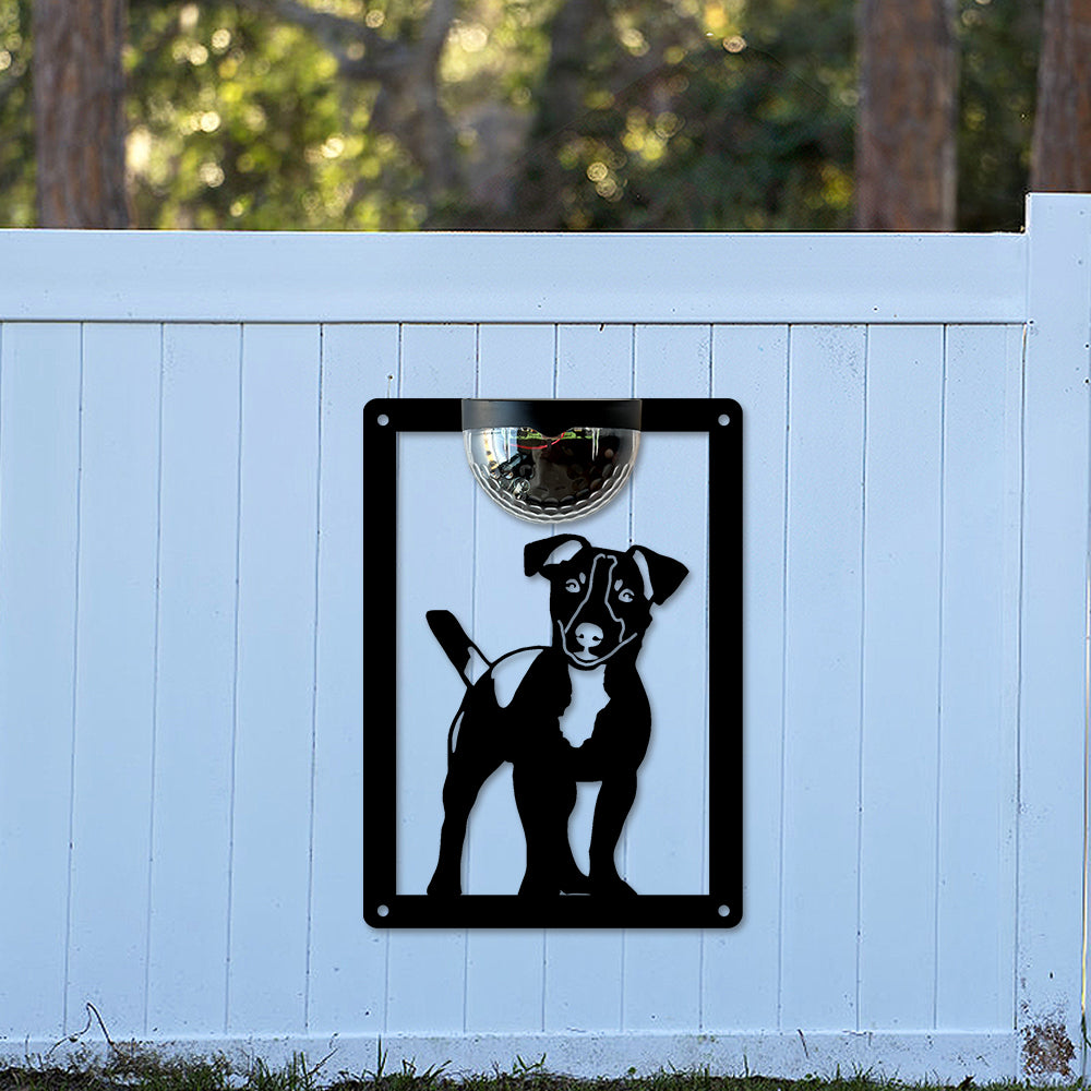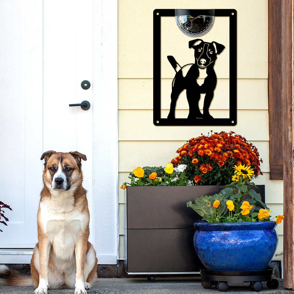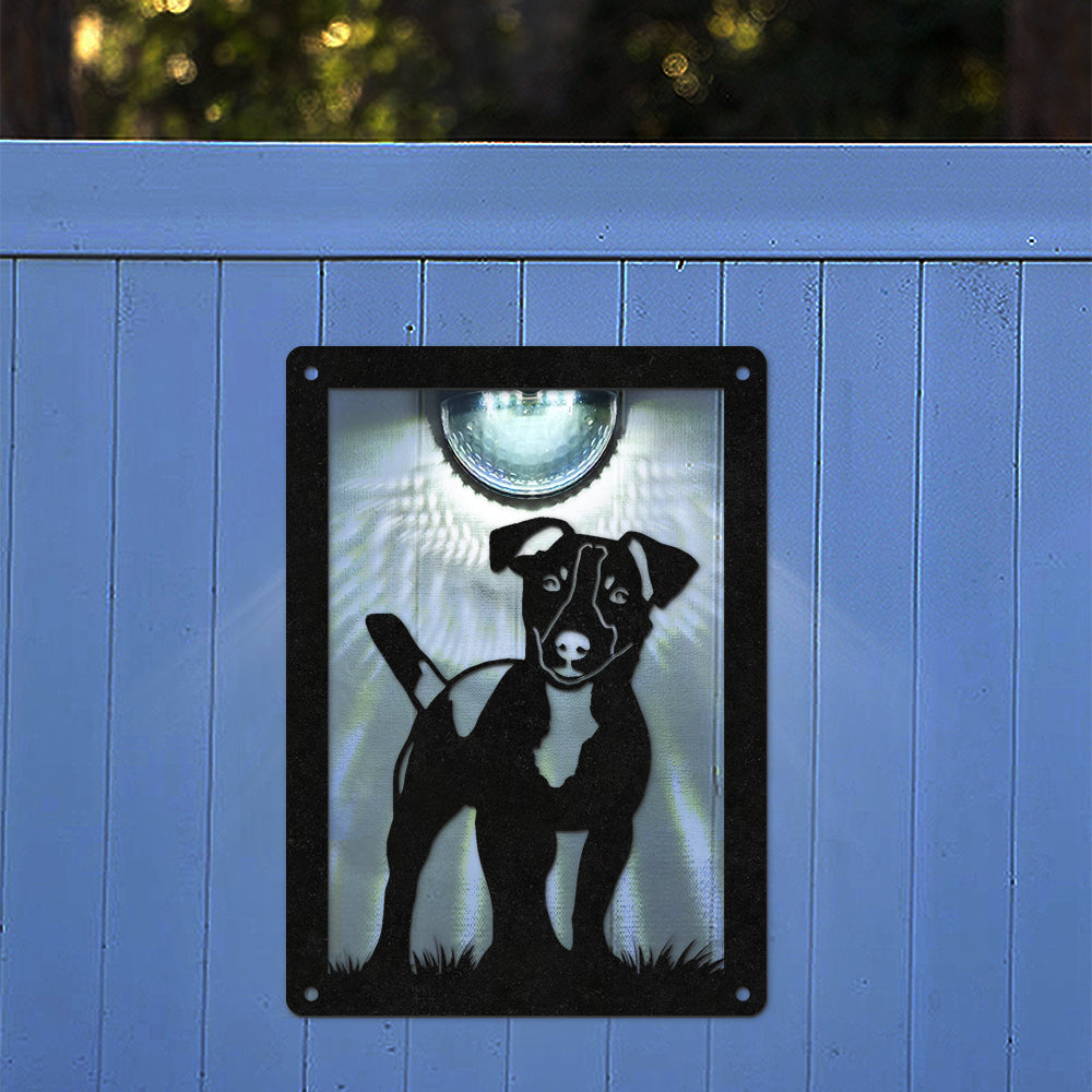 Jack Russell Terrier Dog Metal Wall Art With Solar Light Solar Wall Plaques