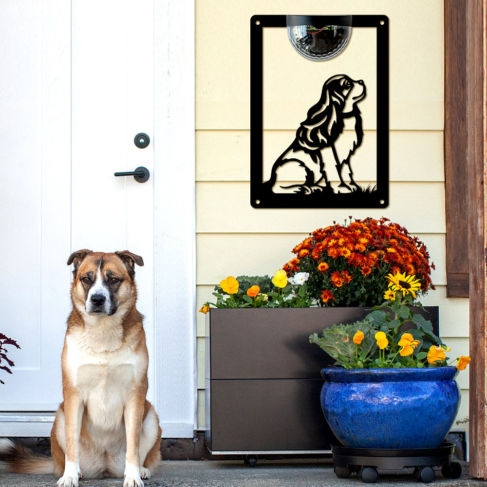 King Charles Spaniel Metal Wall Art With Solar Light Solar Wall Plaques