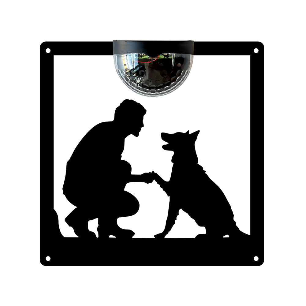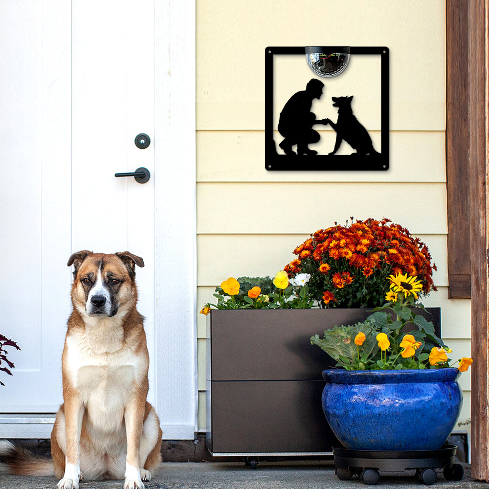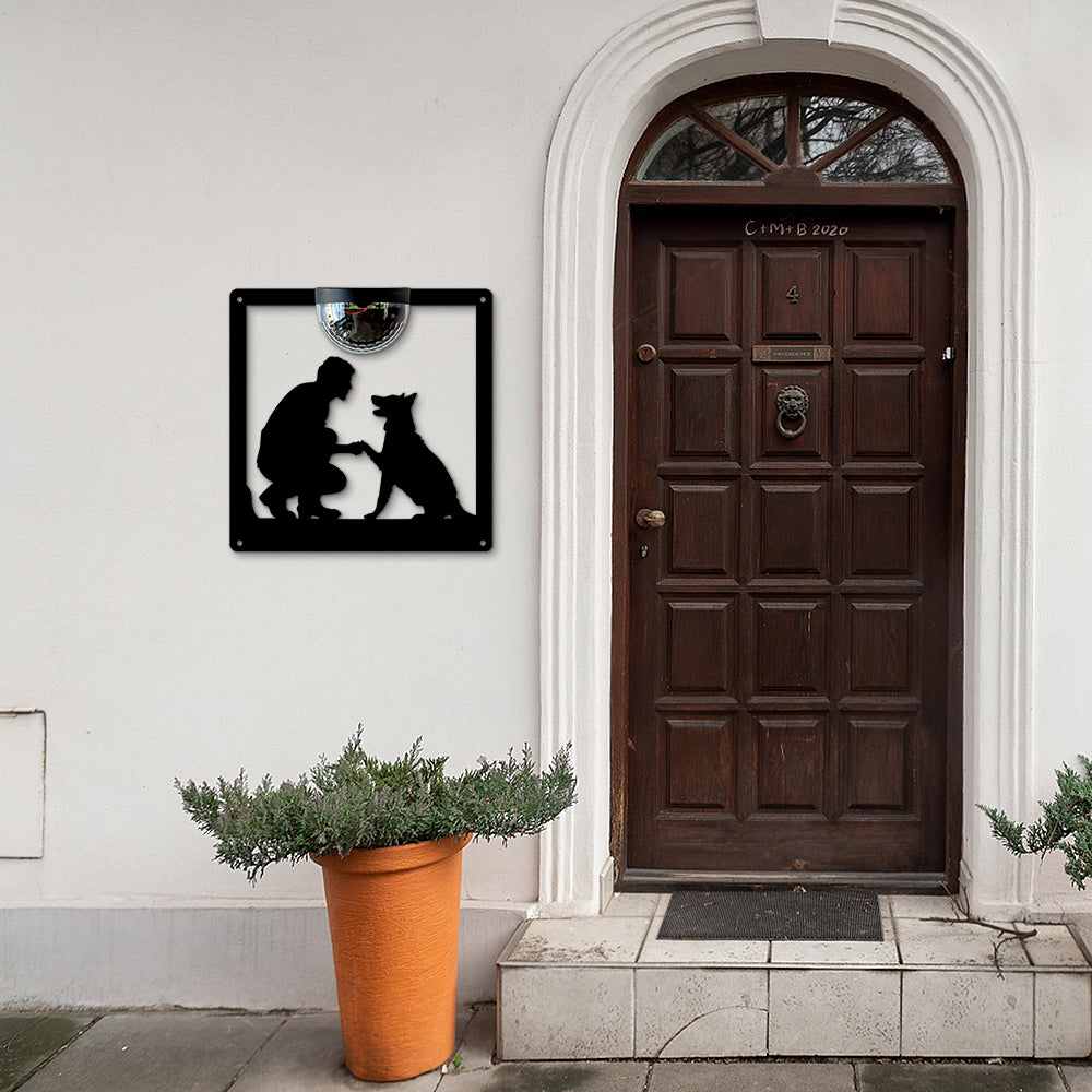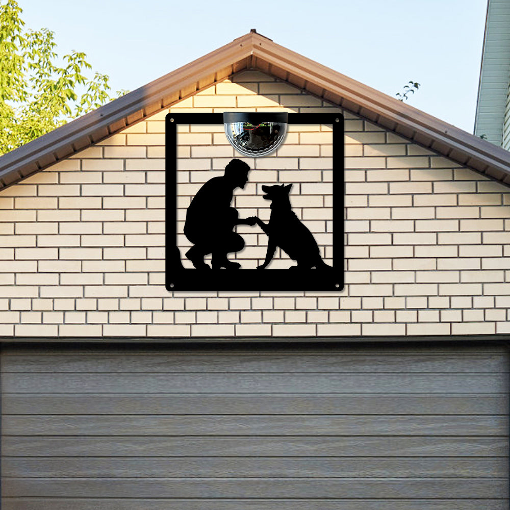 Man and Dog Metal Wall Art With Solar Light Solar Wall Plaques