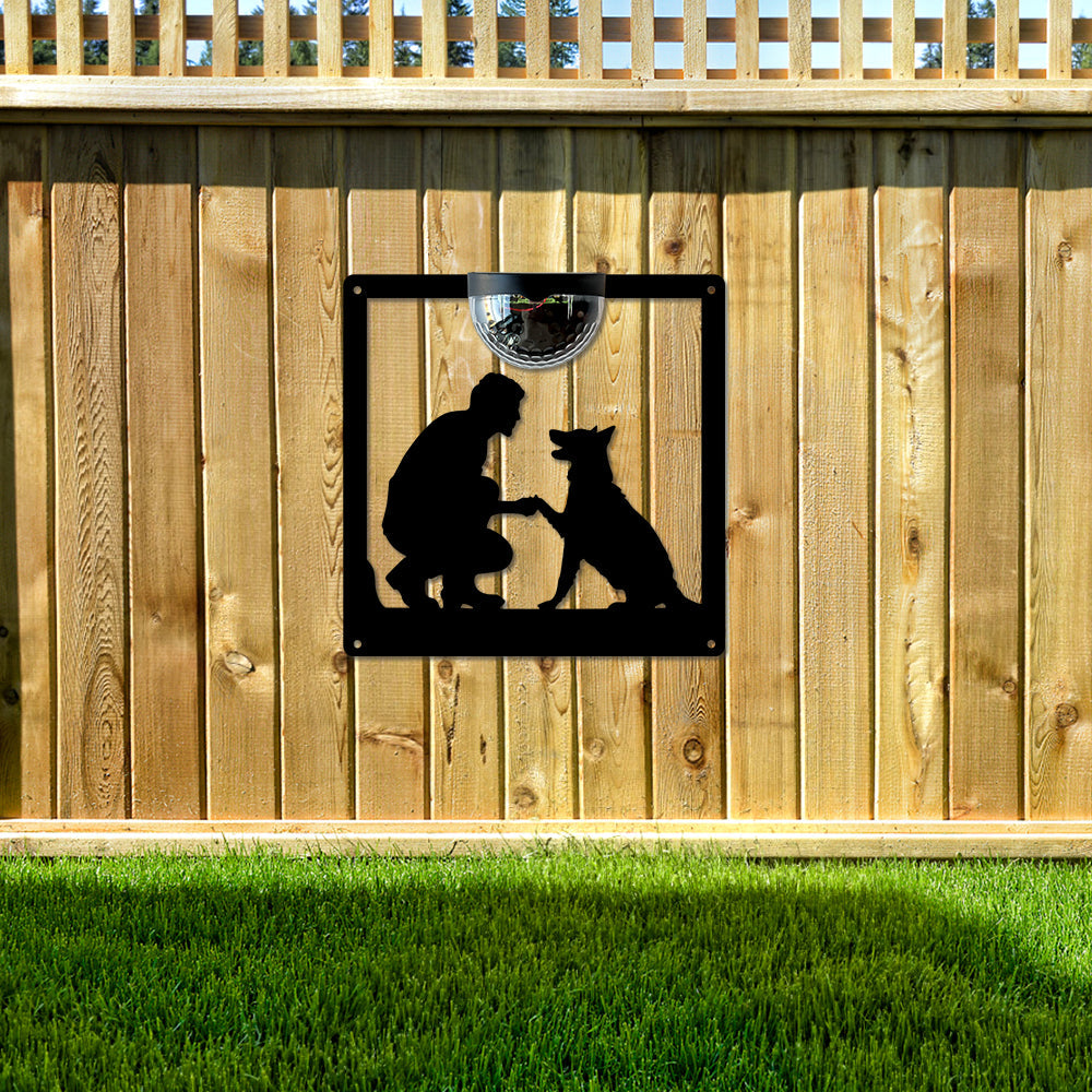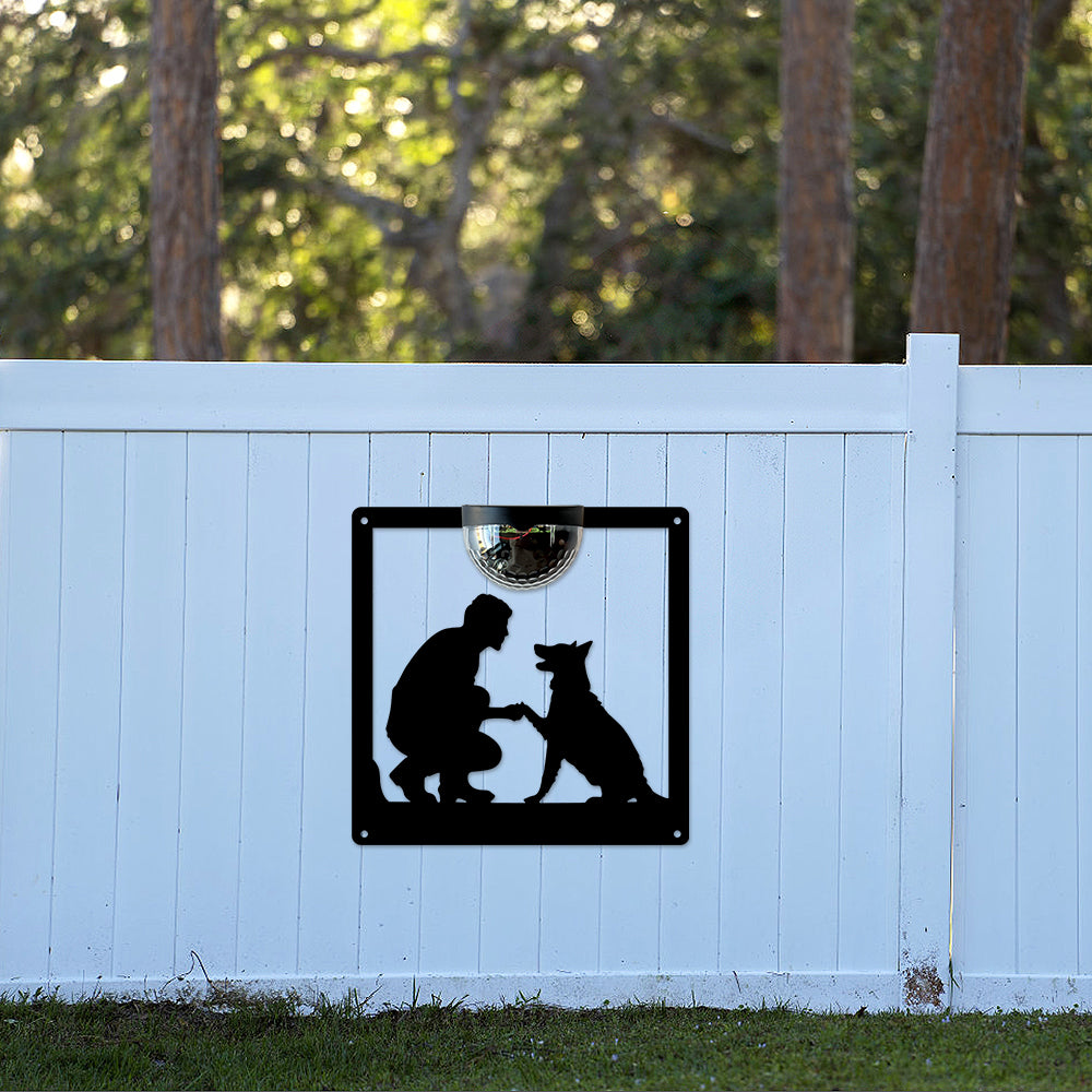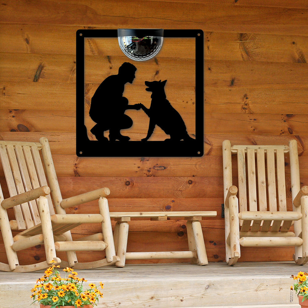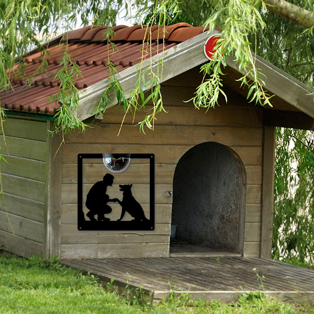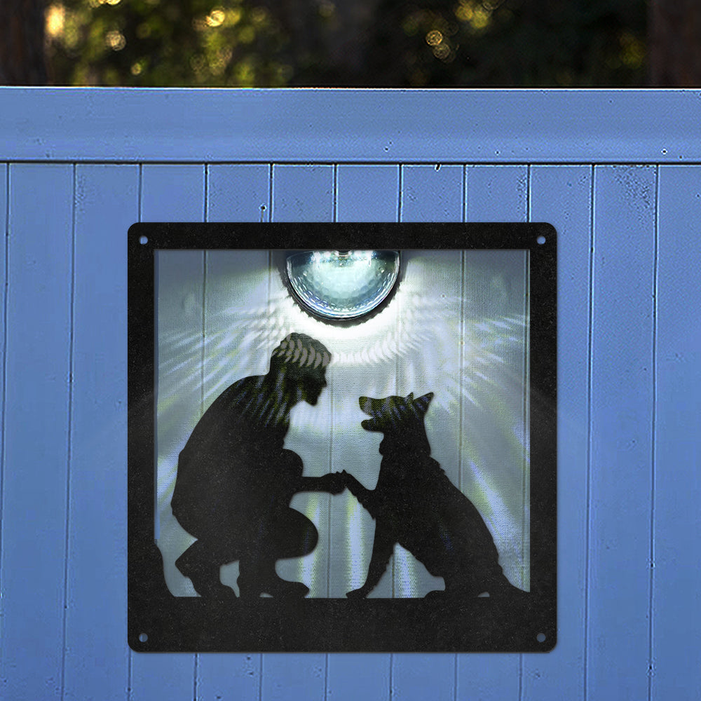 Man and Dog Metal Wall Art With Solar Light Solar Wall Plaques