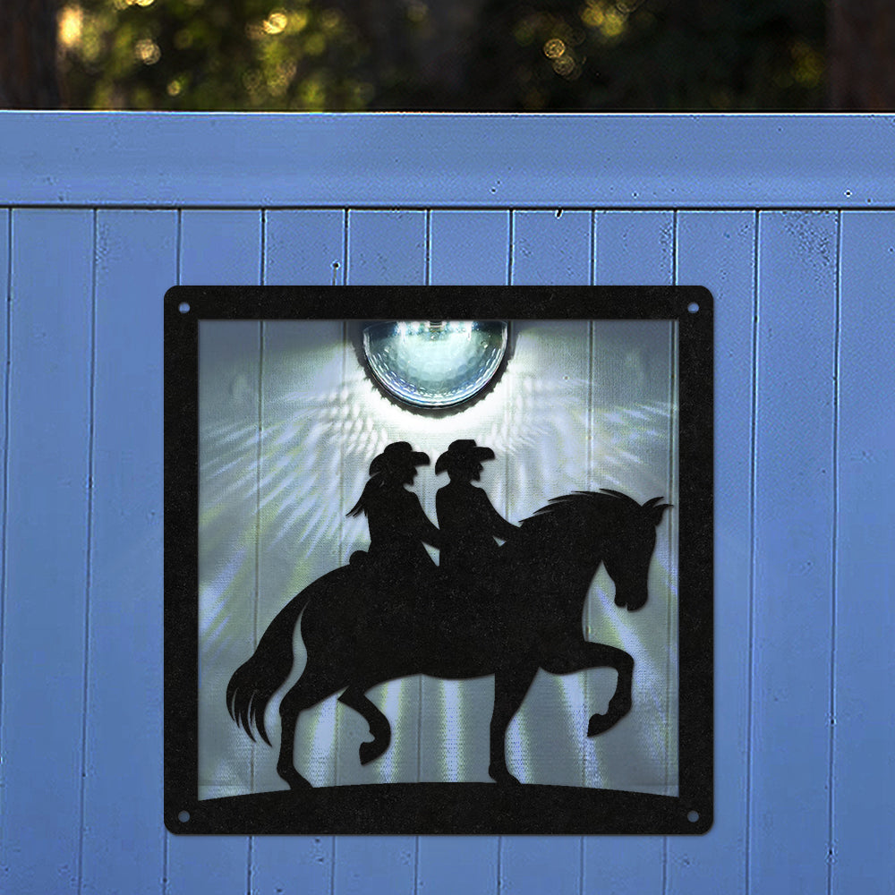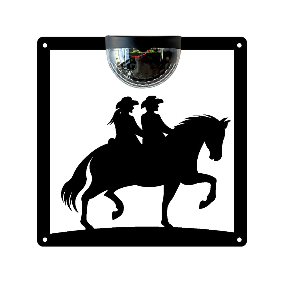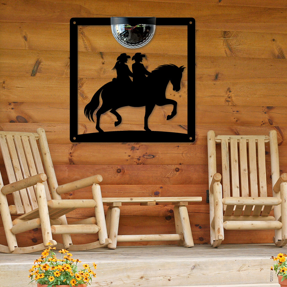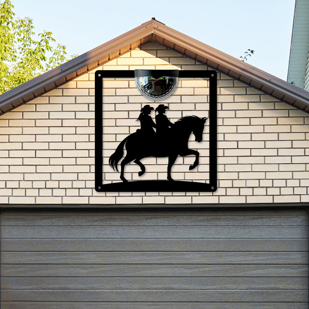 Two Person Horseback Riding Metal Wall Art With Solar Light Solar Wall Plaques