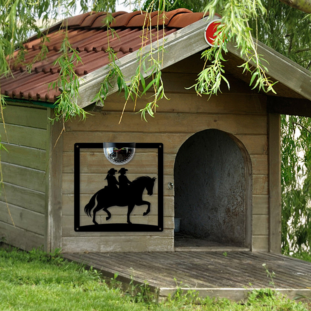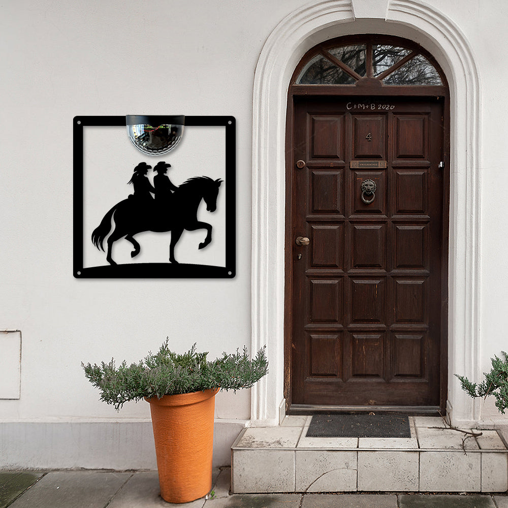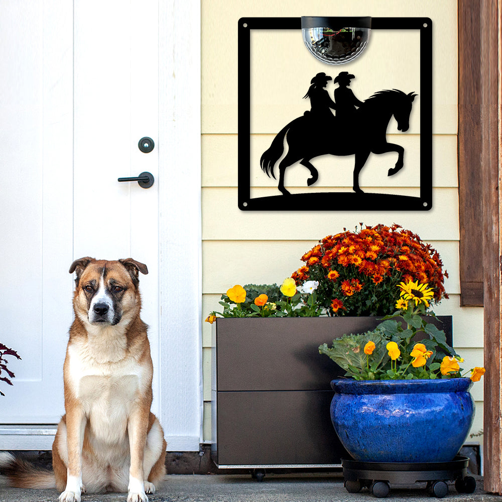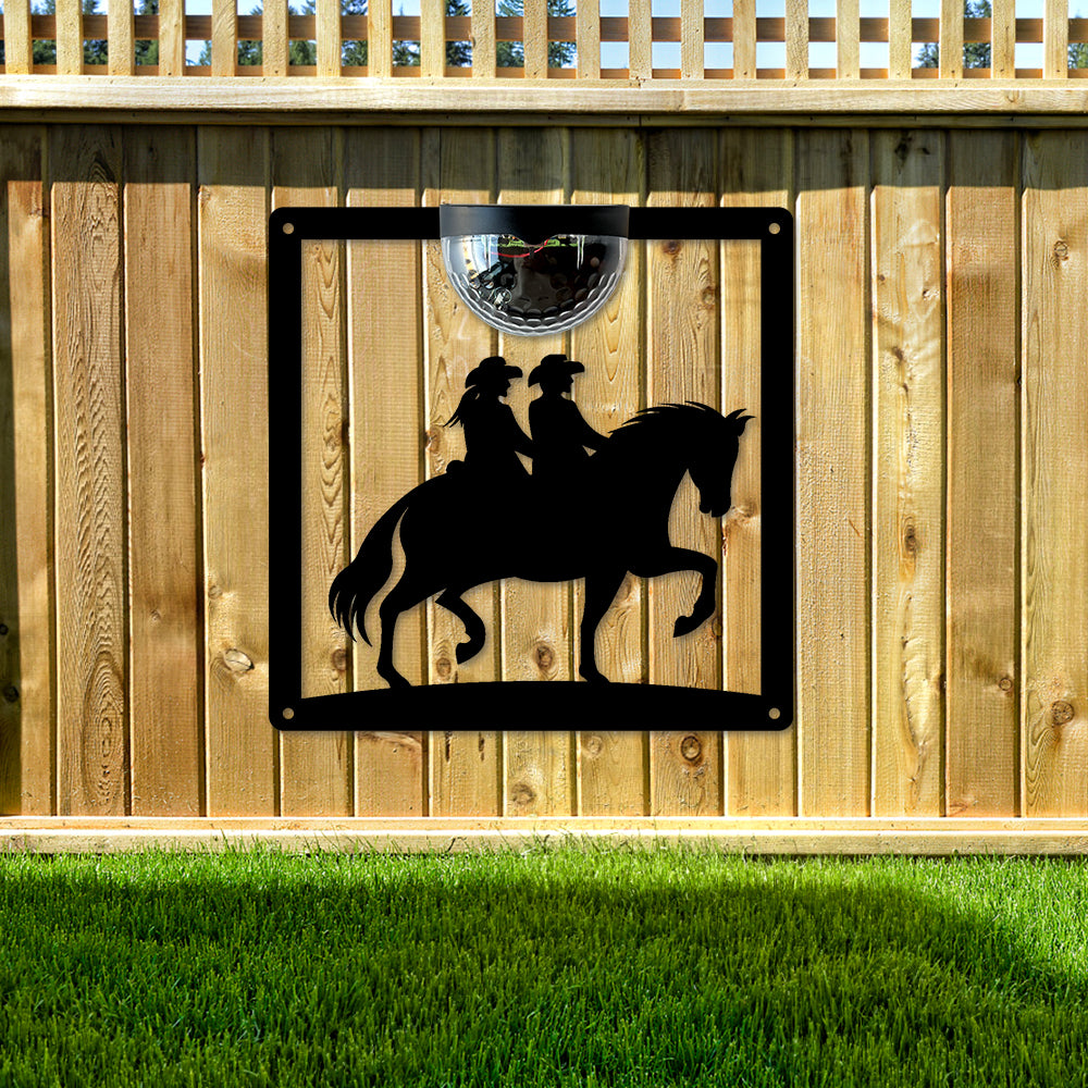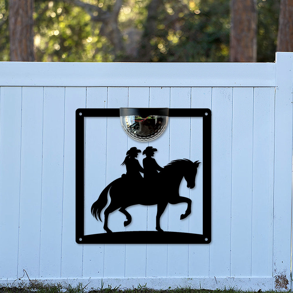 Two Person Horseback Riding Metal Wall Art With Solar Light Solar Wall Plaques