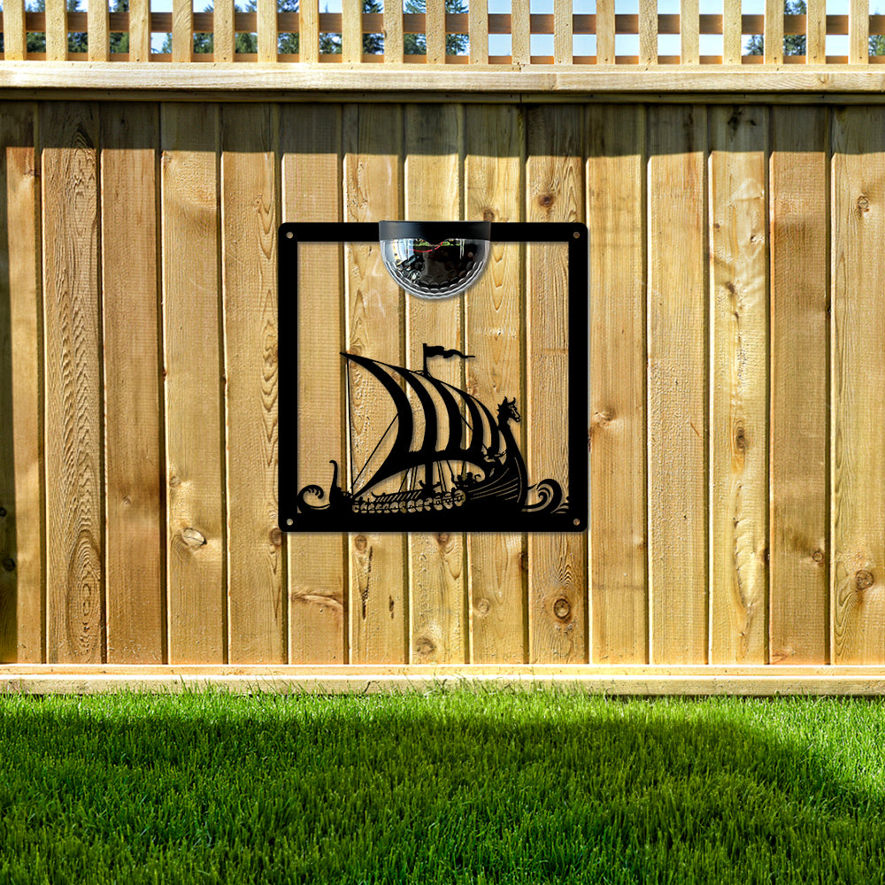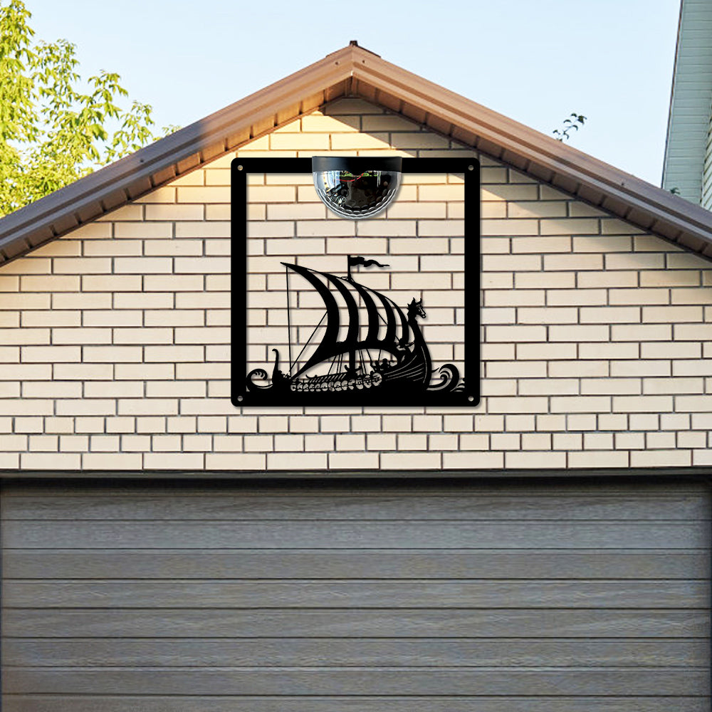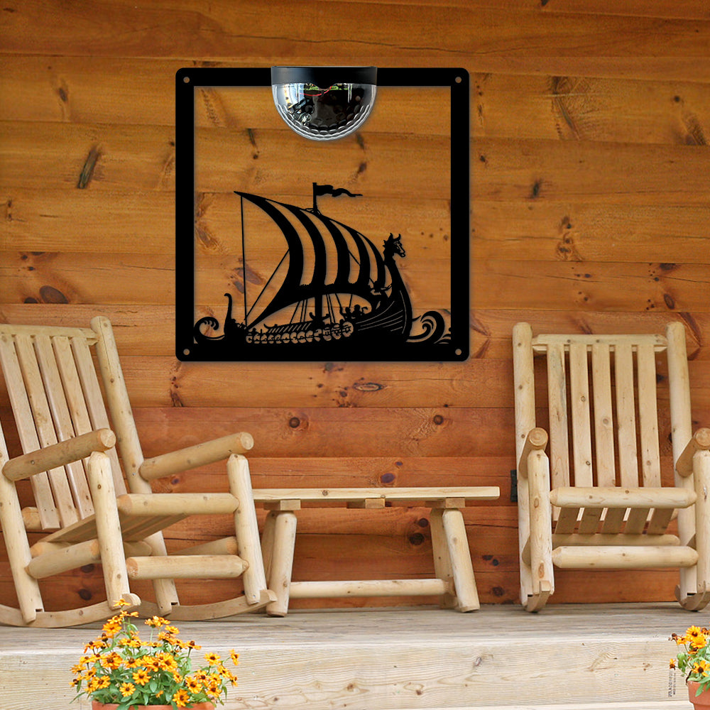 Viking Battle Ship Metal Wall Art With Solar Light Solar Wall Plaques