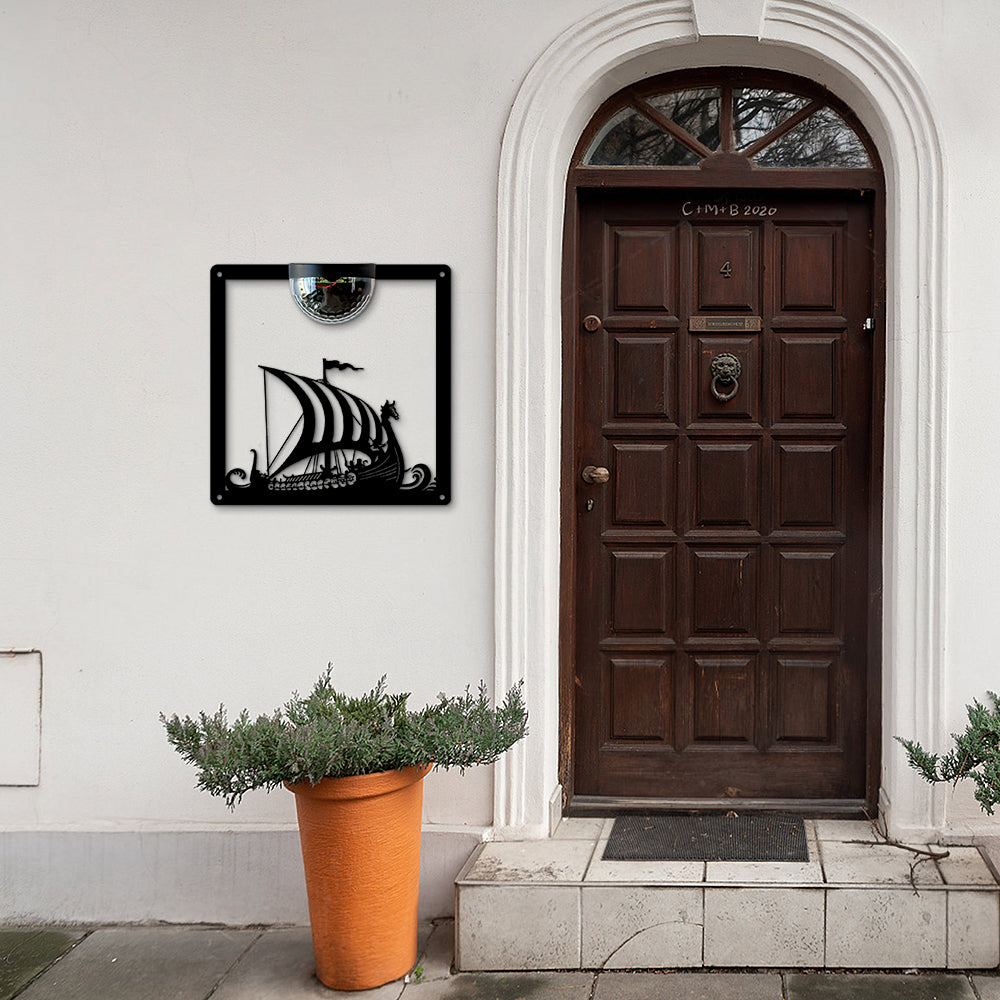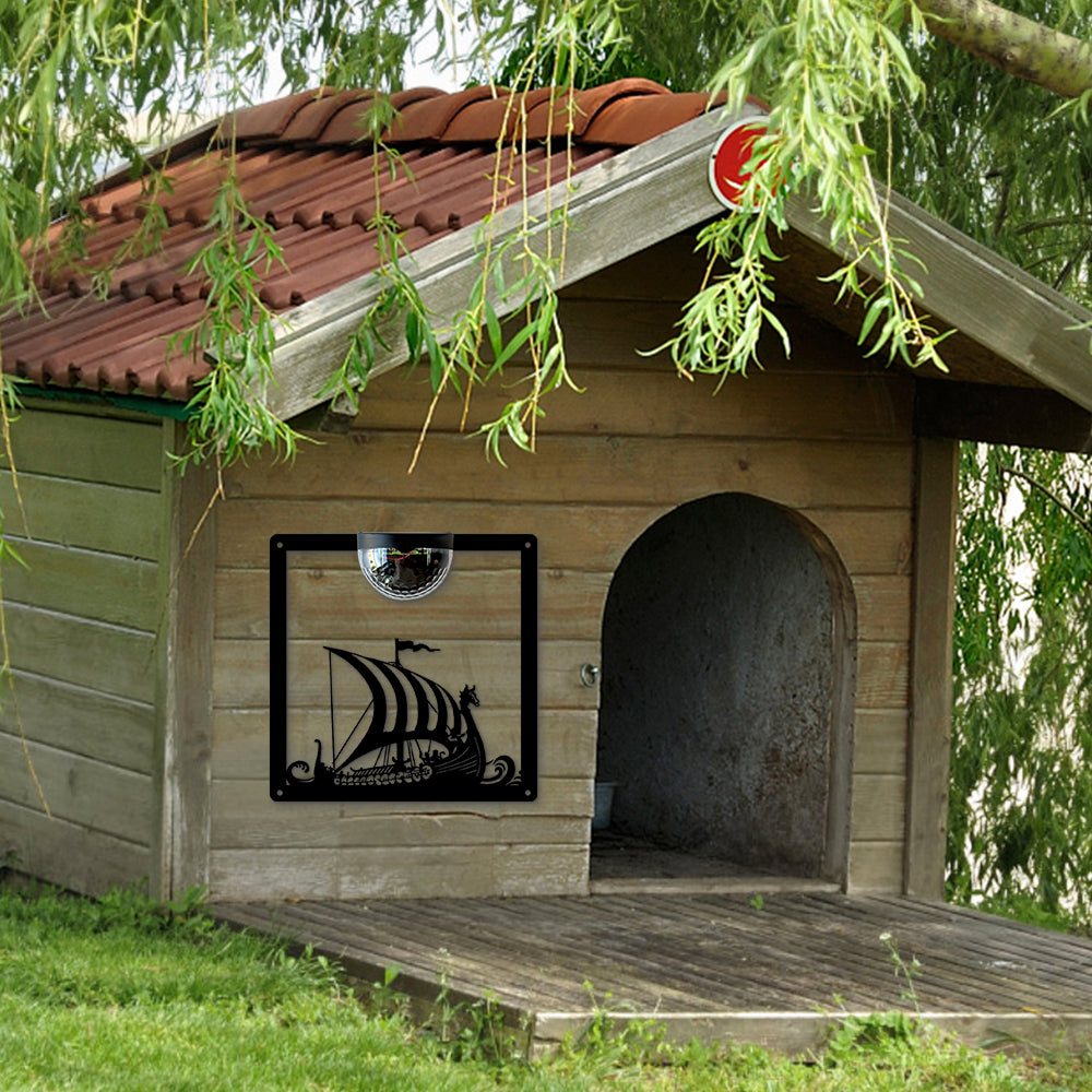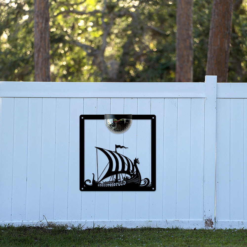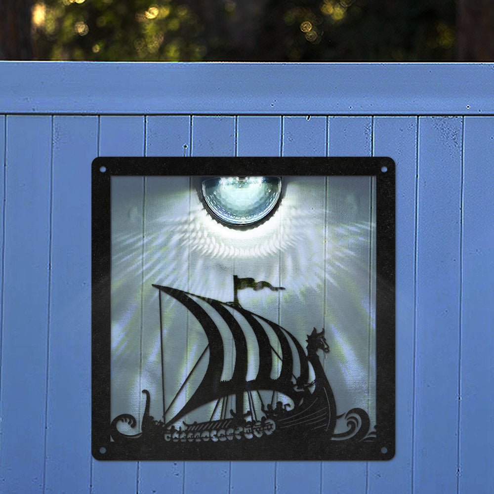 Viking Battle Ship Metal Wall Art With Solar Light Solar Wall Plaques