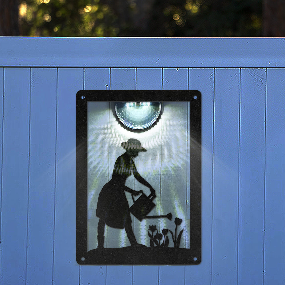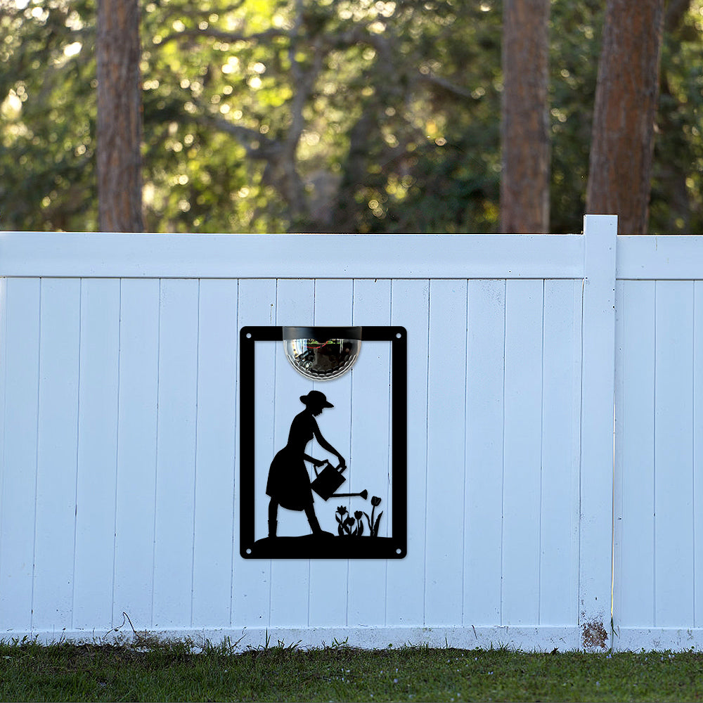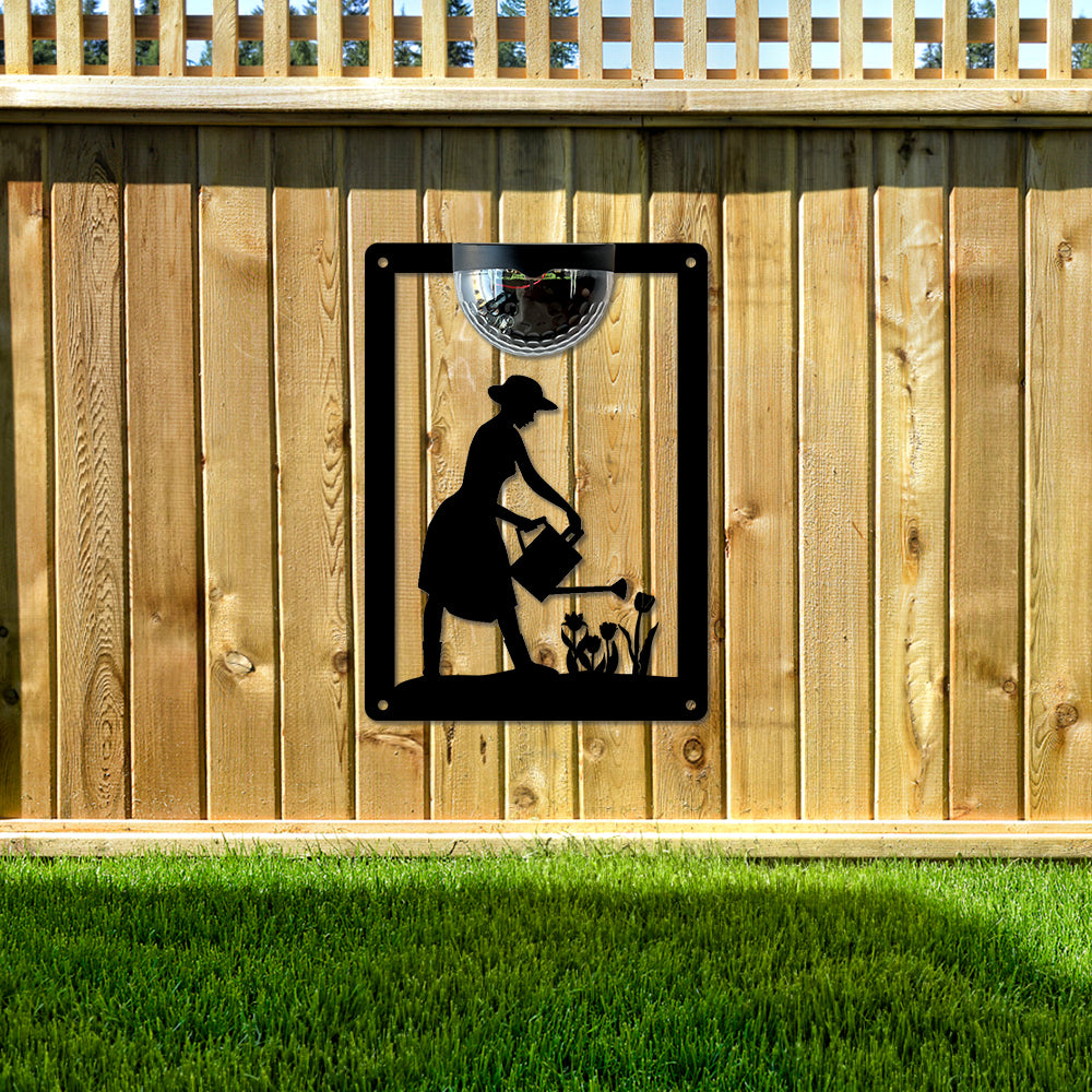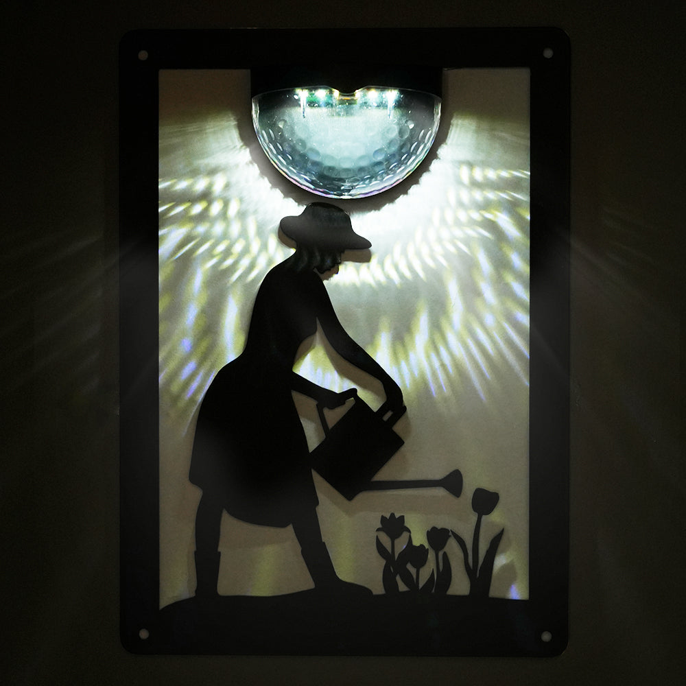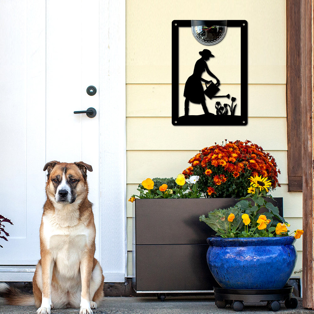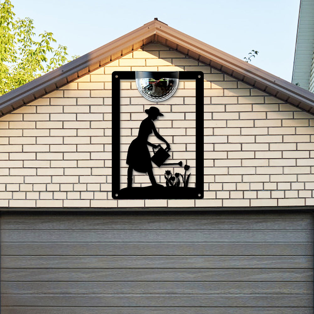 Watering Flowers Metal Wall Art With Solar Light Solar Wall Plaques