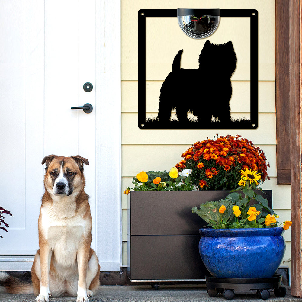 West Highland Terrier Metal Wall Art With Solar Light Solar Wall Plaques