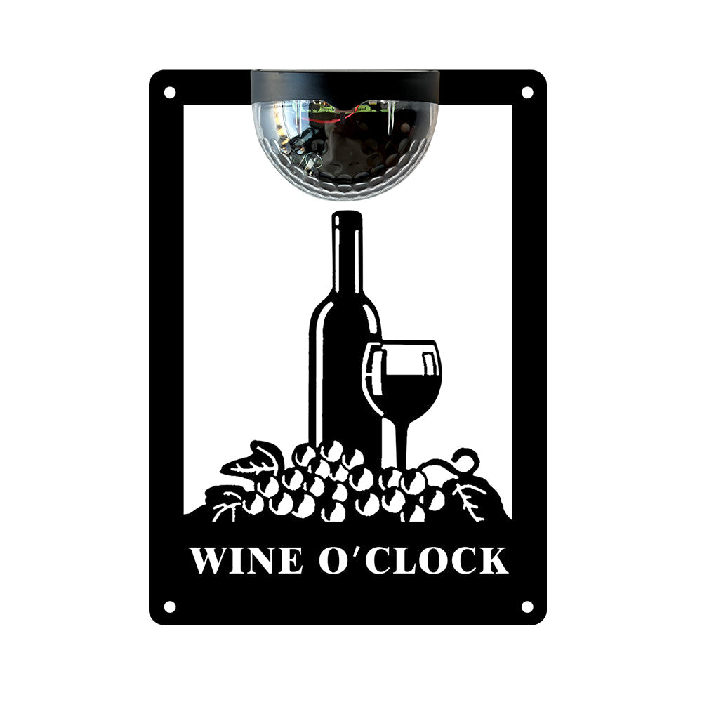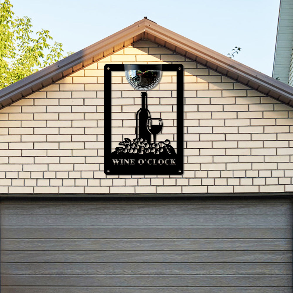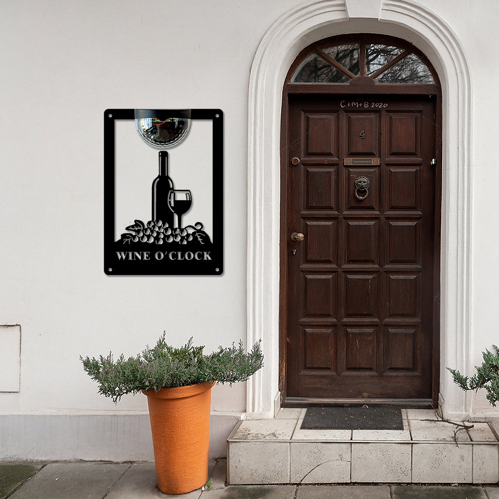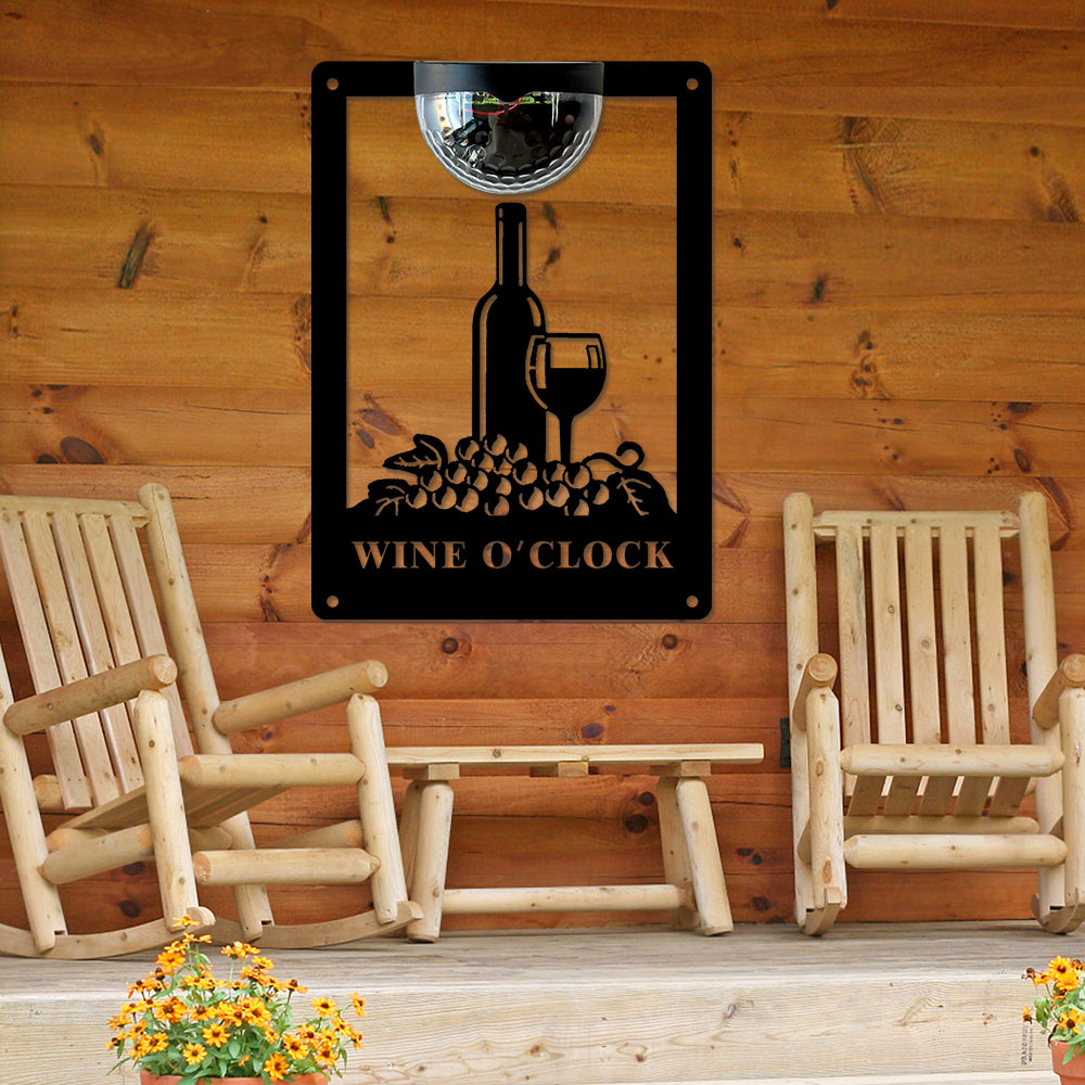 Wine O'clock Metal Wall Art With Solar Light Solar Wall Plaques