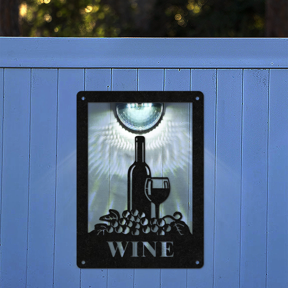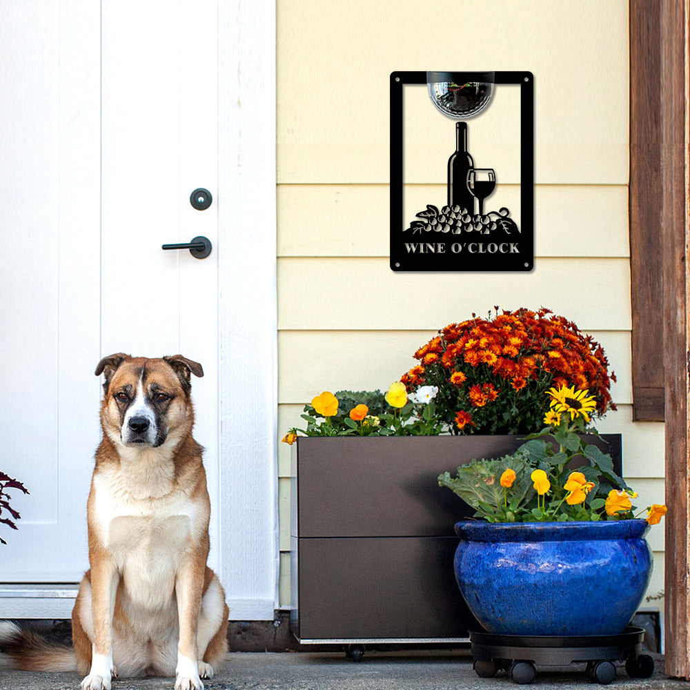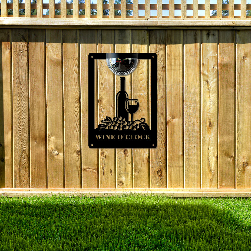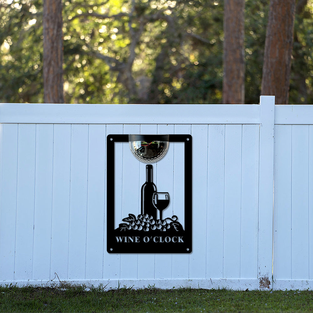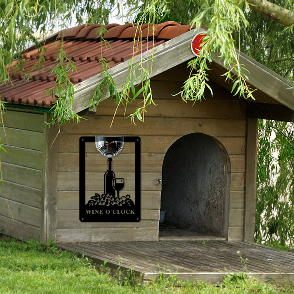 Wine O'clock Metal Wall Art With Solar Light Solar Wall Plaques