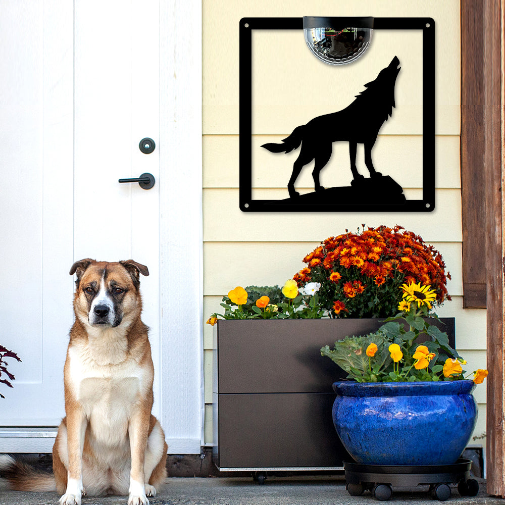 Wolf Metal Wall Art With Solar Light Solar Wall Plaques