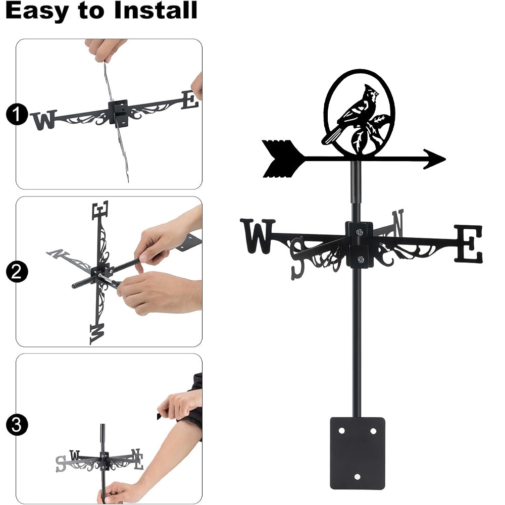 💕Creative design: This Weathervane is made of high-quality Stainless Steel. With stylish straight lines and satin black finishes. This anti-rust iron weather vane is decorated with exquisite patterns.