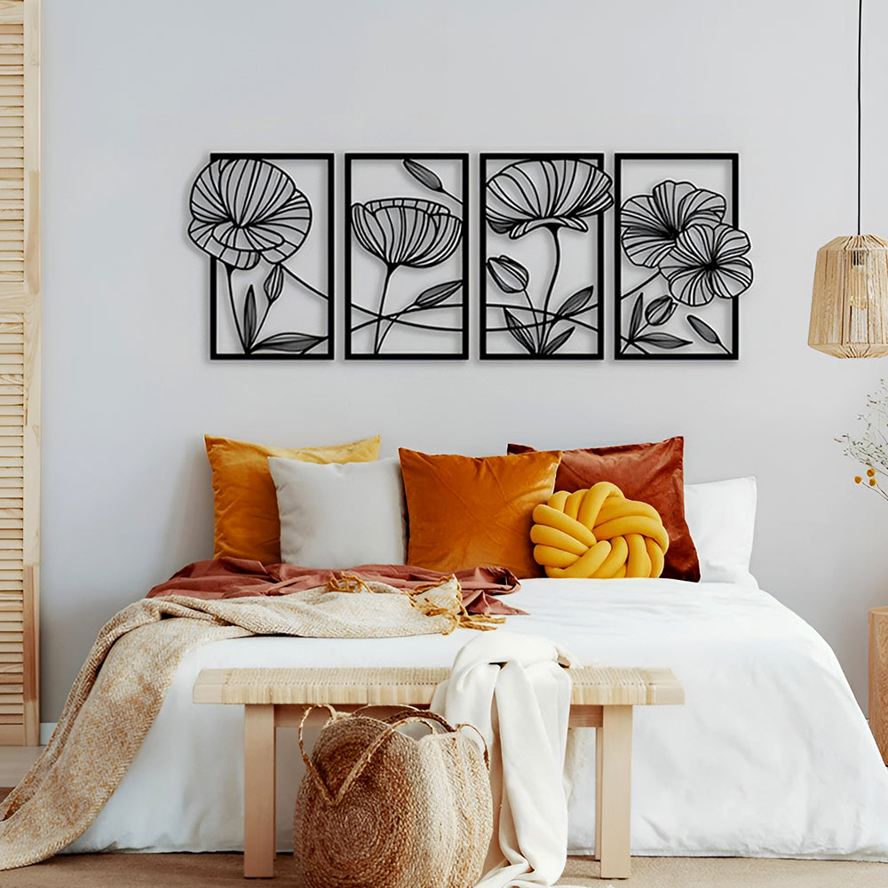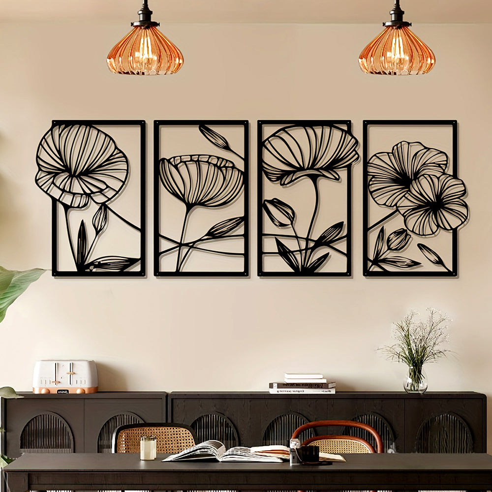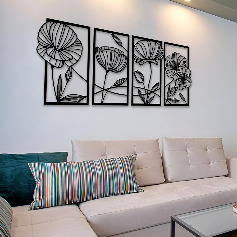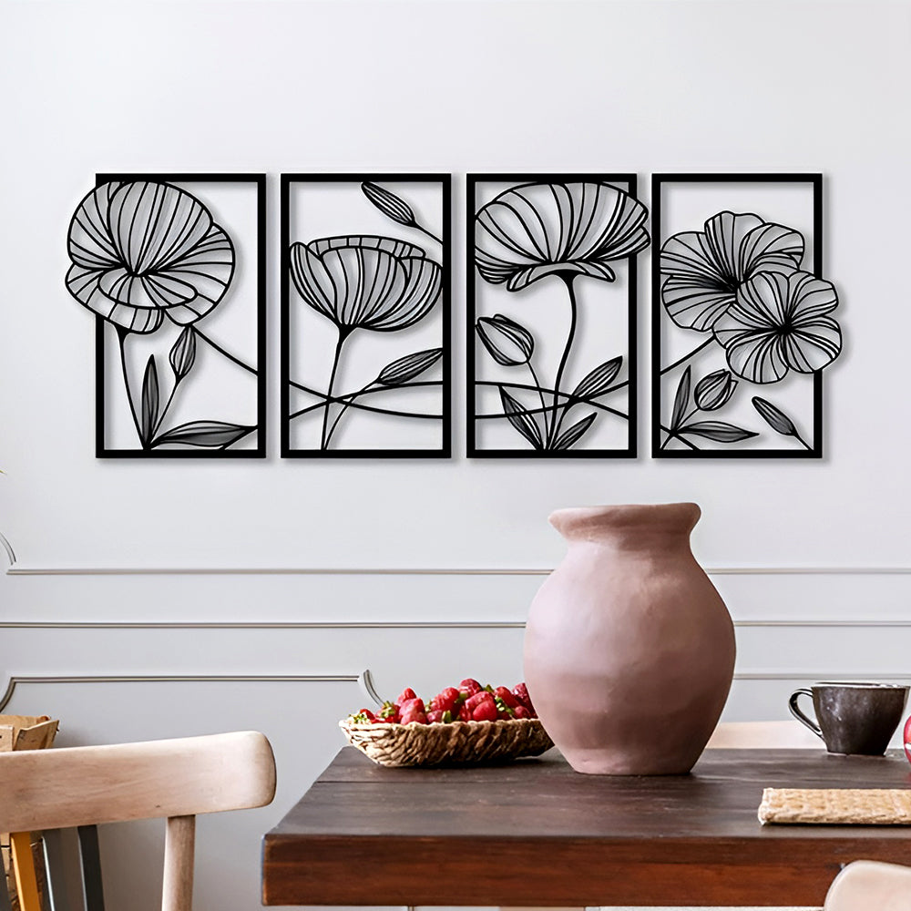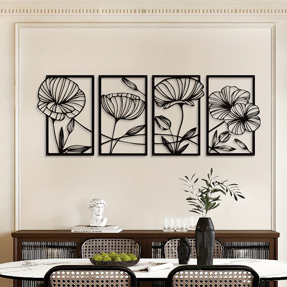 4 Pcs Black Metal Lotus Tree of Life Metal Wall Art