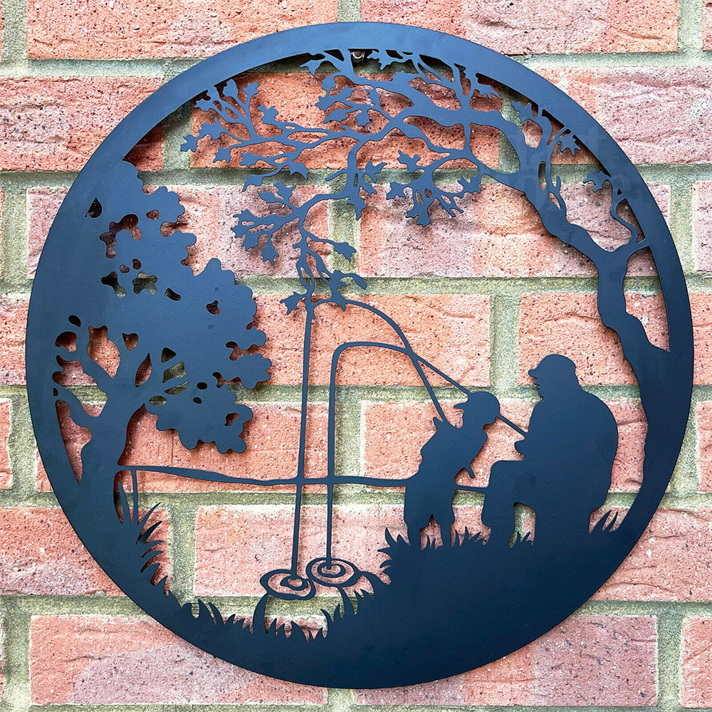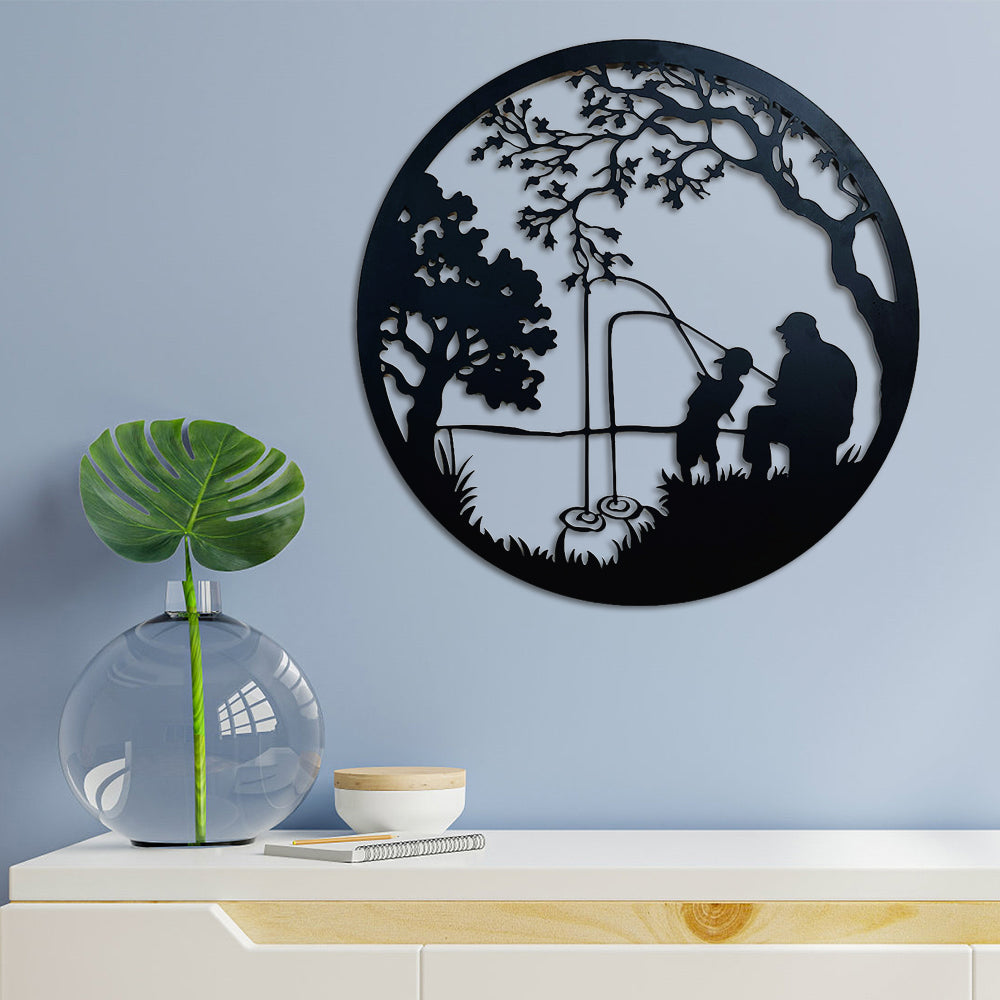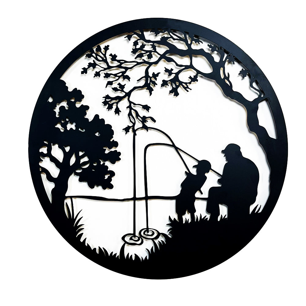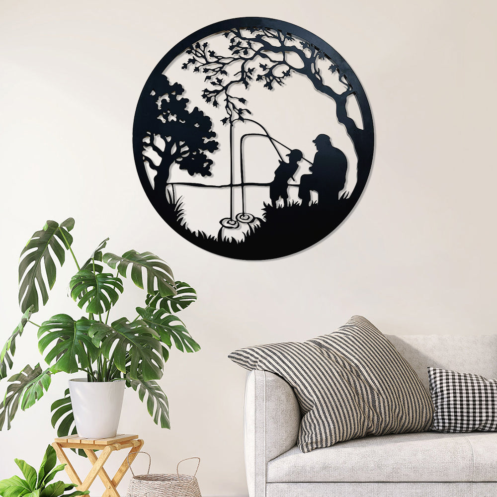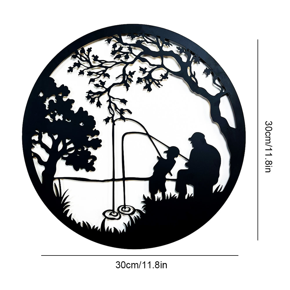 Father and Son Fishing Tree of Life Metal Wall Art Decoration