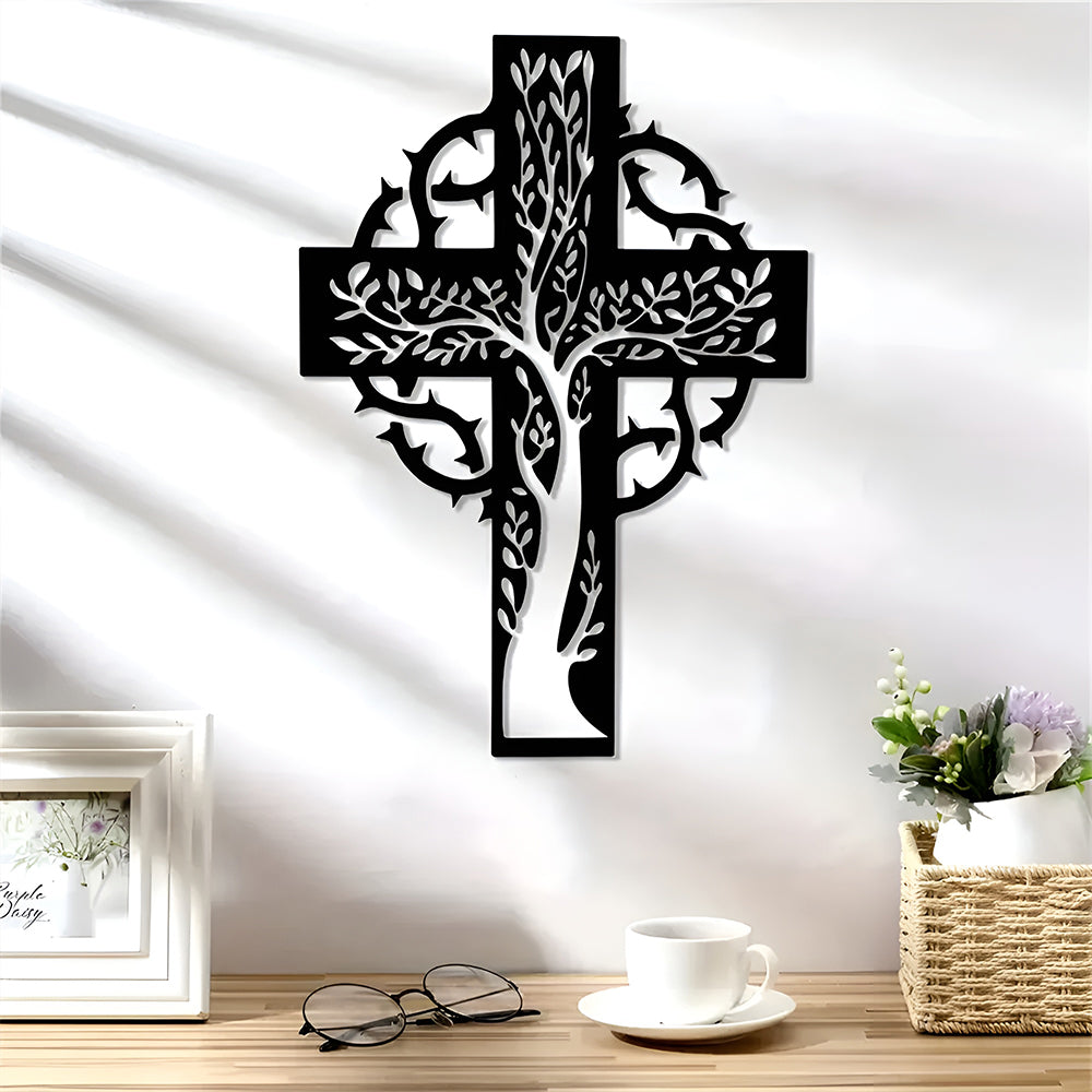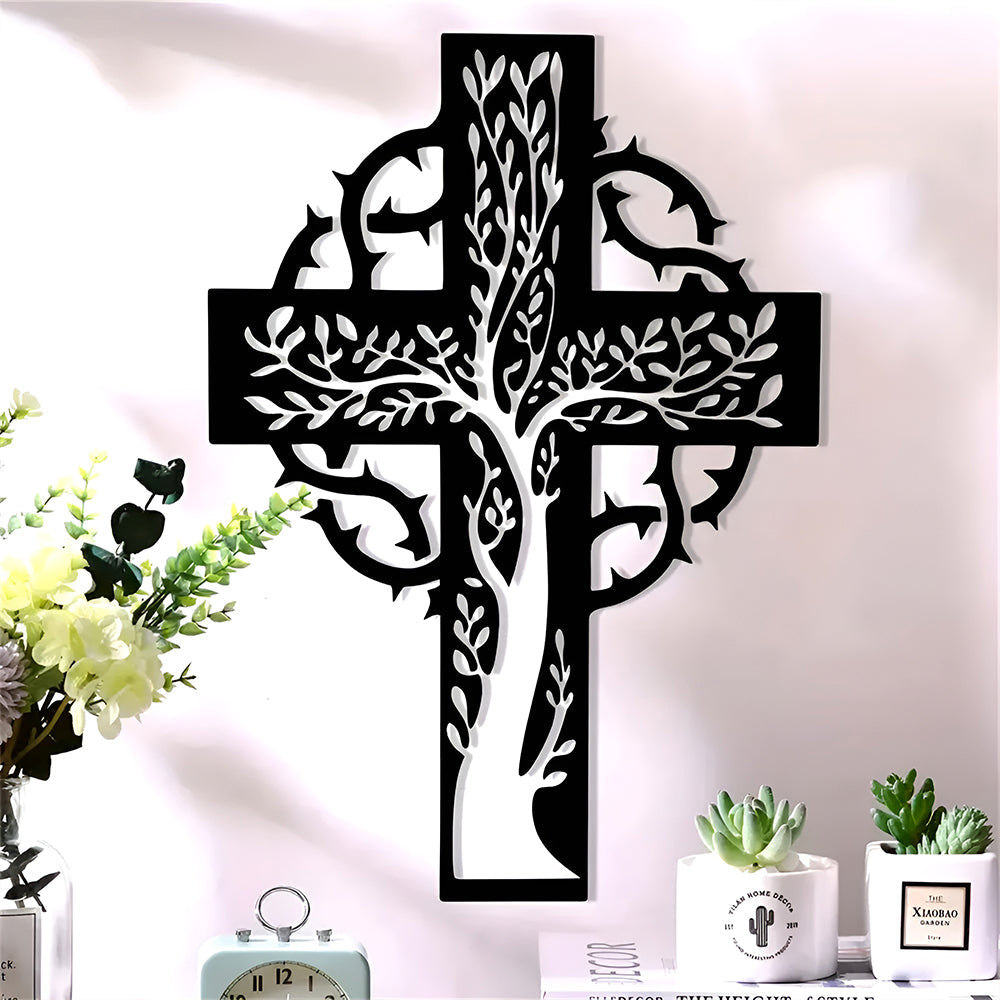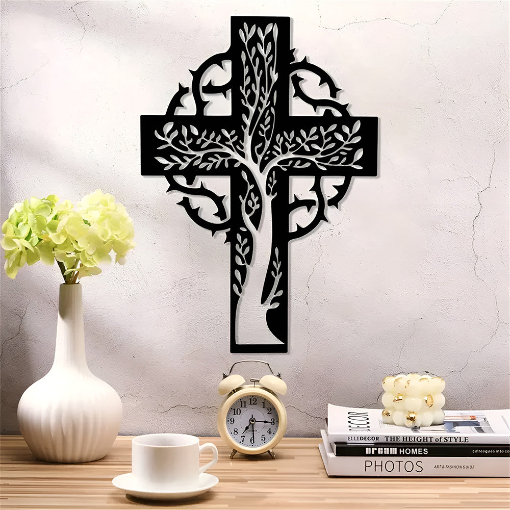 God Metal Logo Cross Tree Of Life Symbol Wall Decoration