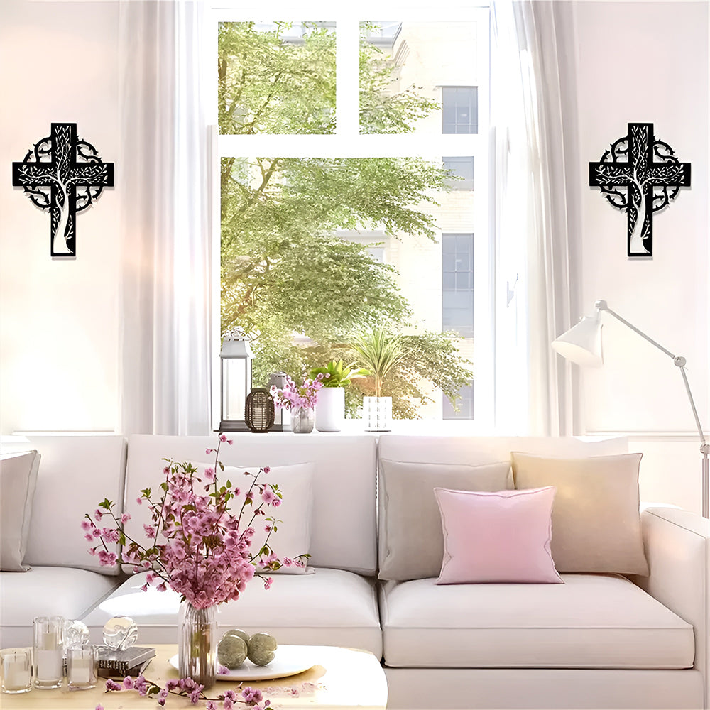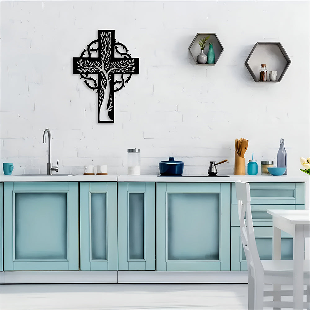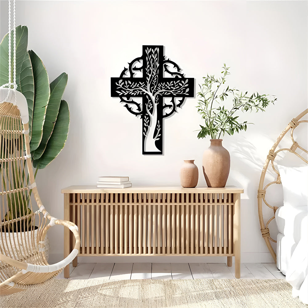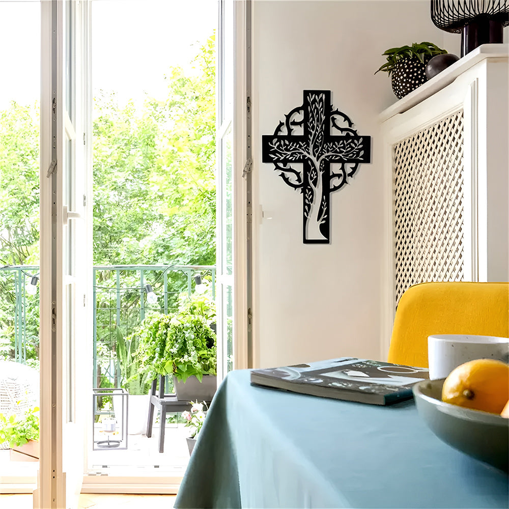 God Metal Logo Cross Tree Of Life Symbol Wall Decoration