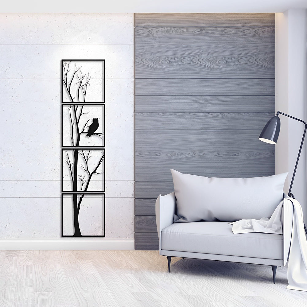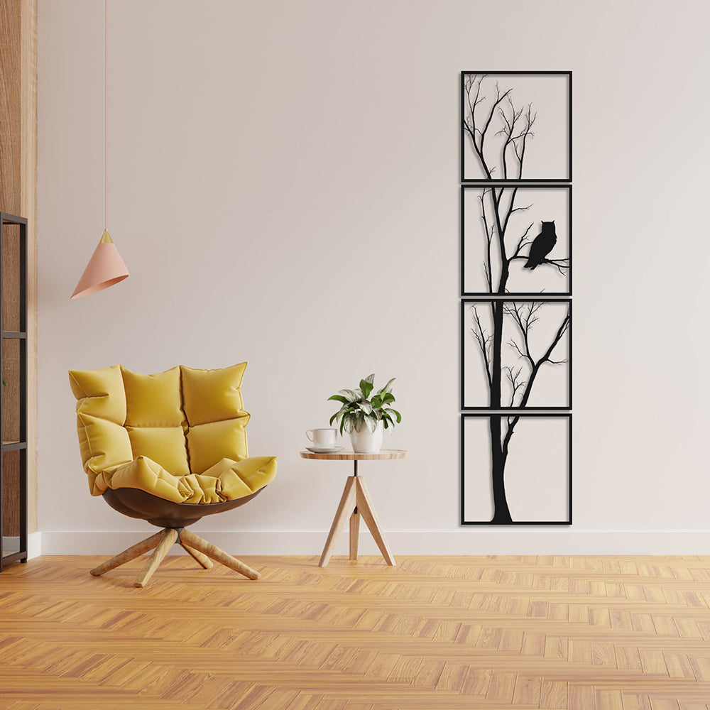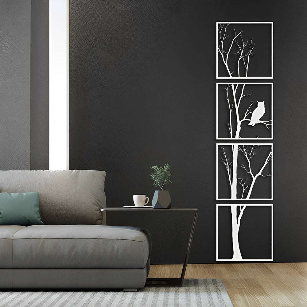 4 Pcs Owl Tree Of Life Metal Wall Art