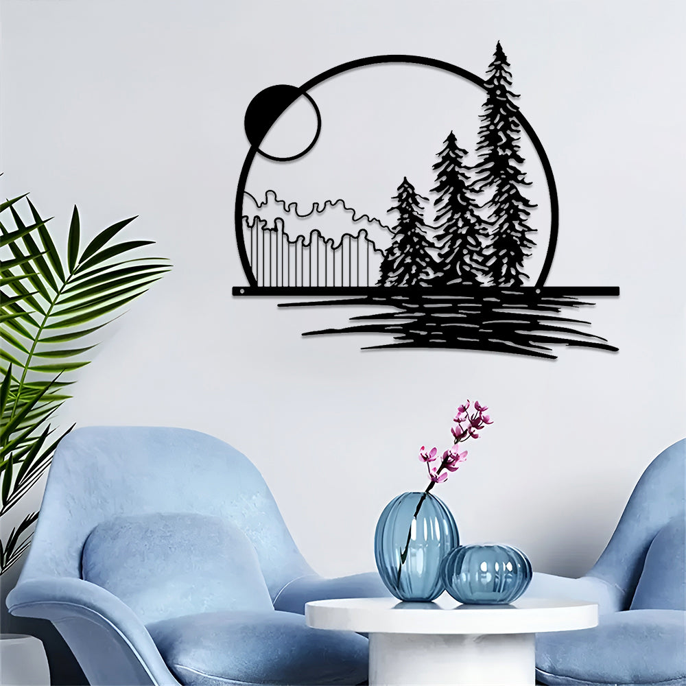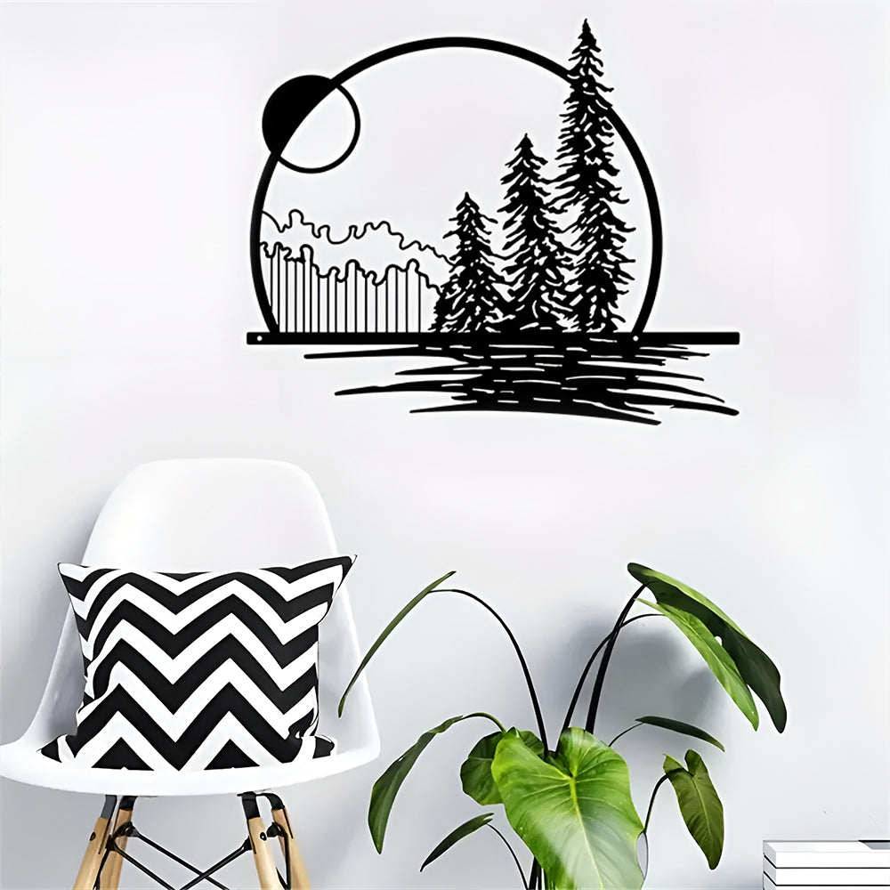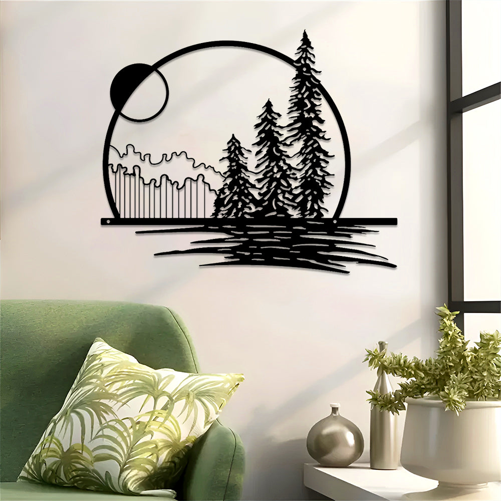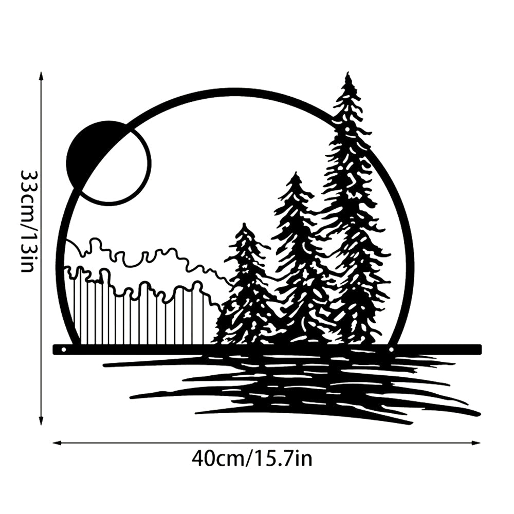Sun Moon Mountain With Tree Metal Wall Decoration