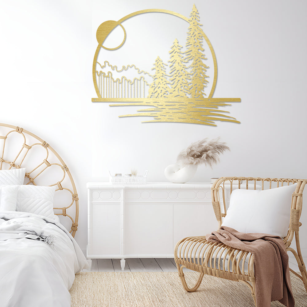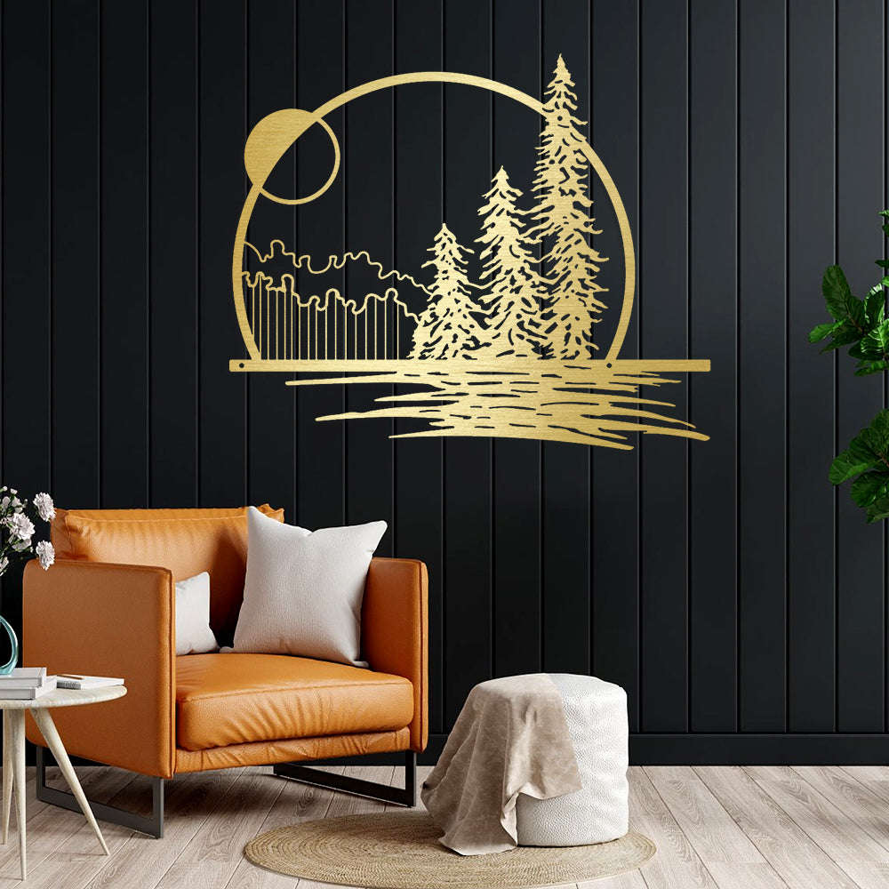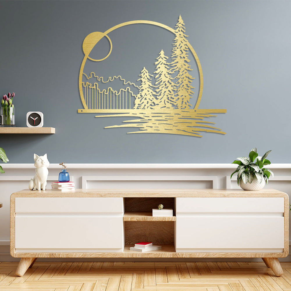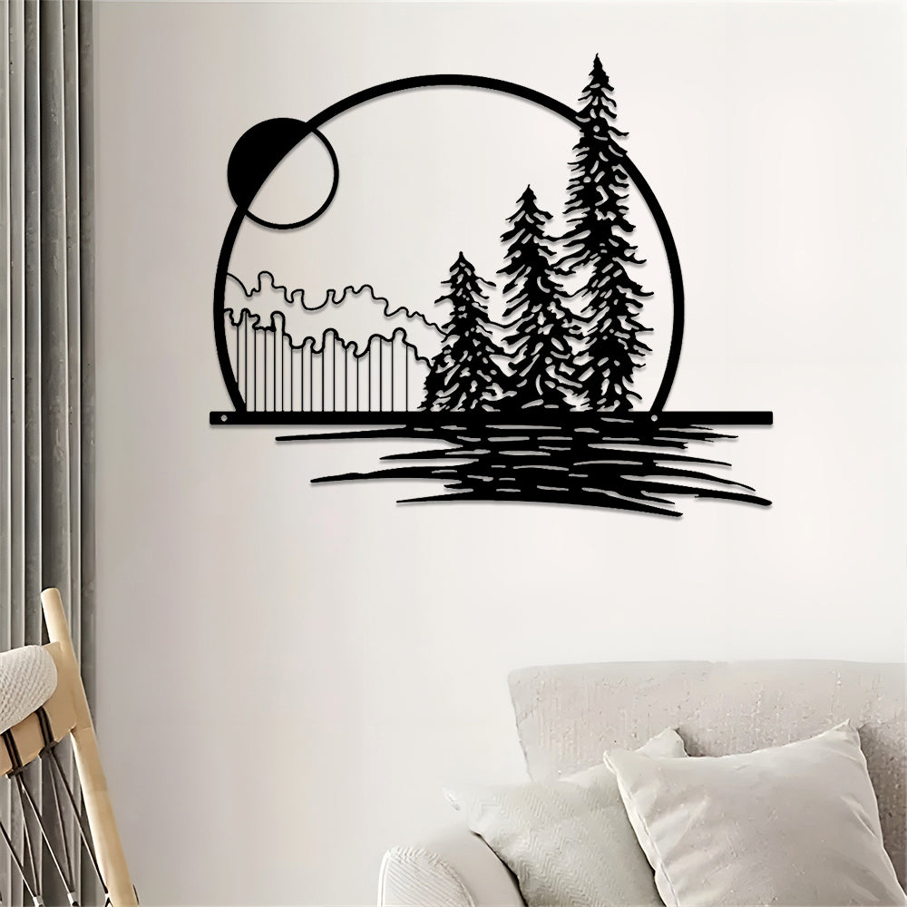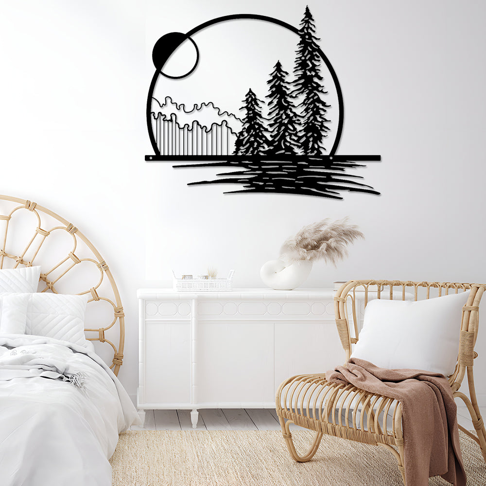Sun Moon Mountain With Tree Metal Wall Decoration