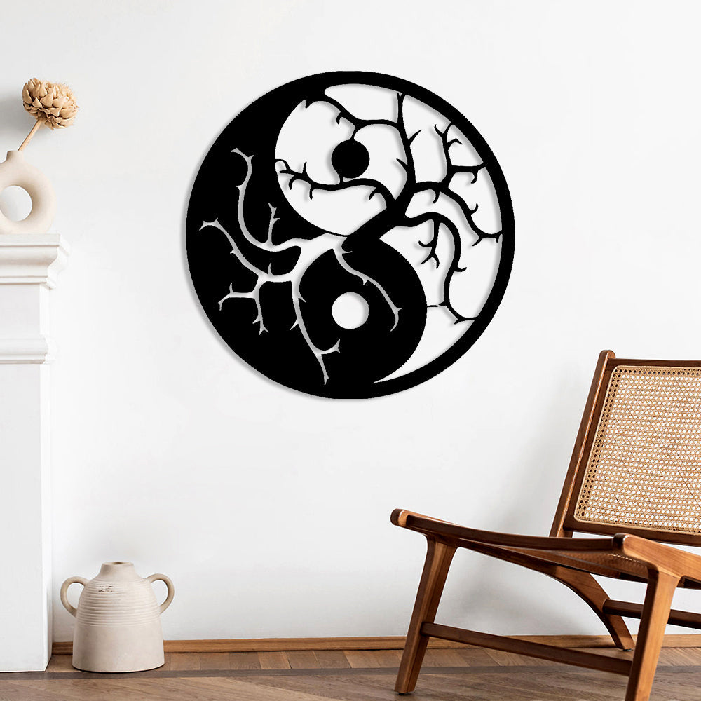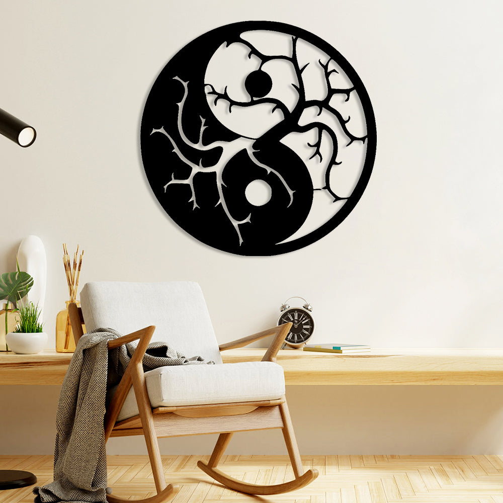 Sun Moon Tai Chi Tree of Life Metal Wall Art