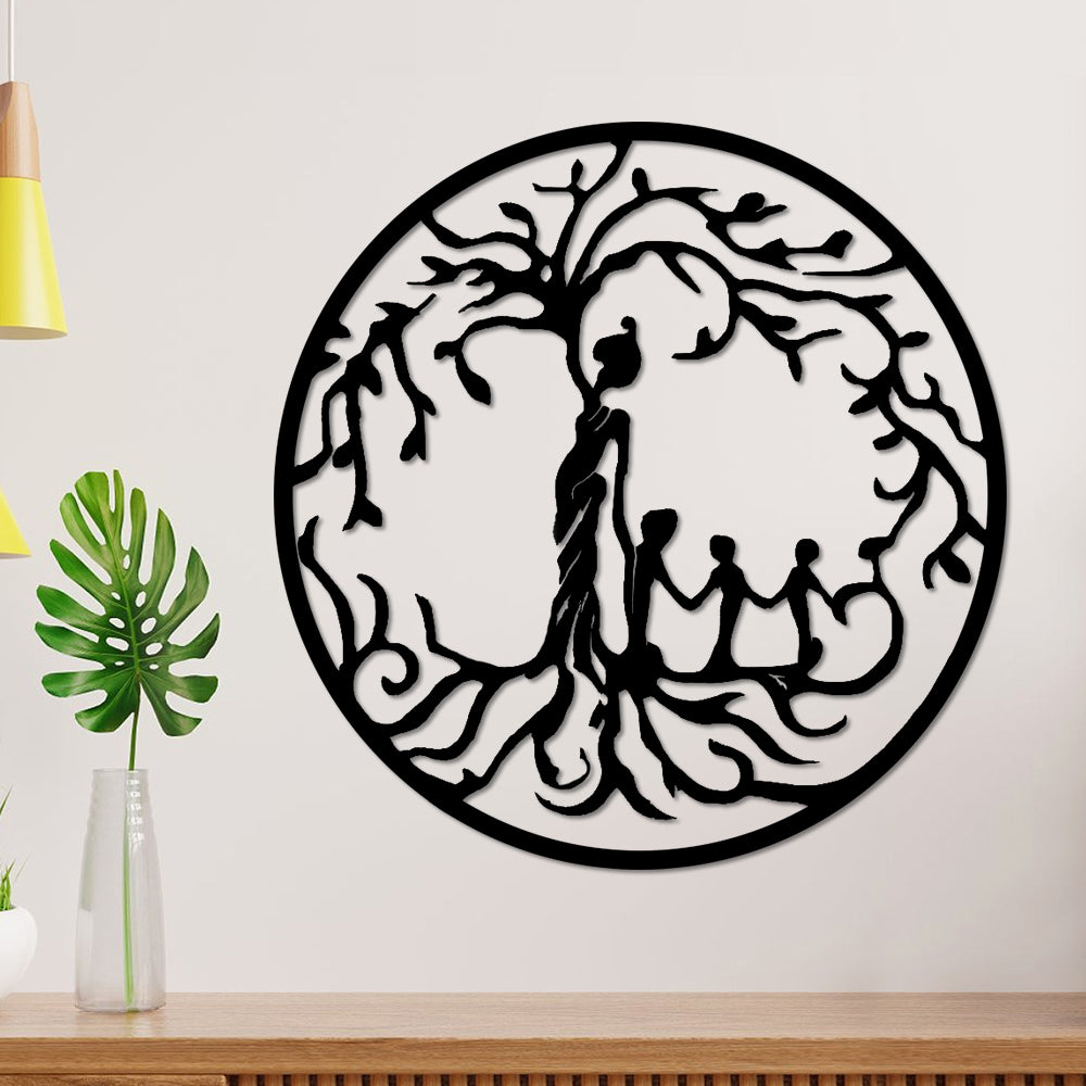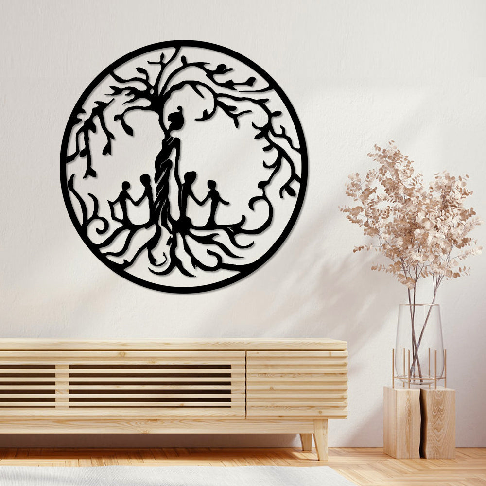 Tree of Life Mother and Children Metal Wall Art