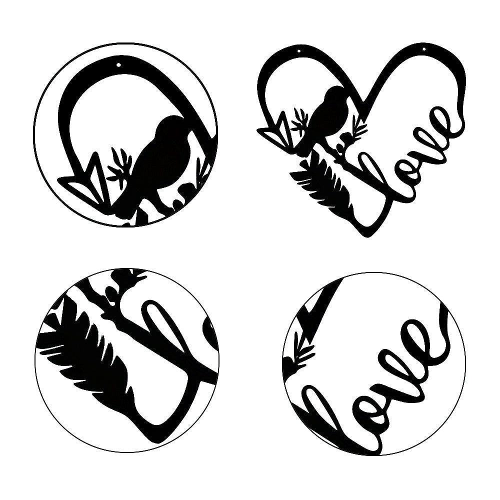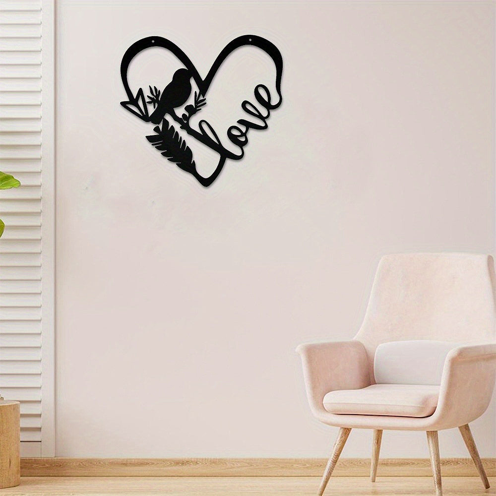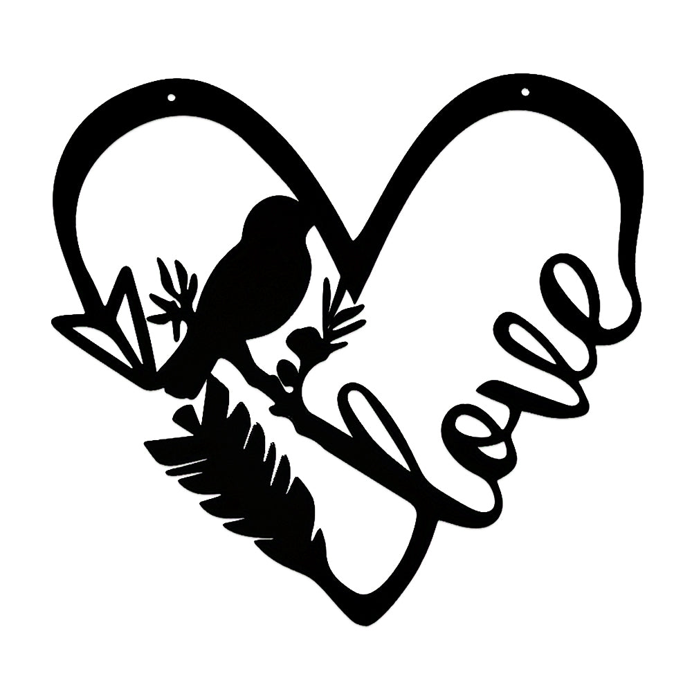 Bird Love Heart Shape Metal Wall Art Decoration