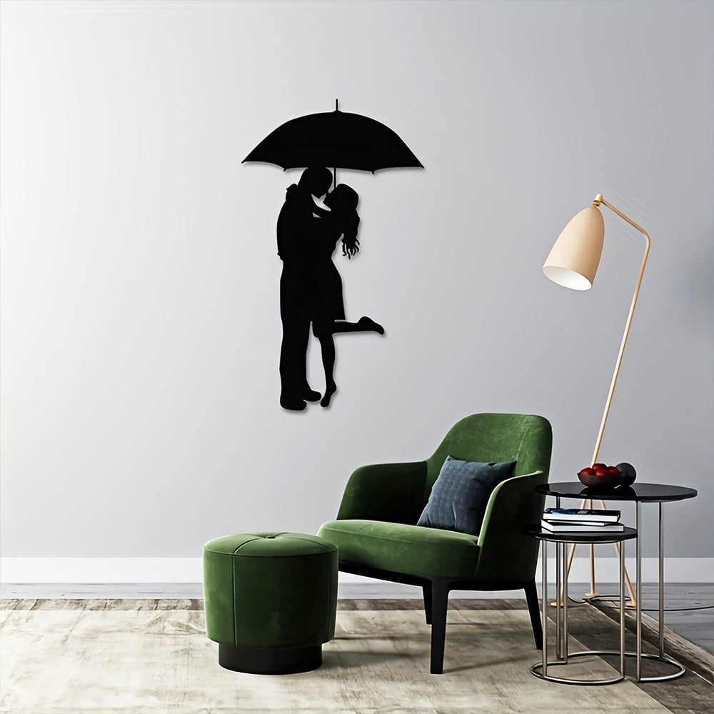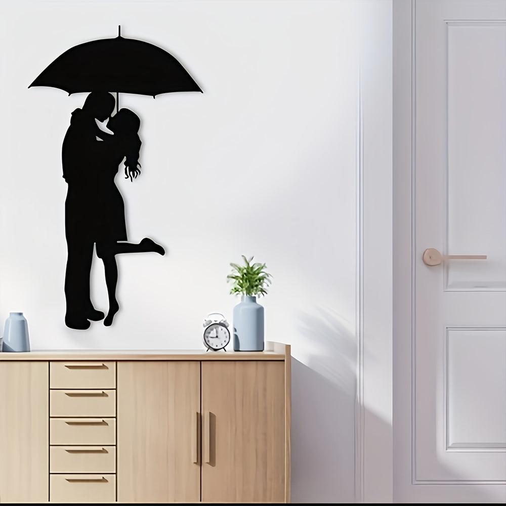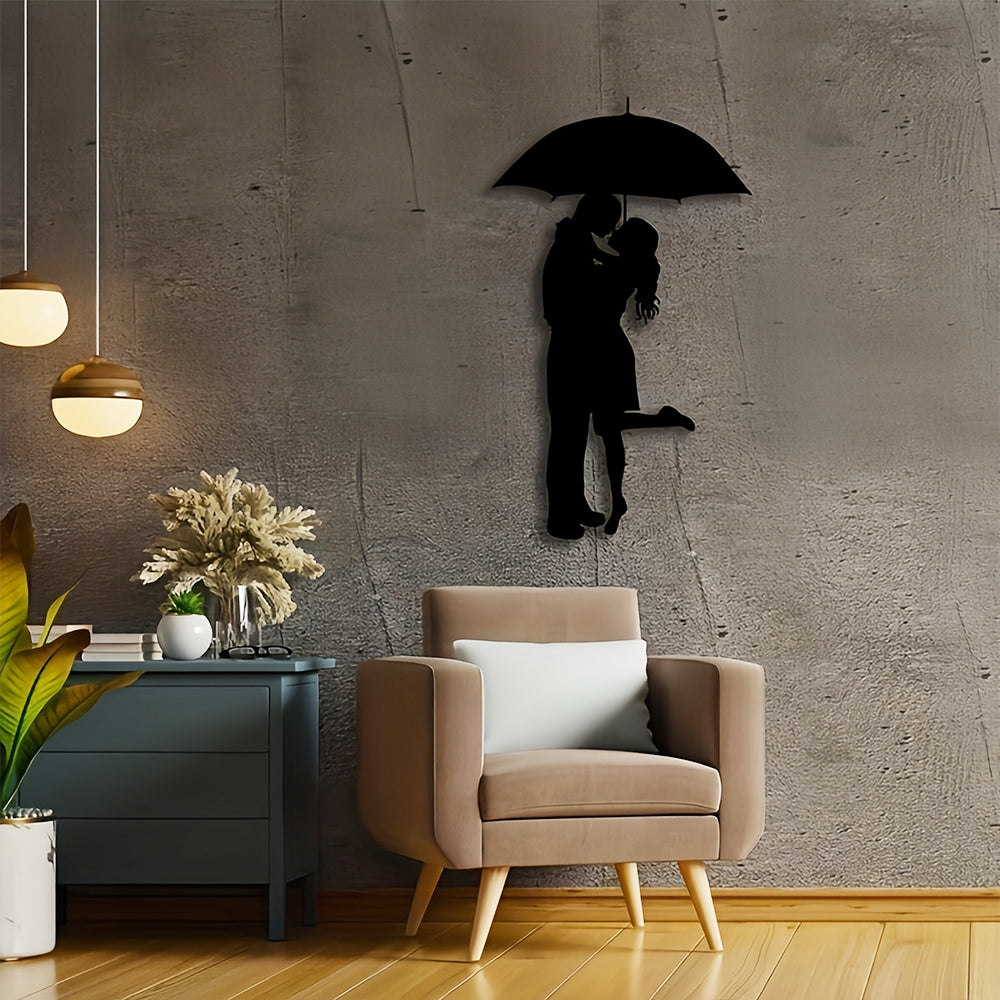 Black Couple Kissing Under Umbrella Metal Wall Art Decoration