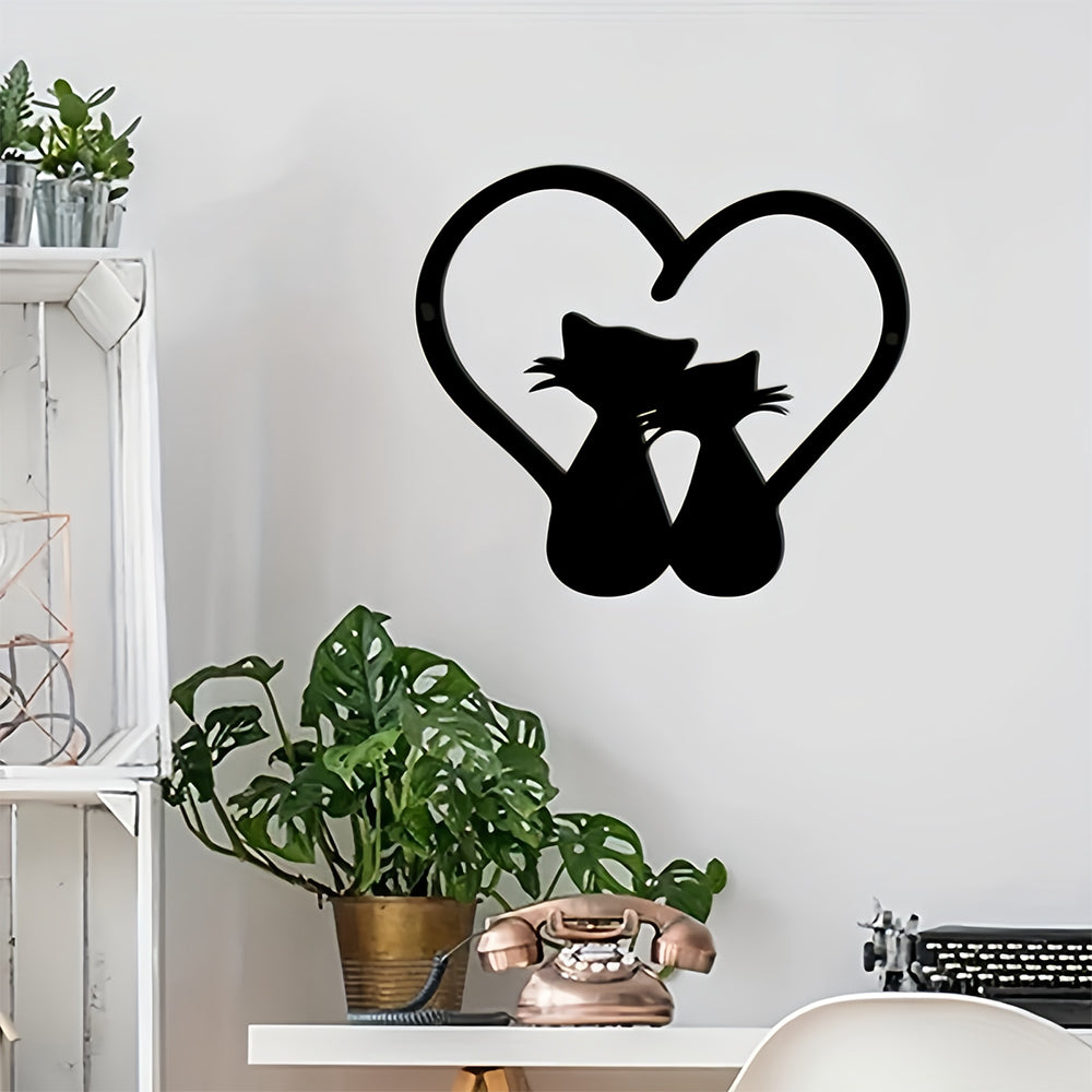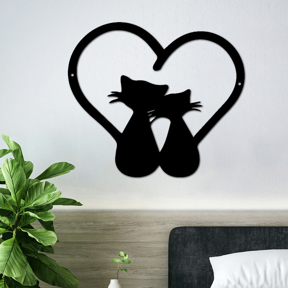 Cats And Heart Metal Wall Art Decoration