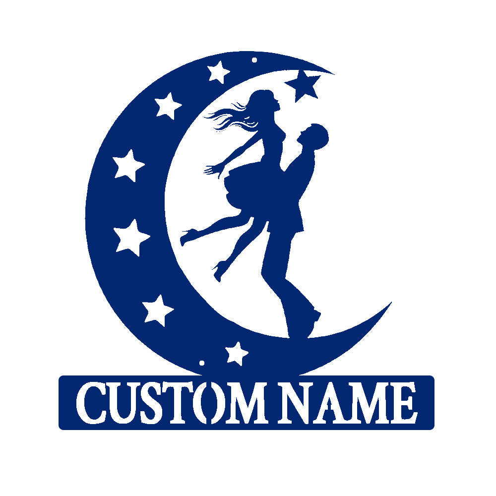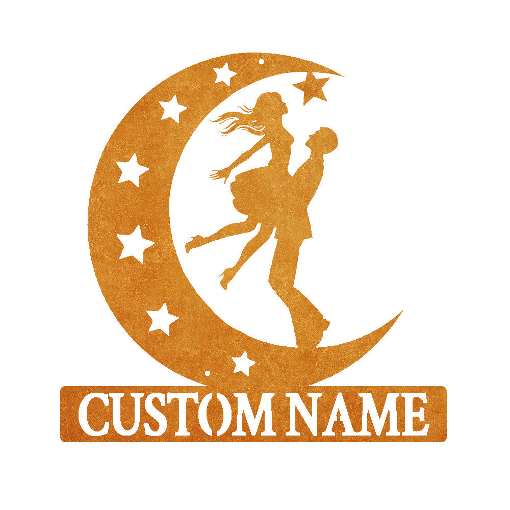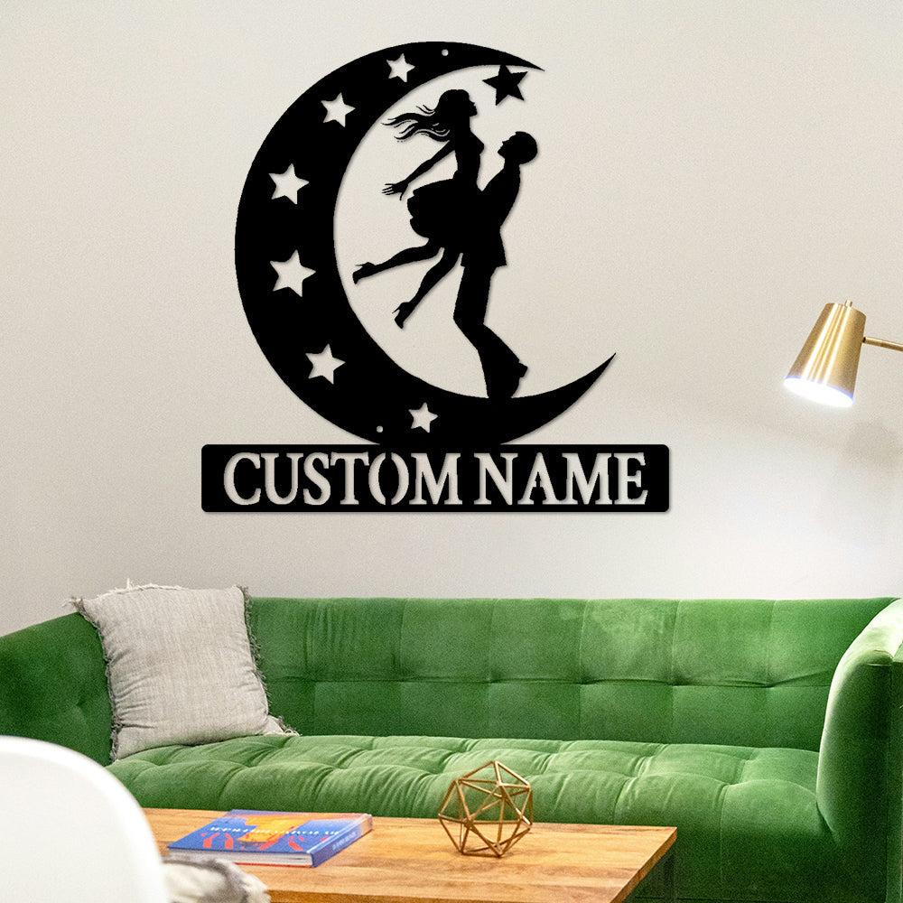 Personalized Custom Couple and Moon Love Metal Wall Art Decoration