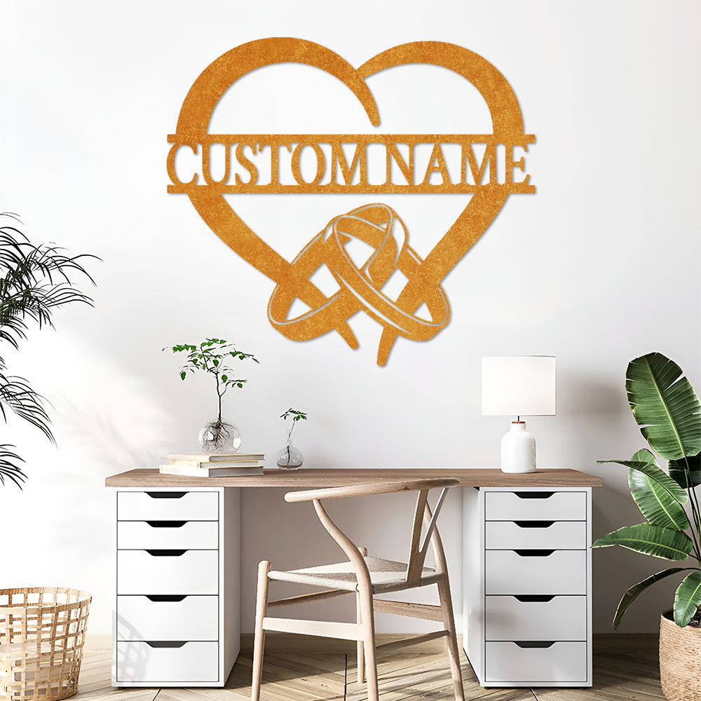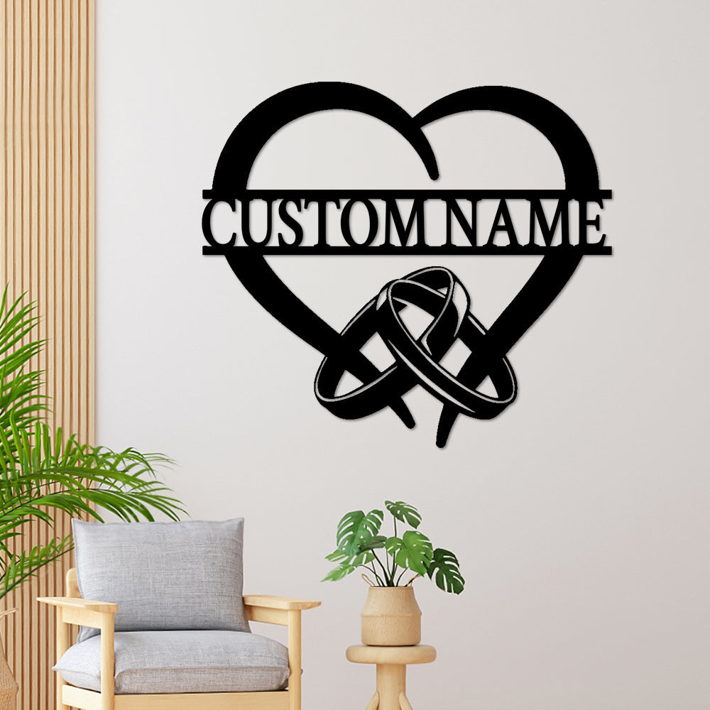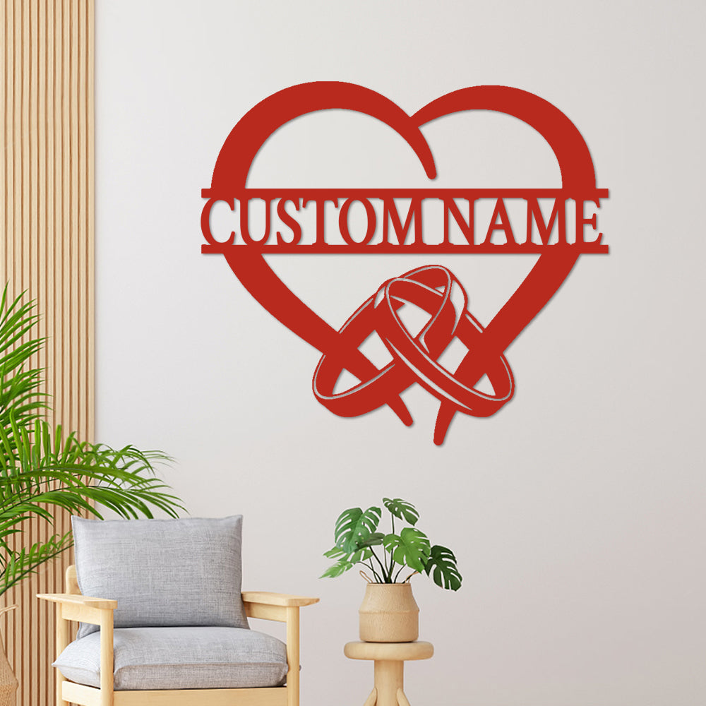 Personalized Custom Ring and Heart Metal Wall Art Decoration