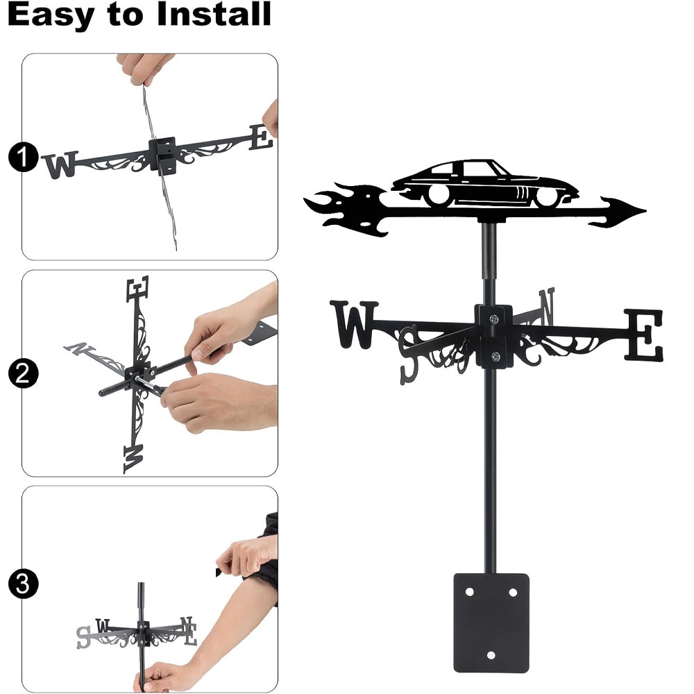 💕Creative design: This Weathervane is made of high-quality Stainless Steel. With stylish straight lines and satin black finishes. This anti-rust iron weather vane is decorated with exquisite patterns.