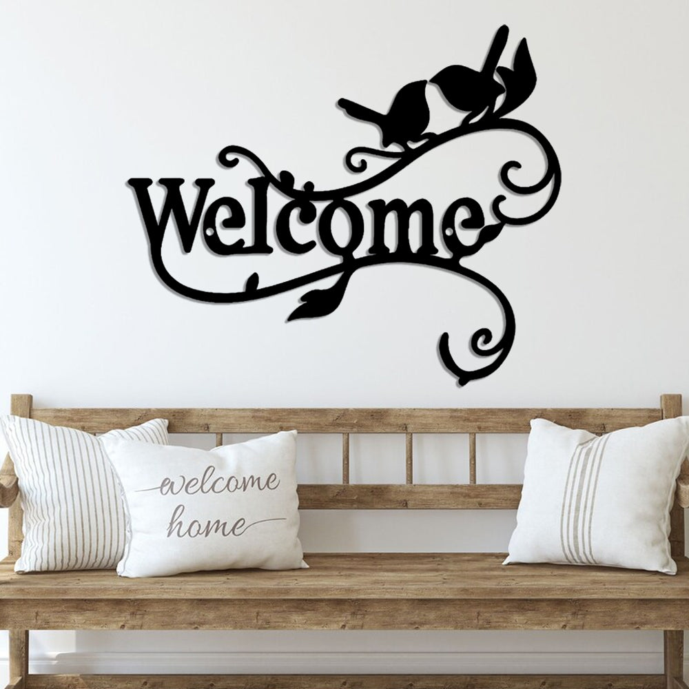 Bird Welcome Sign Metal Wall Art Decoration