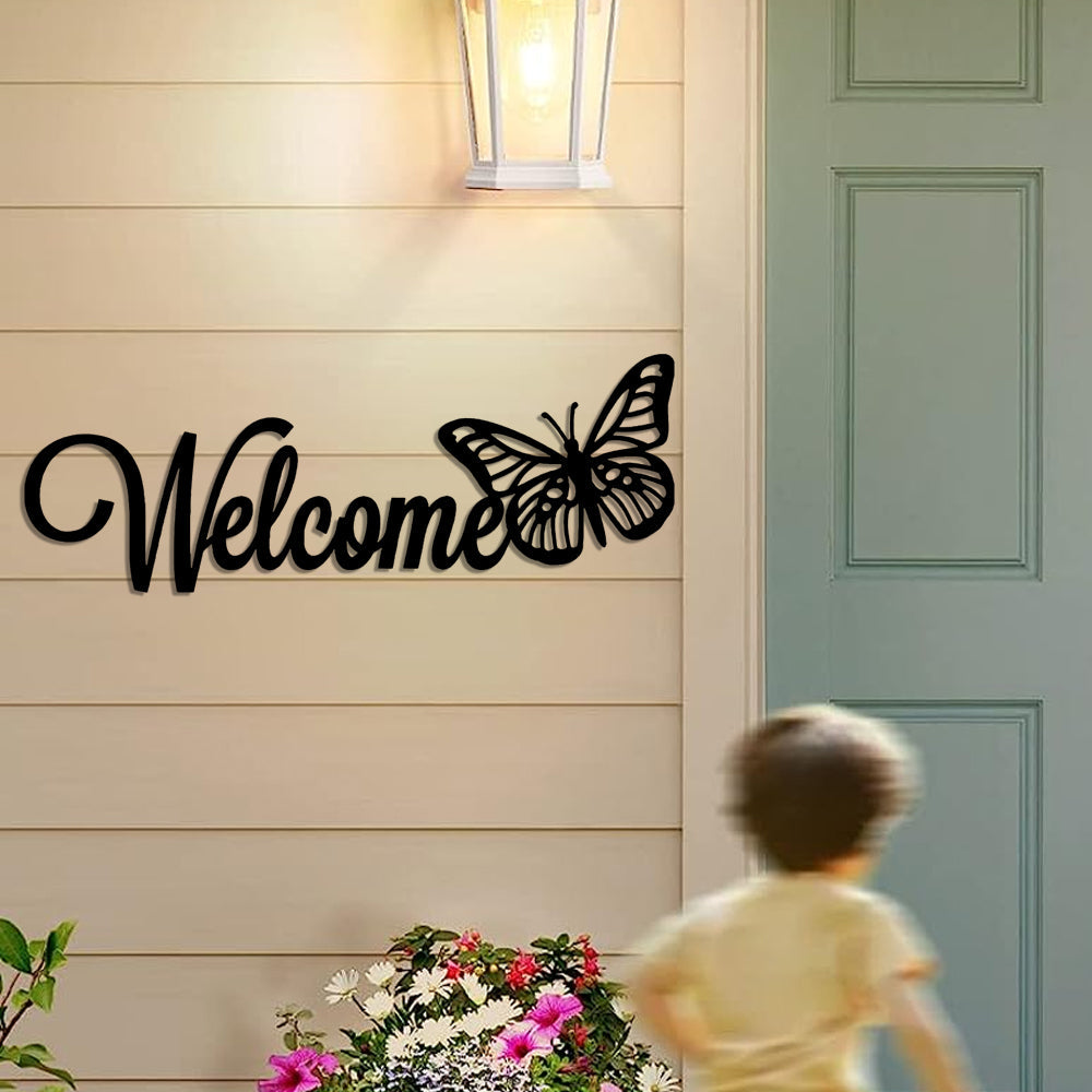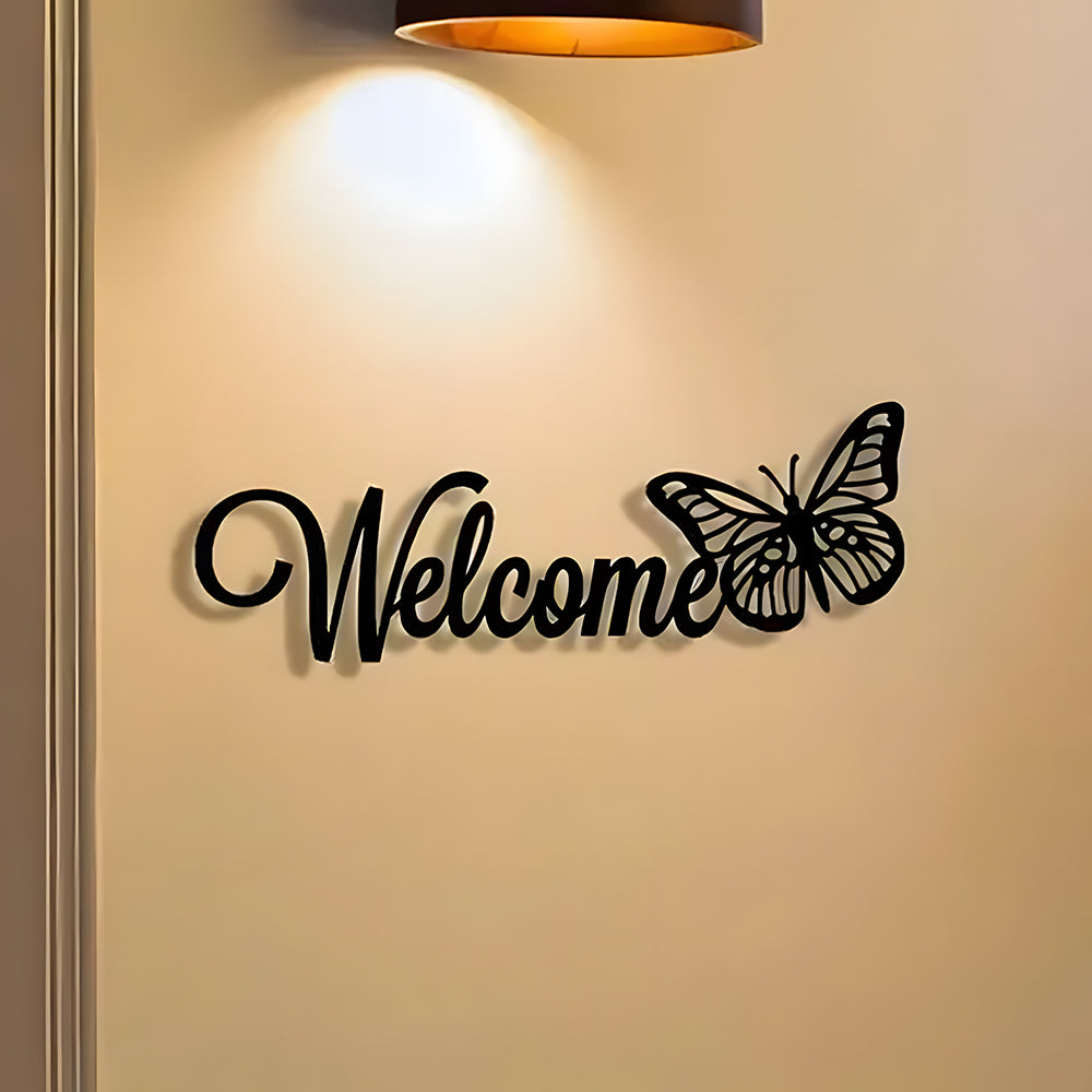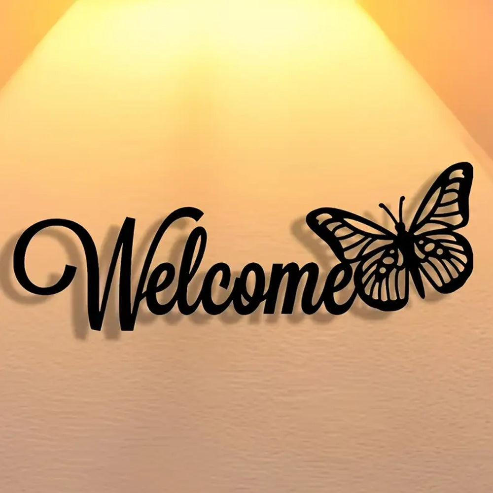 Butterfly Welcome Sign Metal Wall Art Decoration