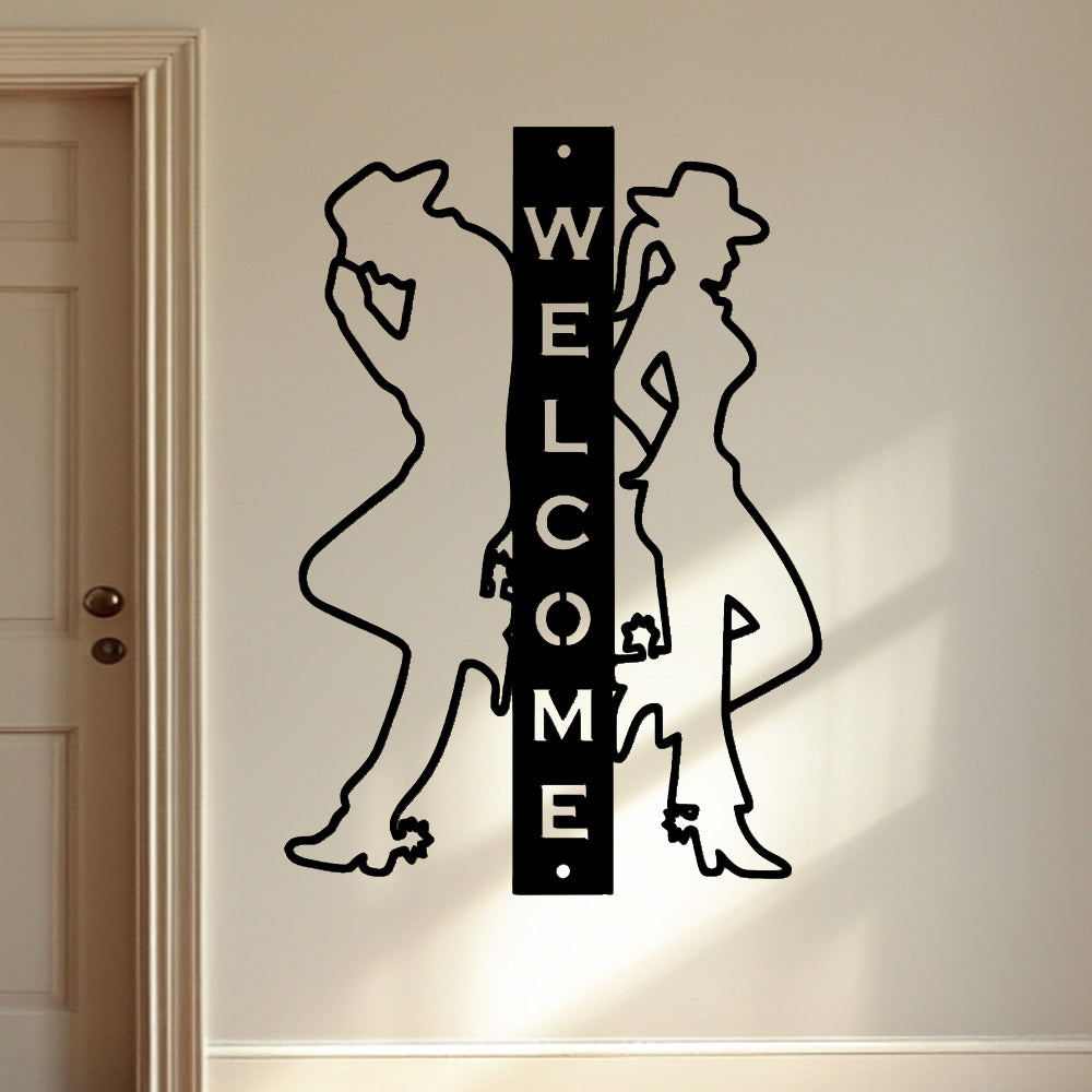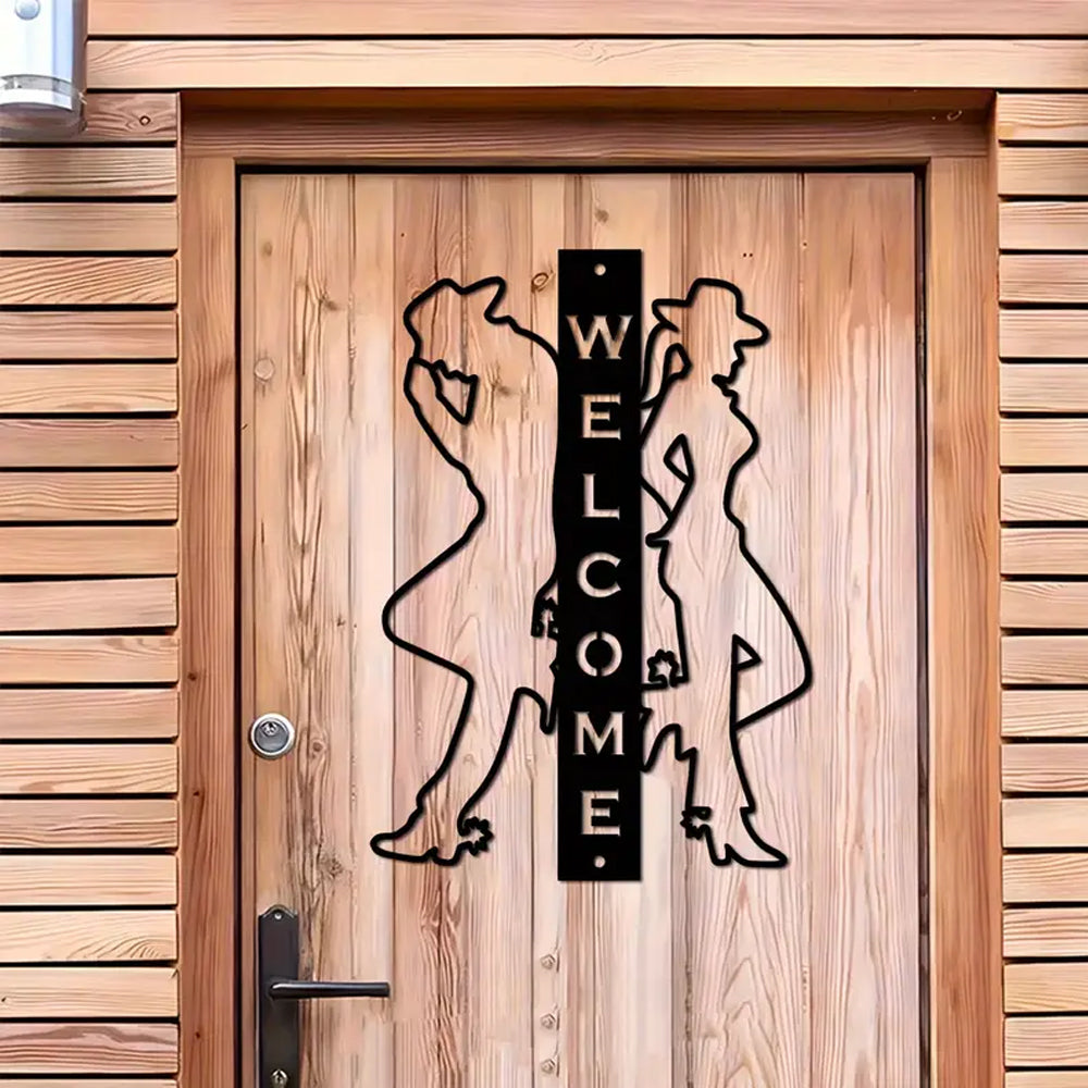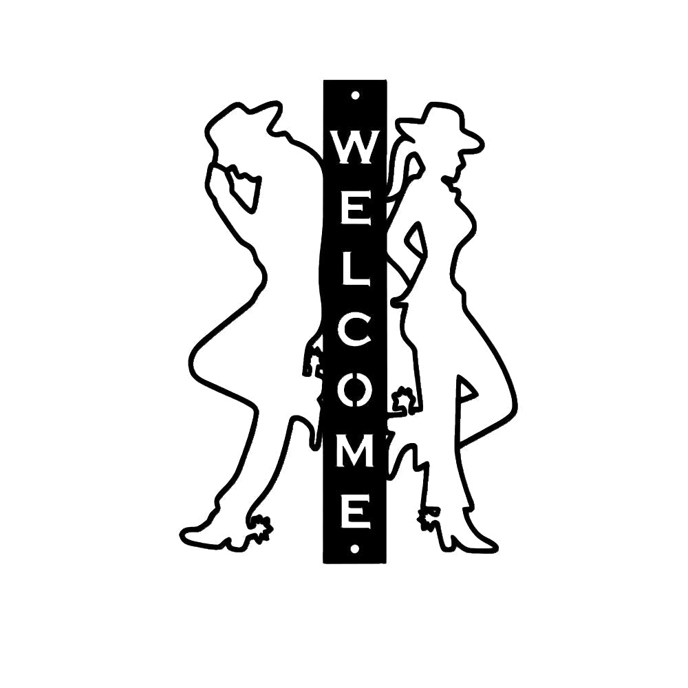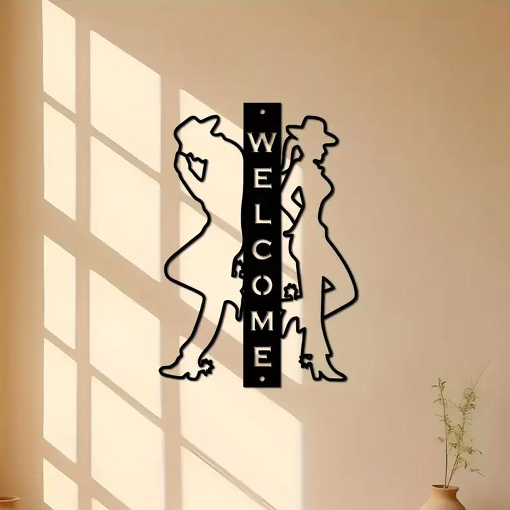 Cowboy and Cowgirl Welcome Sign Metal Wall Art Decoration