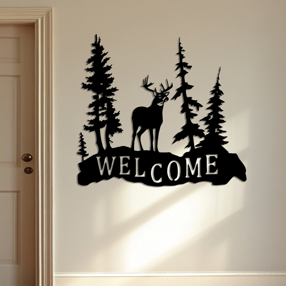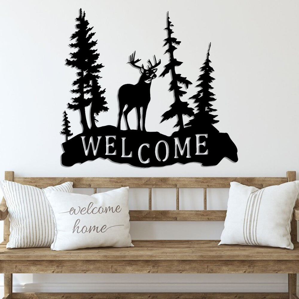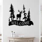 Rustic Iron Deer Welcome Sign Metal Wall Art Decoration