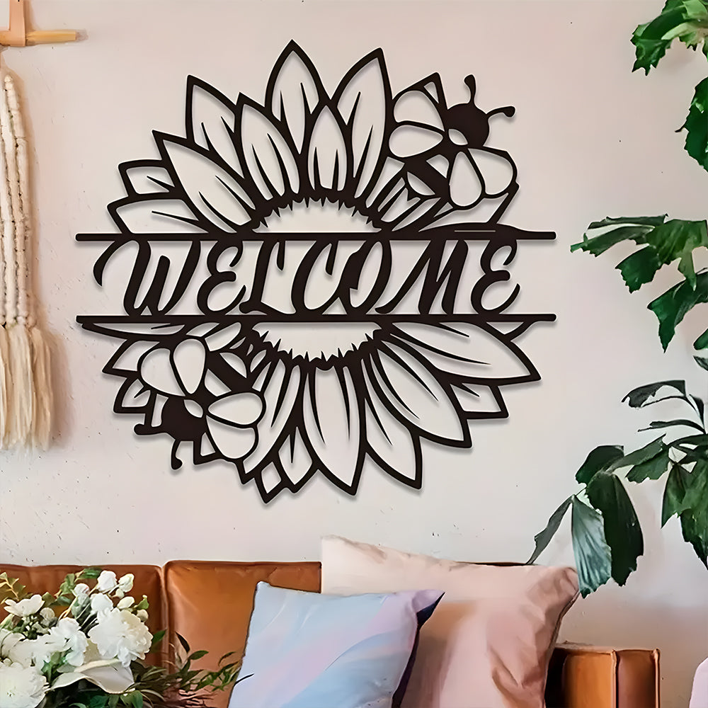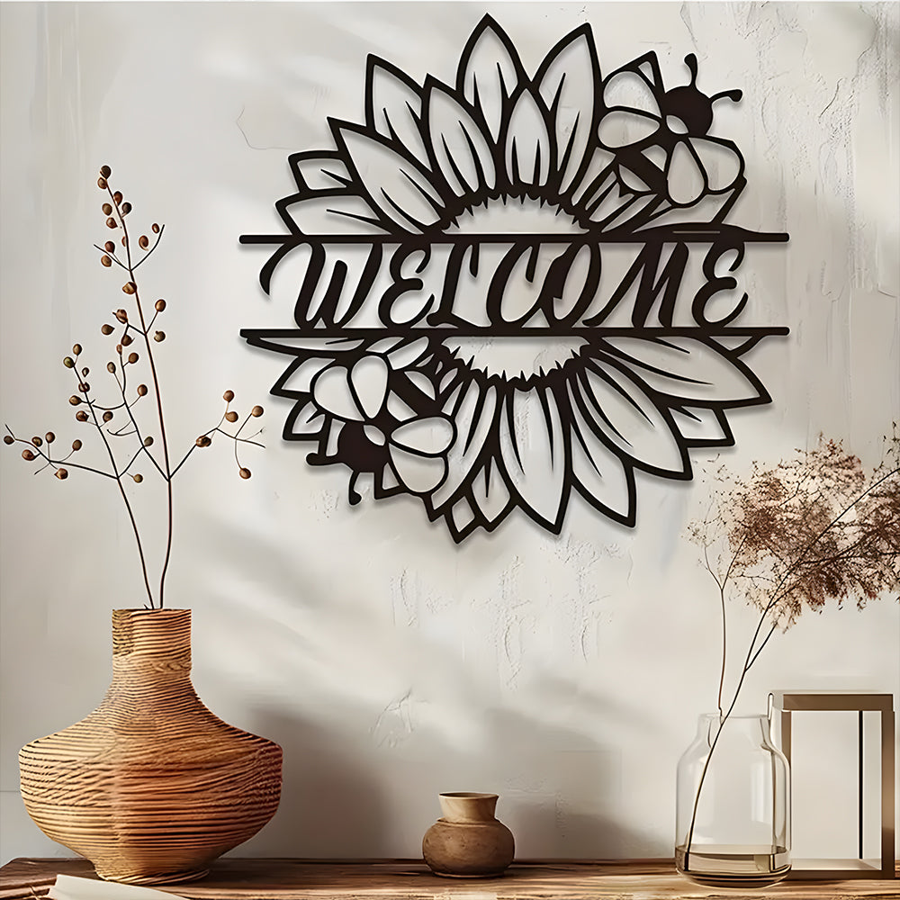 Sunflower Welcome Sign Metal Wall Art Decoration