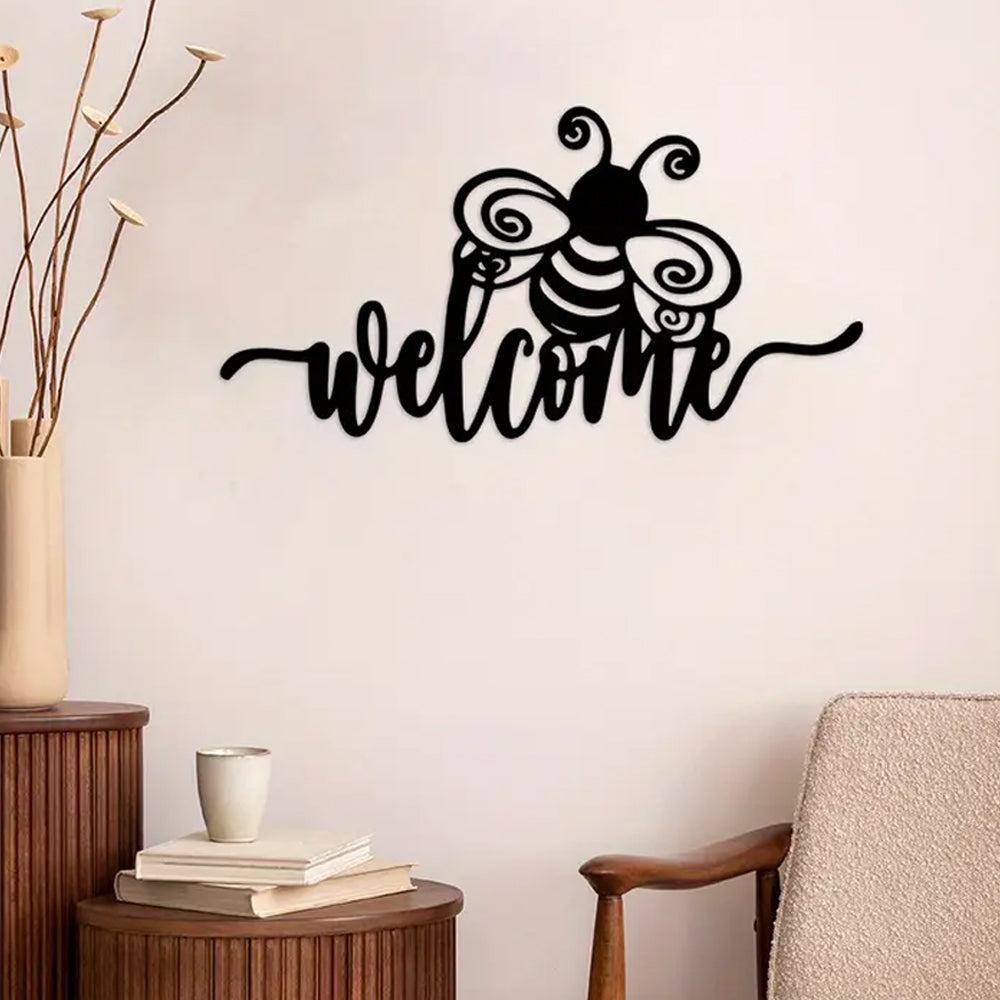 Welcome Sign Bee Decor Metal Wall Art Decoration
